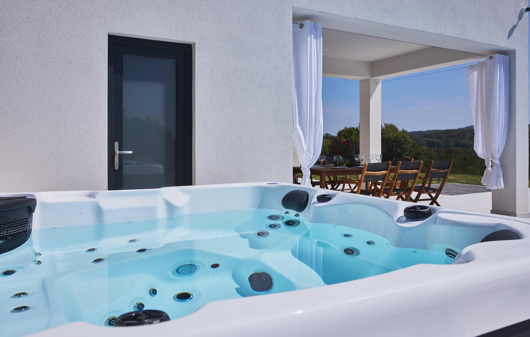 Entspannen Sie sich am Pool und lassen Sie die Sonne Ihre Haut wärmen, während Sie auf einer der bequemen Liegen verweilen. Genießen Sie auch die wohltuende Wärme des Whirlpools und den traumhaften Ausblick von der großzügigen Terrasse. Anschließend sorgen der Billard- und der Kickertisch sowie die Spielkonsole für vergnügliche Unterhaltung. Für die kleinen Urlaubsgäste stehen eine Schaukel und eine Rutsche zur Verfügung.