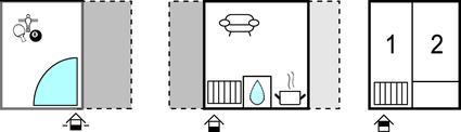 Badezimmer 4m2 (nr. 1) - WC. Warmes und kaltes Wasser. Dusche