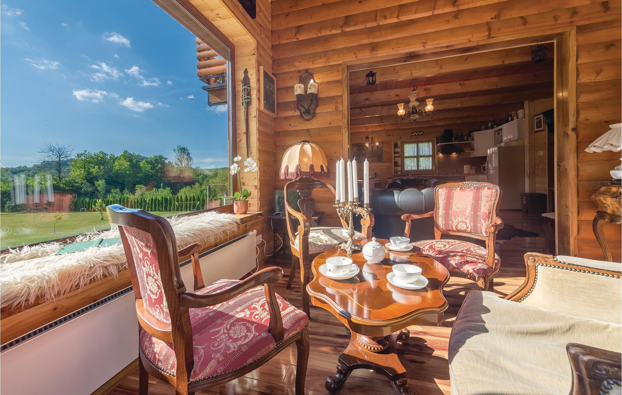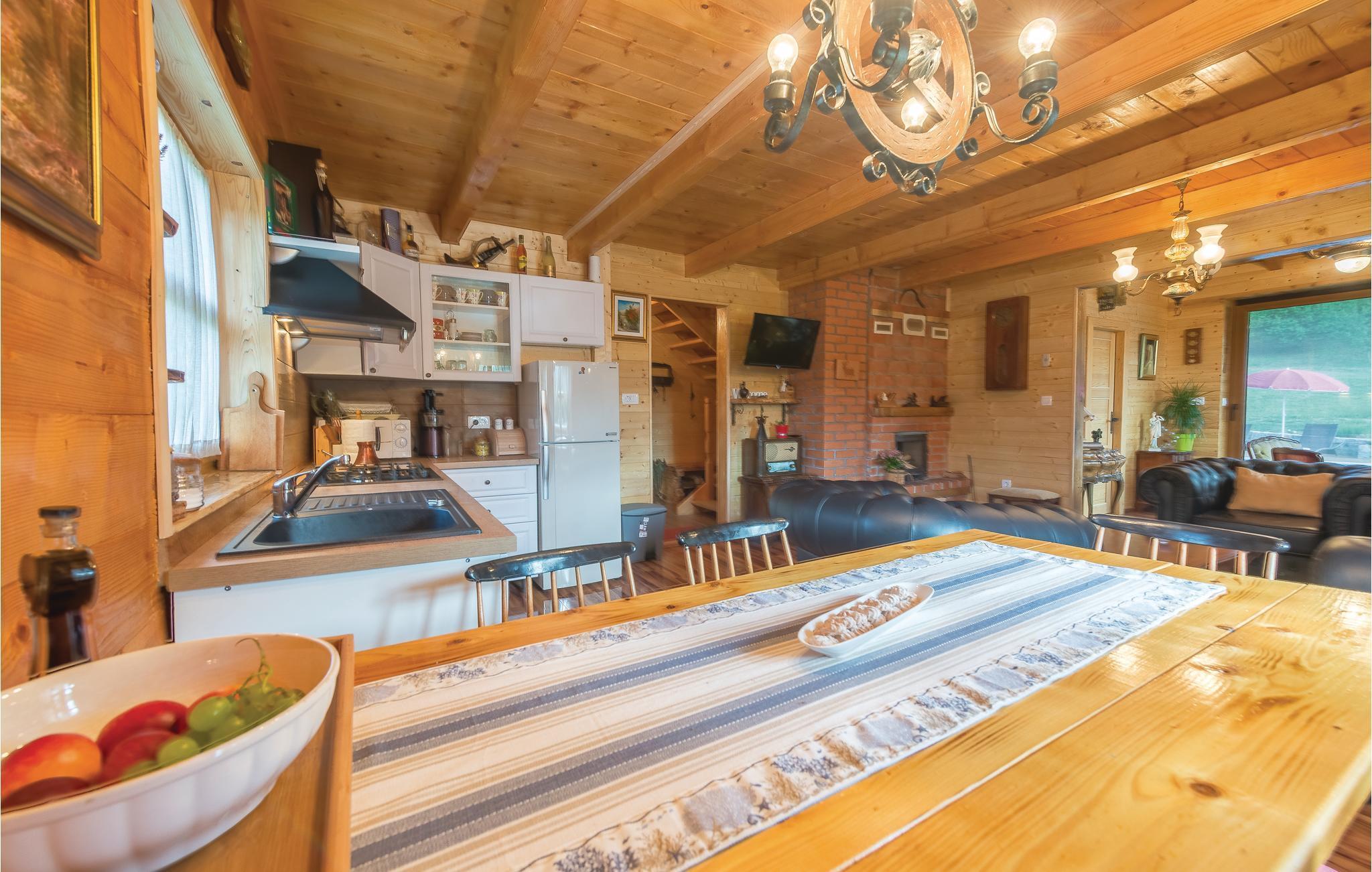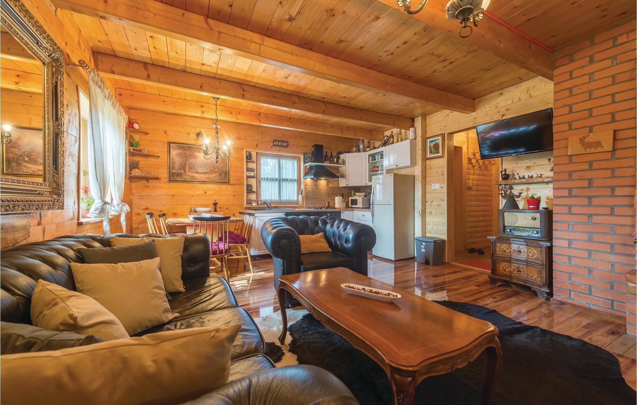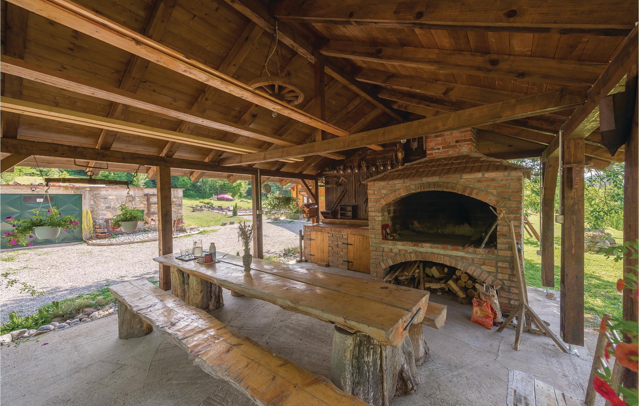 Dieses schöne Ferienhaus aus Holz mit Pool liegt einsam und ist von Natur und einer Rasenfläche umgeben. Es ist geschmackvoll und im traditionellen Stil eingerichtet, mit vielen Details aus Holz und Stein. Neben dem Haus ist der Pool mit Sonnenbereich, eine Außendusche und Sitzgarnitur. Es steht Ihnen auch eine Sommerküche mit gemauertem Grill zur Verfügung. Naturliebhaber werden sicherlich Spaziergänge in unberührter Natur, Radtouren, Gebirgswanderungen, Angeln in den umliegenden Seen und Flüssen sowie das Erforschen von Höhlen in der Nähe genießen. Unternehmen Sie Ausflüge zum Nationalpark der Plitwitzer Seen und in das Museum von Nikola Tesla in etwa 29 km Entfernung.