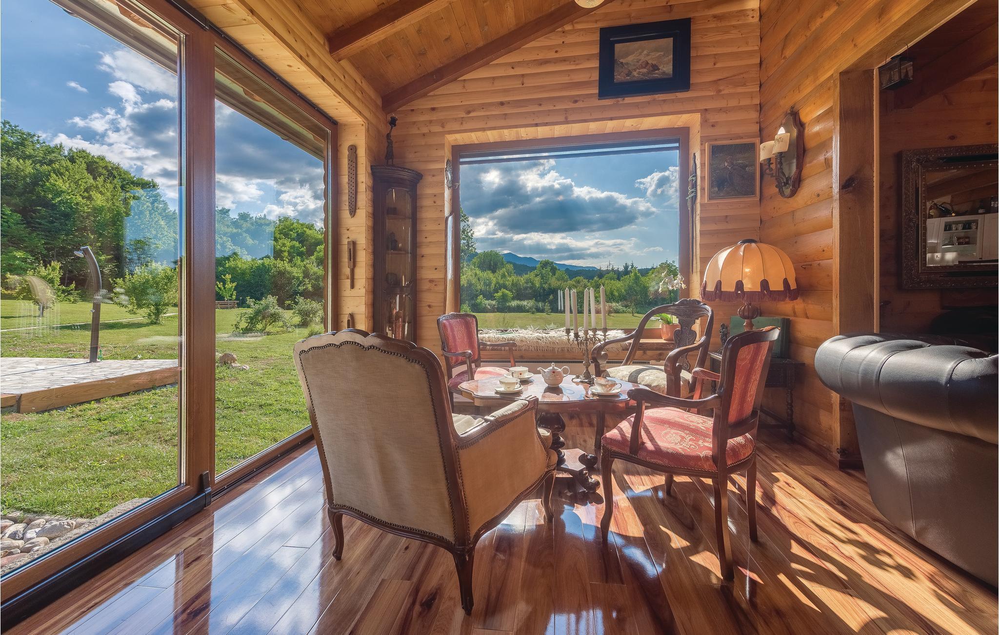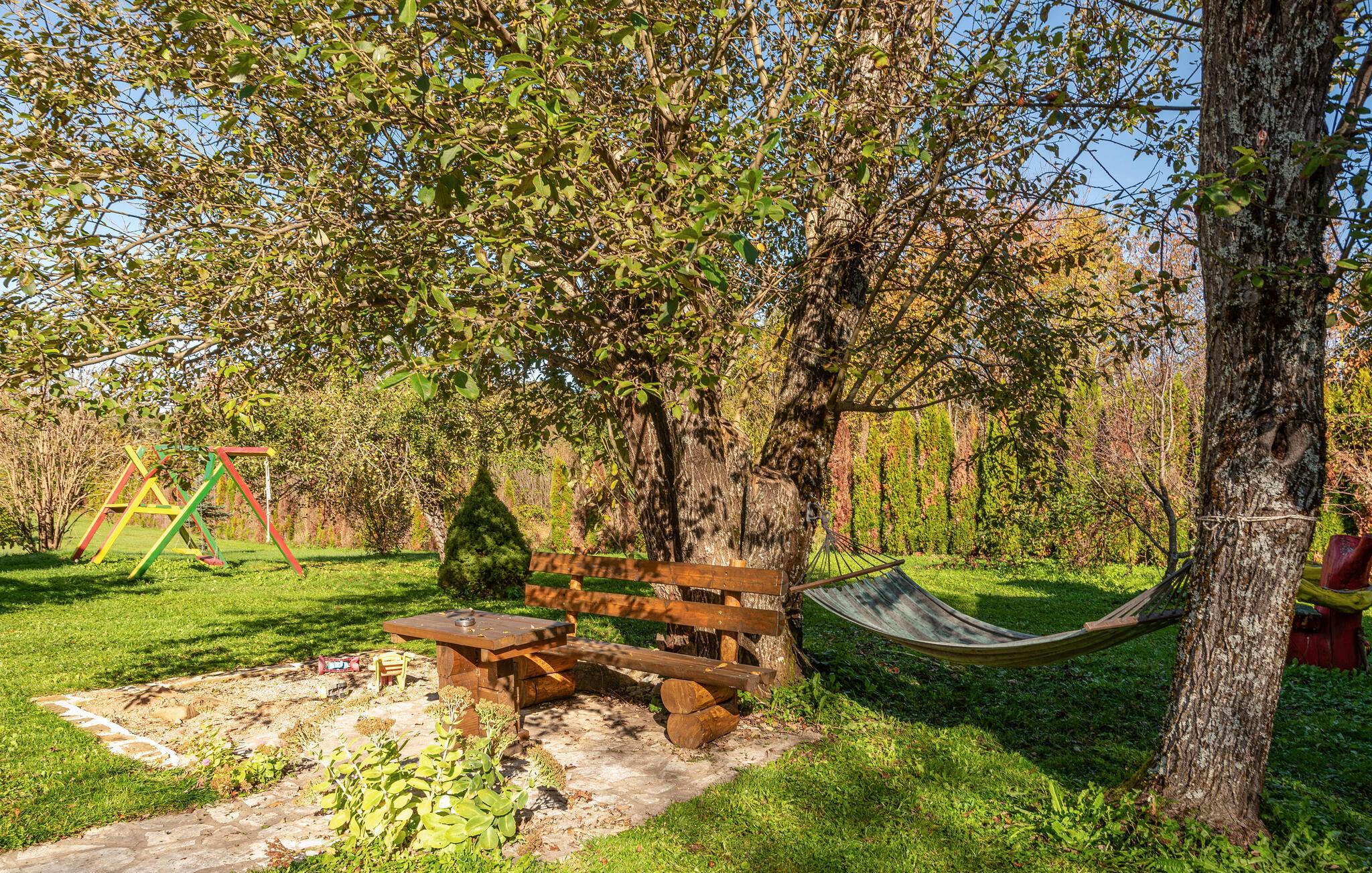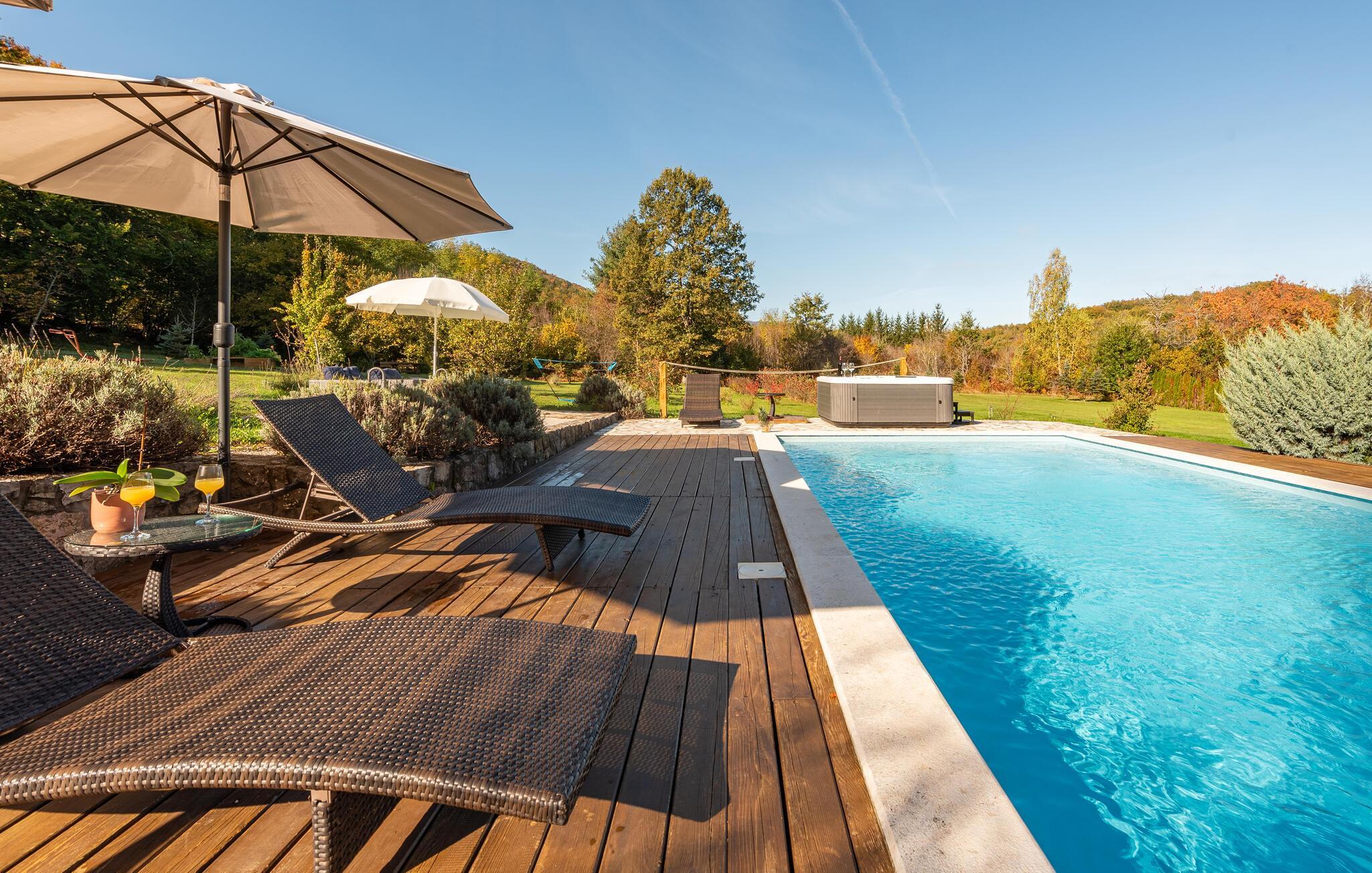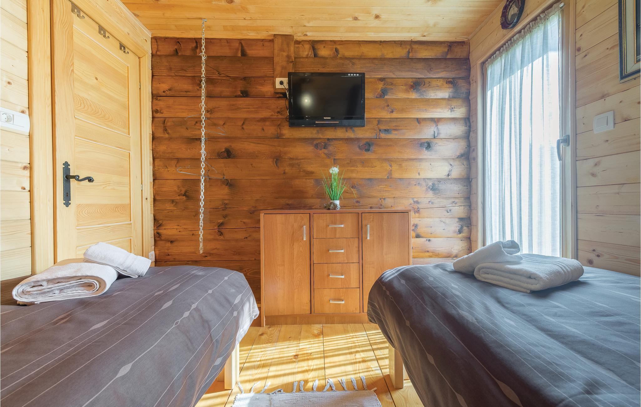 Dieses schöne Ferienhaus aus Holz mit Pool liegt einsam und ist von Natur und einer Rasenfläche umgeben. Es ist geschmackvoll und im traditionellen Stil eingerichtet, mit vielen Details aus Holz und Stein. Neben dem Haus ist der Pool mit Sonnenbereich, eine Außendusche und Sitzgarnitur. Es steht Ihnen auch eine Sommerküche mit gemauertem Grill zur Verfügung. Naturliebhaber werden sicherlich Spaziergänge in unberührter Natur, Radtouren, Gebirgswanderungen, Angeln in den umliegenden Seen und Flüssen sowie das Erforschen von Höhlen in der Nähe genießen. Unternehmen Sie Ausflüge zum Nationalpark der Plitwitzer Seen und in das Museum von Nikola Tesla in etwa 29 km Entfernung.