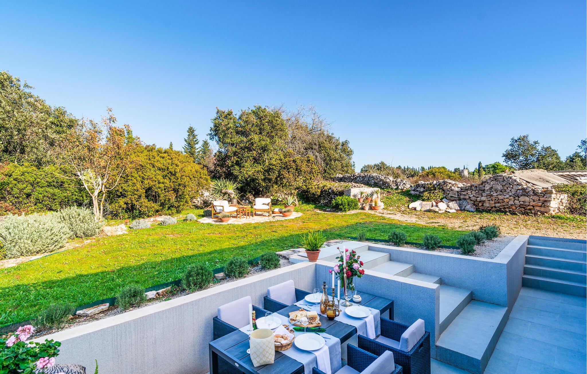 Genießen Sie die Sonne inmitten der Natur, nehmen Sie Ihr Frühstück auf der herrlichen Terrasse ein oder entspannen Sie auf den komfortablen Loungemöbeln. Am Abend können Sie bei einem stimmungsvollen Barbecue den Sternenhimmel über Hvar bestaunen und die Ruhe genießen.