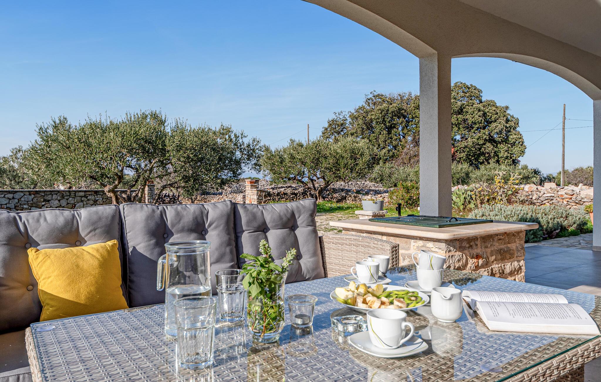 Das einladende Haus heißt Sie mit hellen, wohnlich und modern möblierten Räumen auf der Insel Hvar willkommen. Es ist der ideale Ort, um in ansprechender Umgebung zu entspannen und sowohl das Strandleben zu genießen als auch die Insel zu erkunden. Lassen Sie sich nach einem ausgefüllten Tag im Wohnzimmer nieder und lassen Sie den Tag gemeinsam bei einem guten Essen mit schönem Blick ins Freie ausklingen.