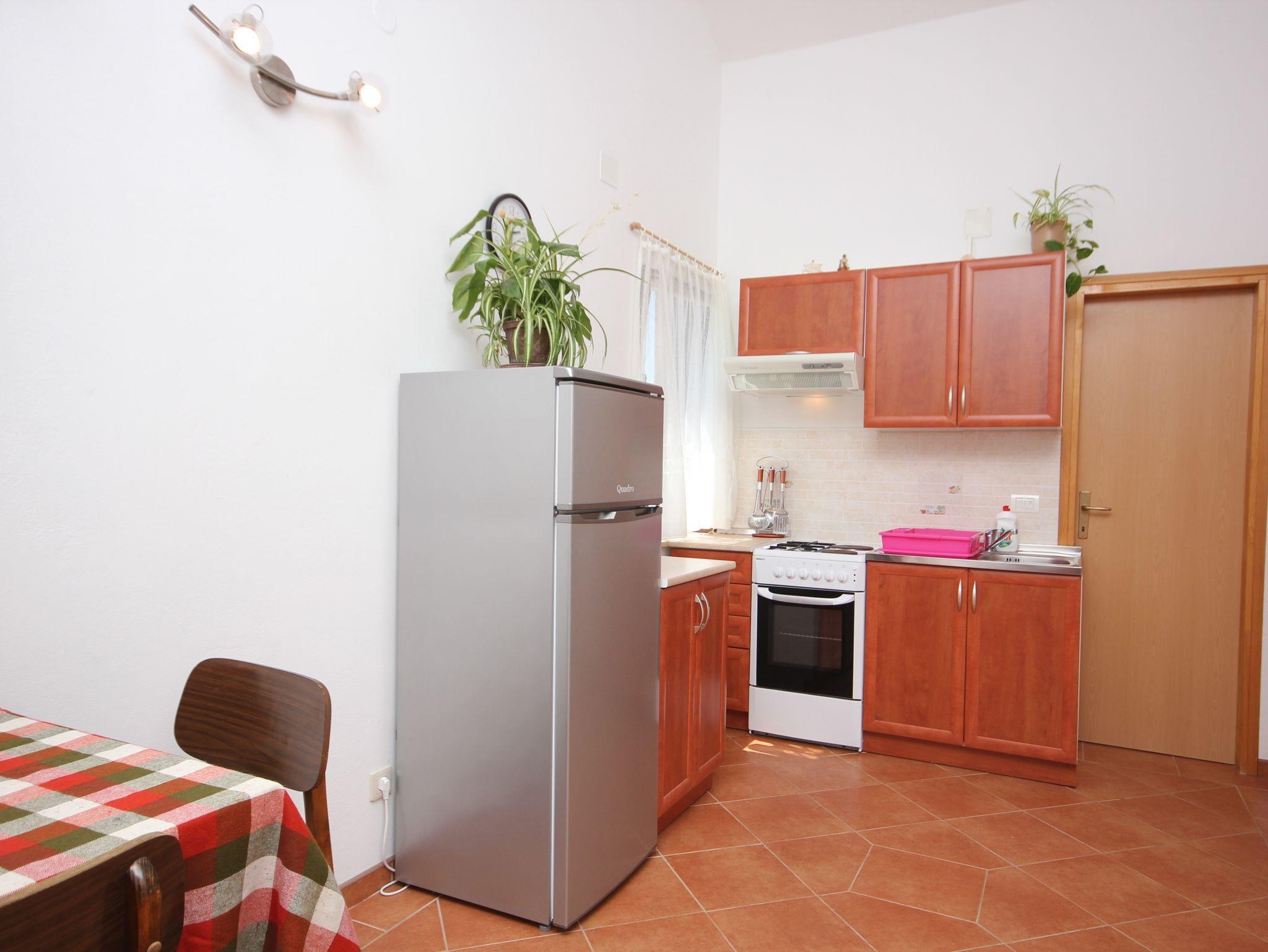 Ferienwohnung bietet Platz für 4 Gäste. Die Betten sind in Schlafzimmern, die es 1 gibt, und in Wohnzimmer, innerhalb einer Gesamtfläche von 37m2, angeordnet. Die Gäste haben eine eigene Terrasse zur Verfügung, auf der sie in warmen Sommernächten genießen können. Es ist erlaubt, Speisen auf dem Gemeinschafts-Grill vorzubereiten. In der Unterkunftseinheit besteht die Möglichkeit des Mitbringens von Haustieren gegen Aufpreis. IM PREIS INBEGRIFFEN: Kurtaxe, Endreinigung, Klimatisierung, Internet, Wäschewaschen, Transport zum Objekt (mit dem Boot des Vermieters), Bügeleisen, Föhn. VERBINDLICHE ZUSÄTZLICHE KOSTEN: Aufzahlung für Kurzaufenthalte (prozentualer Zuschlag pro Nächtigungsanzahl: 30% - 1, 20% - 2, 10% - 3). UNVERBINDLICHE ZUSÄTZLICHE KOSTEN: Haustiere (5,00 € pro Nacht). Die Verfügbarkeit zusätzlicher Dienstleistungen in Ihrem reservierten Termin und die Preise derselben (falls nicht aufgeführt) müssen im Voraus überprüft werden. Zusätzliche Dienstleistungen die in der Zahlungsaufforderung nicht aufgeführt sind werden direkt beim Vermieter bezahlt, angenommen der Gast nutzt auch diese.