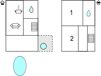 Badezimmer 5m2 (nr. 1) - WC. Warmes und kaltes Wasser. Dusche