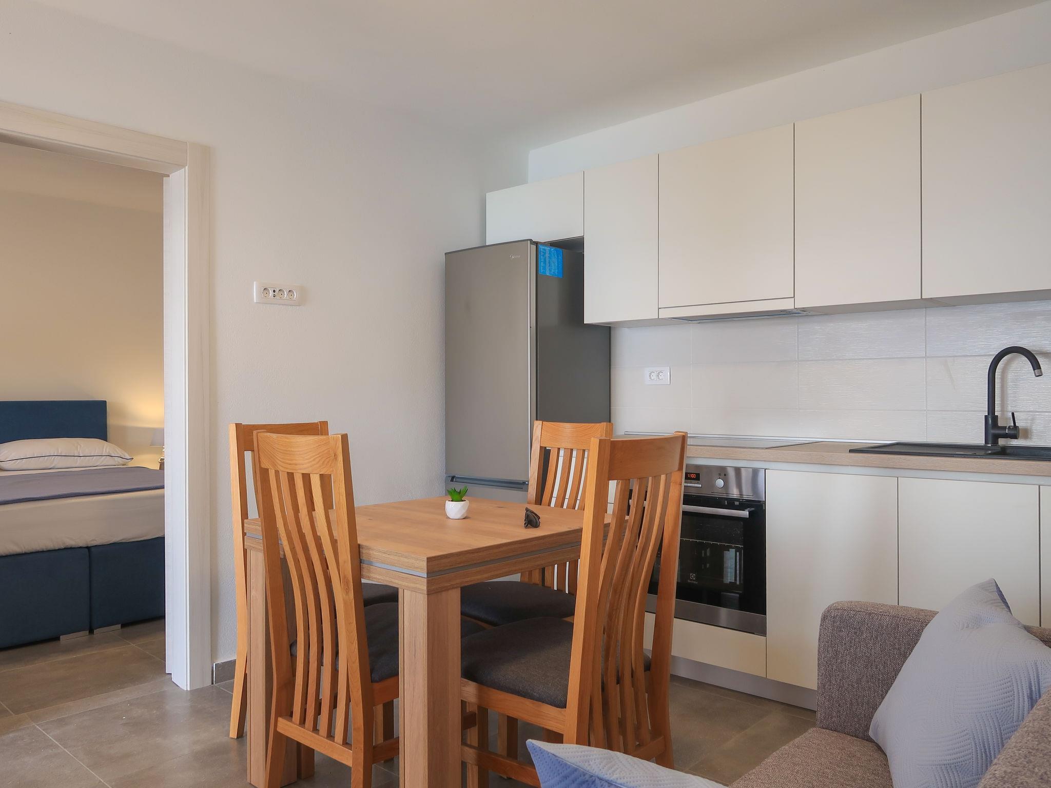 "Bajadera", 3-room apartment 42 m2, on the ground floor. Living/dining room with TV. Exit to the terrace. 1 room with 1 french bed (160 cm, length 200 cm). 1 room with 1 bed (120 cm, length 200 cm), air conditioning. Kitchen (oven, dishwasher, 4 ceramic glass hob hotplates, kettle, freezer). Shower/WC. No heating option. Terrace 35 m2, roofed. Terrace furniture. Marvellous view of the sea. Facilities: Internet (WiFi, free). Walk-through terrace (35 m2).