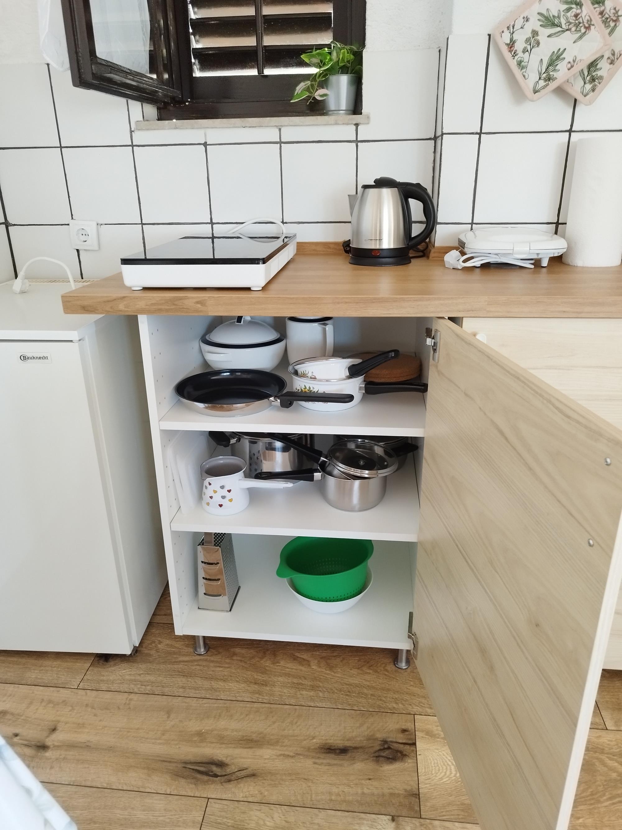 Kitchen (5 m2): Kitchenette: Refrigerator, Sink, Additional equipment: Table cooker, On request: Water kettle, Toaster