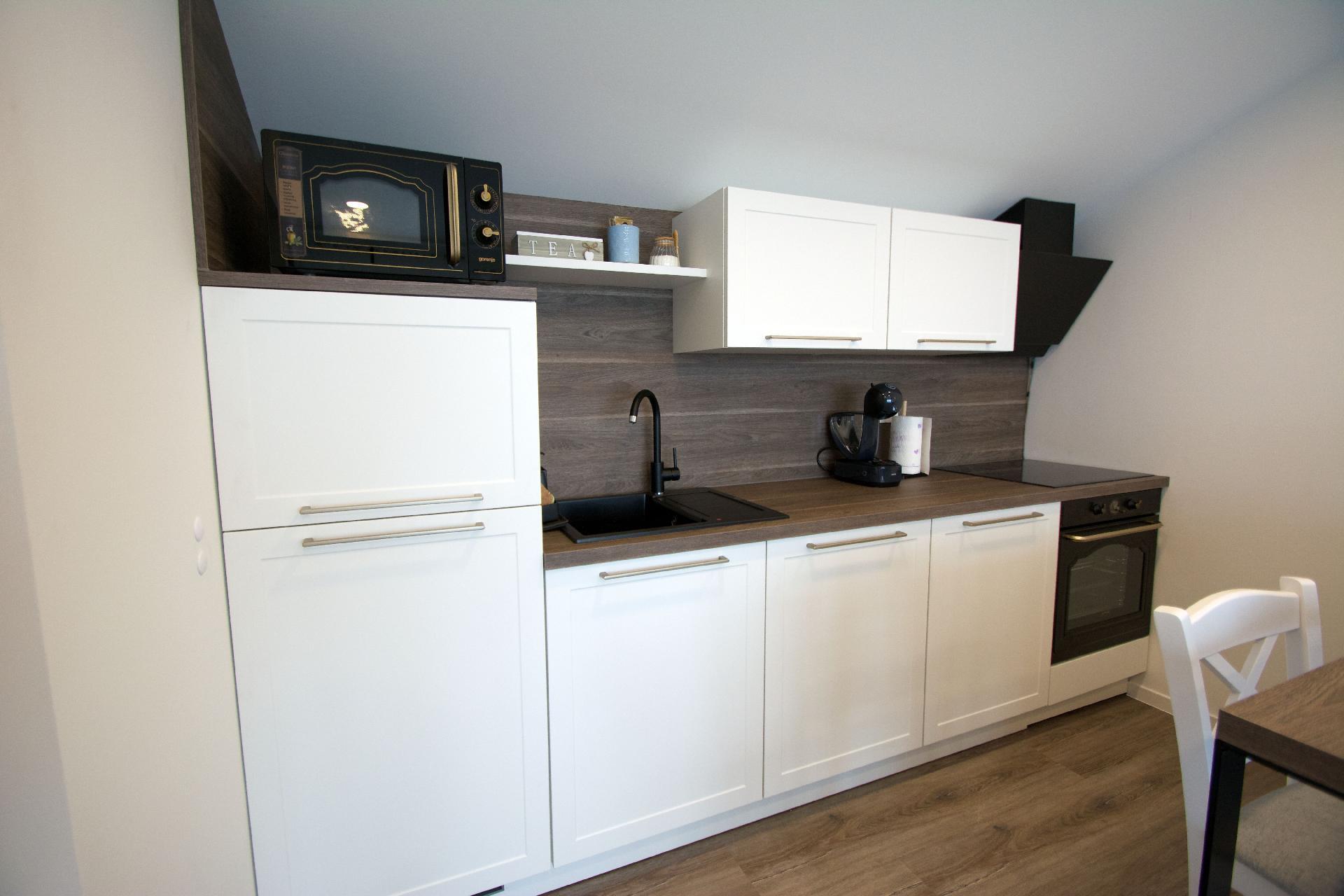 Kitchen: Coffee machine; Electric stove; Fridge; Microwave; Oven; Water boiler