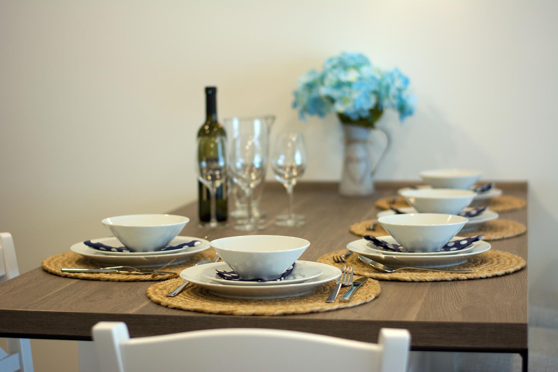 The interior of the flat is designed to ensure comfort and convenience during your stay. It has all the necessary amenities, including a washing machine for your sole use, guaranteeing you a carefree holiday. For the coffee lovers, there is a coffee machine as well as a kettle to welcome the day with a warm cup of your favourite beverage. The bedrooms are equipped with blinds that promise a good night's sleep by providing darkness whenever desired. Despite the absence of comprehensive air conditioning, the partial air conditioning ensures pleasant temperatures in the summer months.