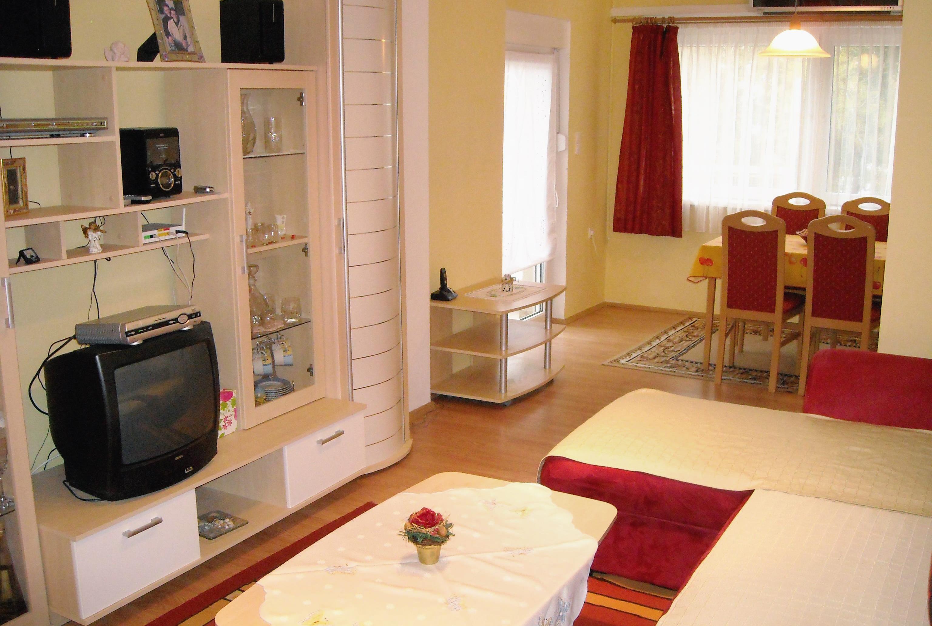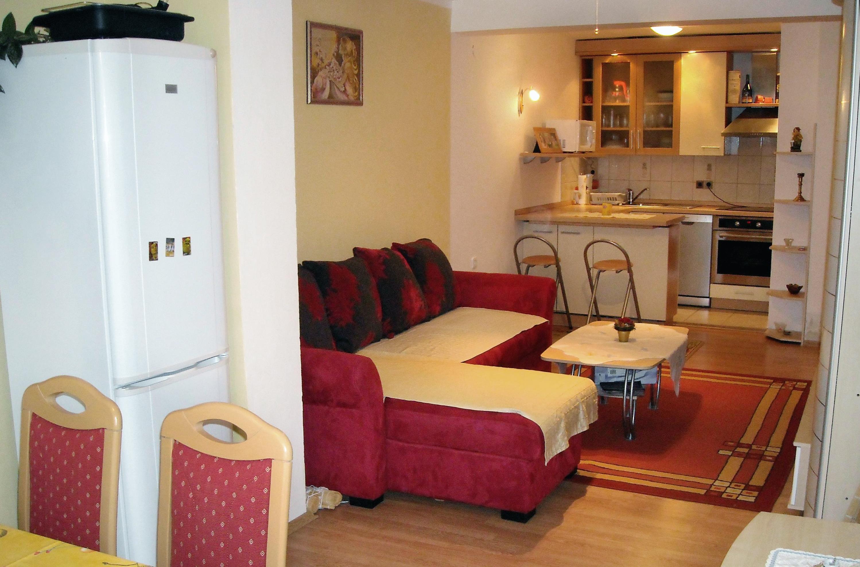 Apartment can accommodate 4 guests. Beds are situated in 1 sleeping rooms, but also in the living room, within 51m2. Guests can use a private terrace to enjoy the warm summer evenings. Food can be prepared using barbecue which is shared with other guests too.