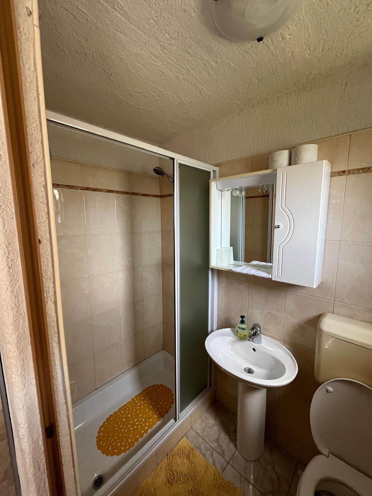 Inside, the studio has everything you need for a pleasant stay. A well-equipped kitchenette with gas hob, filter coffee machine and kettle allows you to prepare delicious meals, while the air conditioning ensures a pleasant indoor temperature throughout. There is also a simple but functional bathroom with a shower to freshen up after a day of exploring.