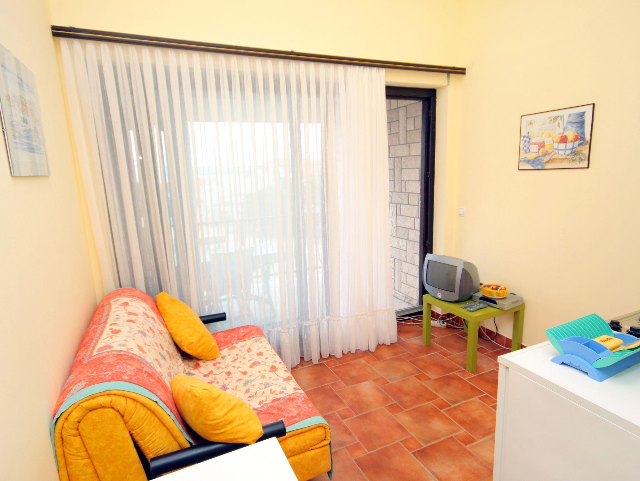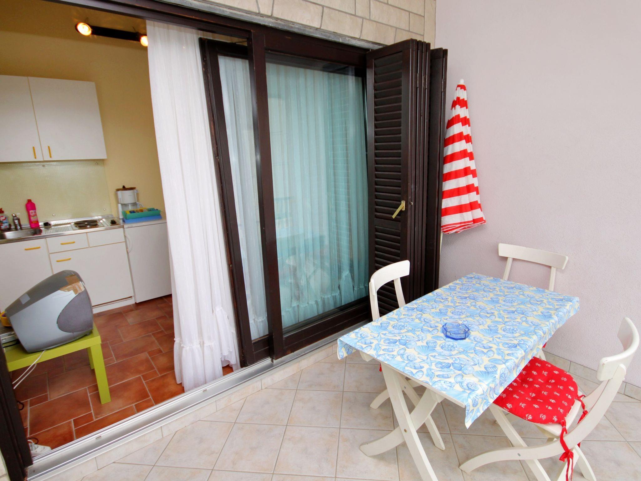 Studio bietet Platz für 2 Gäste. Die Betten sind in Schlafzimmern, die es 1 gibt, innerhalb einer Gesamtfläche von 24m2, angeordnet. Die Gäste haben eine eigene Terrasse zur Verfügung, auf der sie in warmen Sommernächten genießen können. Das Studio-Apartment bietet Meerblick. Es ist erlaubt, Speisen auf dem Gemeinschafts-Grill vorzubereiten. IM PREIS INBEGRIFFEN: Kurtaxe, Endreinigung, Internet, Kinderbett, 1 Bett für Kinder (im Preis enthalten). VERBINDLICHE ZUSÄTZLICHE KOSTEN: Aufzahlung für Kurzaufenthalte (prozentualer Zuschlag pro Nächtigungsanzahl: 30% - 1, 20% - 2, 10% - 3). Die Verfügbarkeit zusätzlicher Dienstleistungen in Ihrem reservierten Termin und die Preise derselben (falls nicht aufgeführt) müssen im Voraus überprüft werden. Zusätzliche Dienstleistungen die in der Zahlungsaufforderung nicht aufgeführt sind werden direkt beim Vermieter bezahlt, angenommen der Gast nutzt auch diese.
