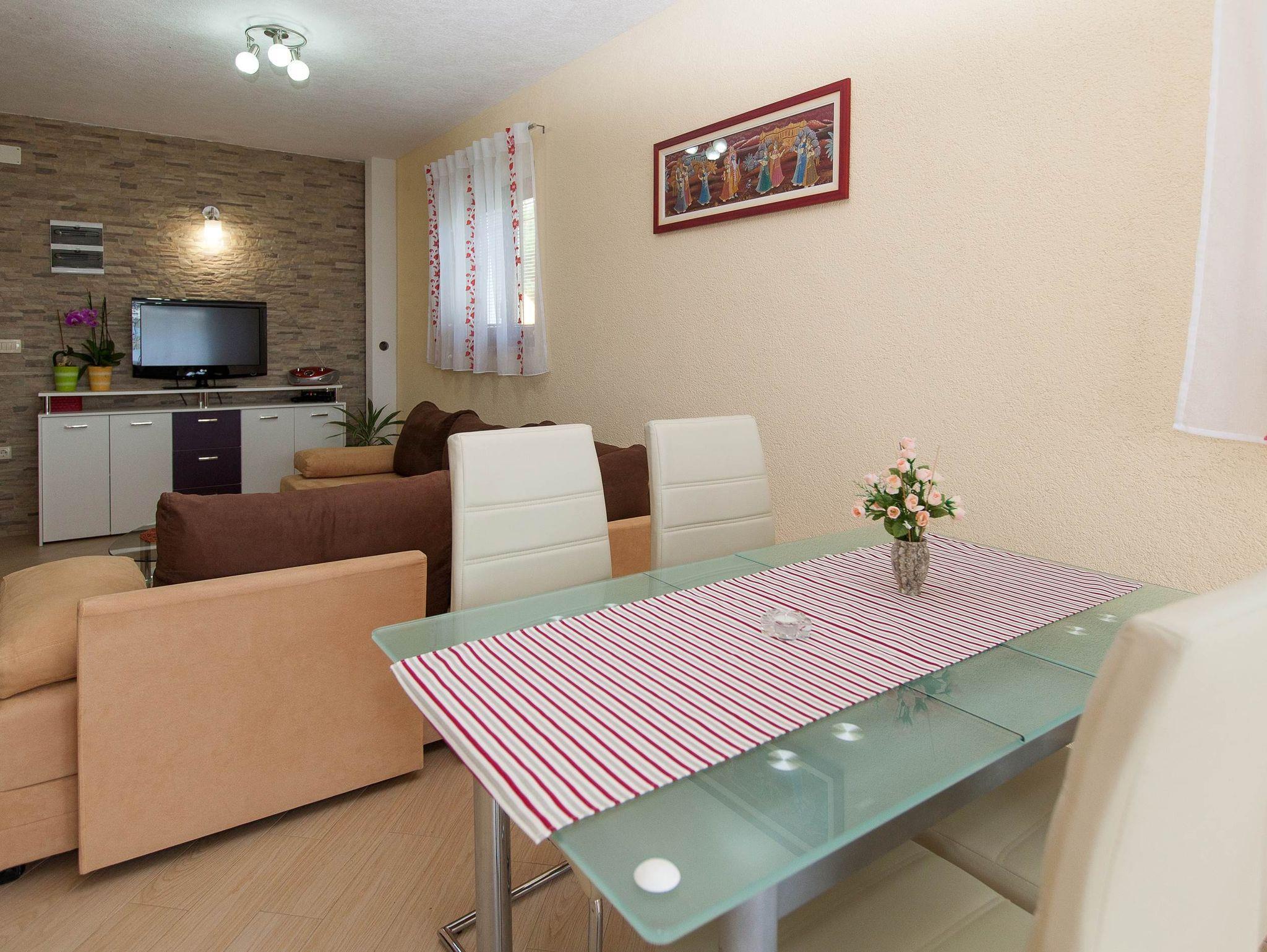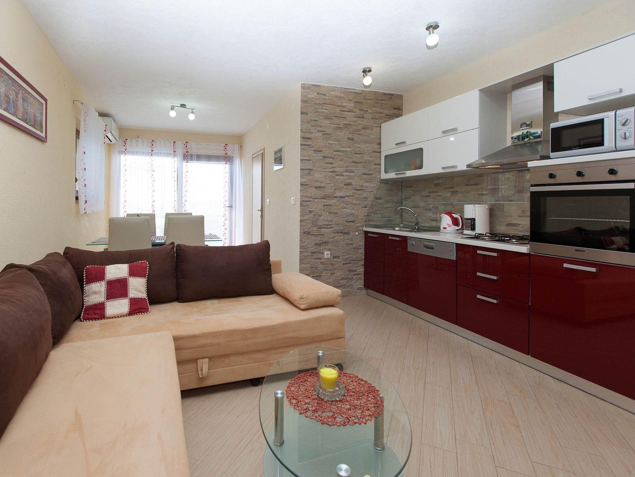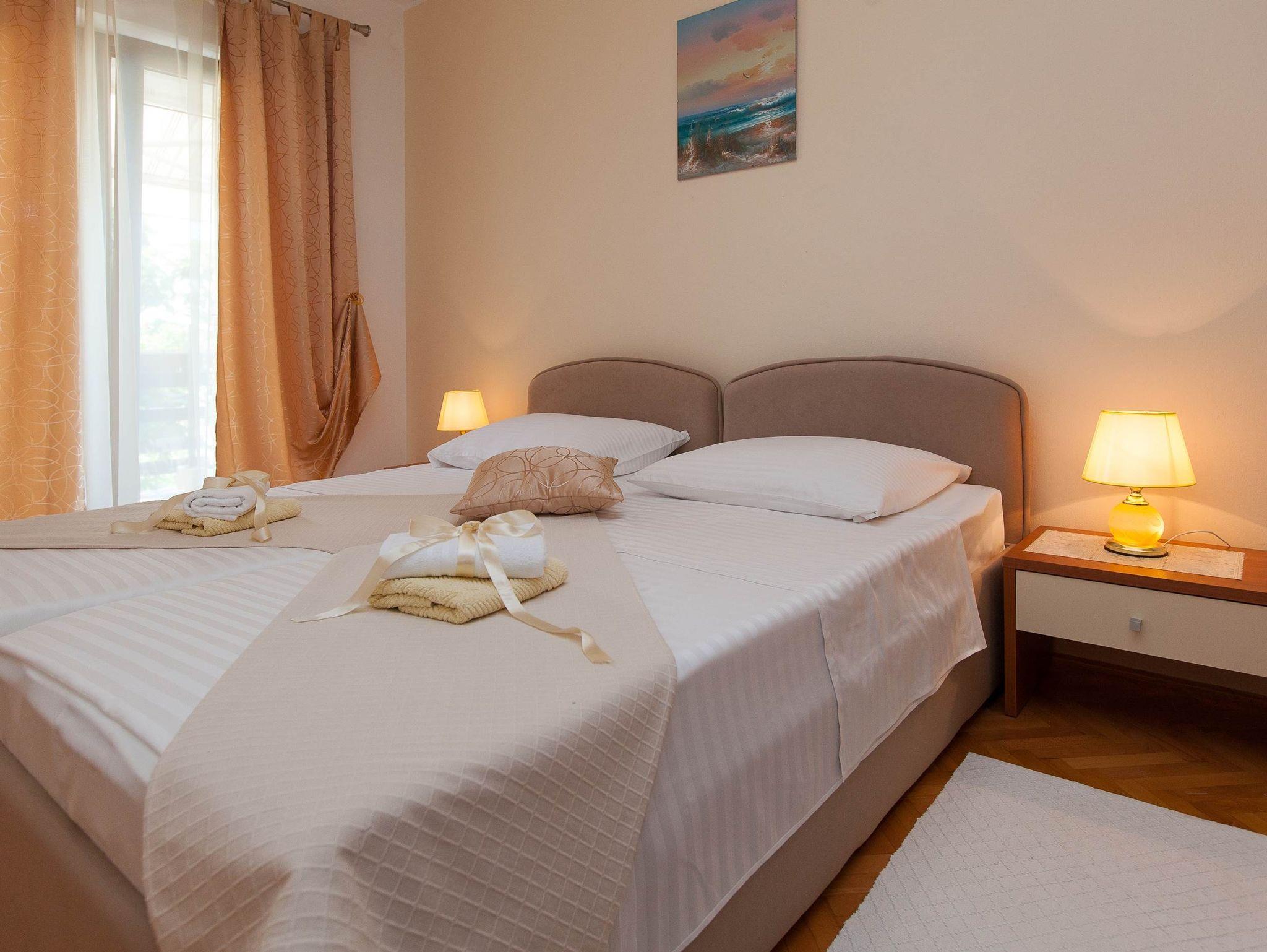 Ferienwohnung bietet Platz für 6 Gäste. Die Betten sind in Schlafzimmern, die es 2 gibt, und in Wohnzimmer, innerhalb einer Gesamtfläche von 60m2, angeordnet. Die Gäste haben eine eigene Terrasse zur Verfügung, auf der sie in warmen Sommernächten genießen können. Das Apartment bietet Meerblick. Es ist erlaubt, Speisen auf dem Gemeinschafts-Grill vorzubereiten. In der Unterkunftseinheit besteht die Möglichkeit des Mitbringens von Haustieren gegen Aufpreis. IM PREIS INBEGRIFFEN: Kurtaxe, Endreinigung, Parkplatz, Internet, Fahrrad, Kinderbett, Bügeleisen, Bügelbrett, Föhn. VERBINDLICHE ZUSÄTZLICHE KOSTEN: Aufzahlung für Kurzaufenthalte (prozentualer Zuschlag pro Nächtigungsanzahl: 30% - 1, 20% - 2, 10% - 3). UNVERBINDLICHE ZUSÄTZLICHE KOSTEN: Klimatisierung (7,00 € pro Nacht), Haustiere (10,00 € pro Nacht). Die Verfügbarkeit zusätzlicher Dienstleistungen in Ihrem reservierten Termin und die Preise derselben (falls nicht aufgeführt) müssen im Voraus überprüft werden. Zusätzliche Dienstleistungen die in der Zahlungsaufforderung nicht aufgeführt sind werden direkt beim Vermieter bezahlt, angenommen der Gast nutzt auch diese.