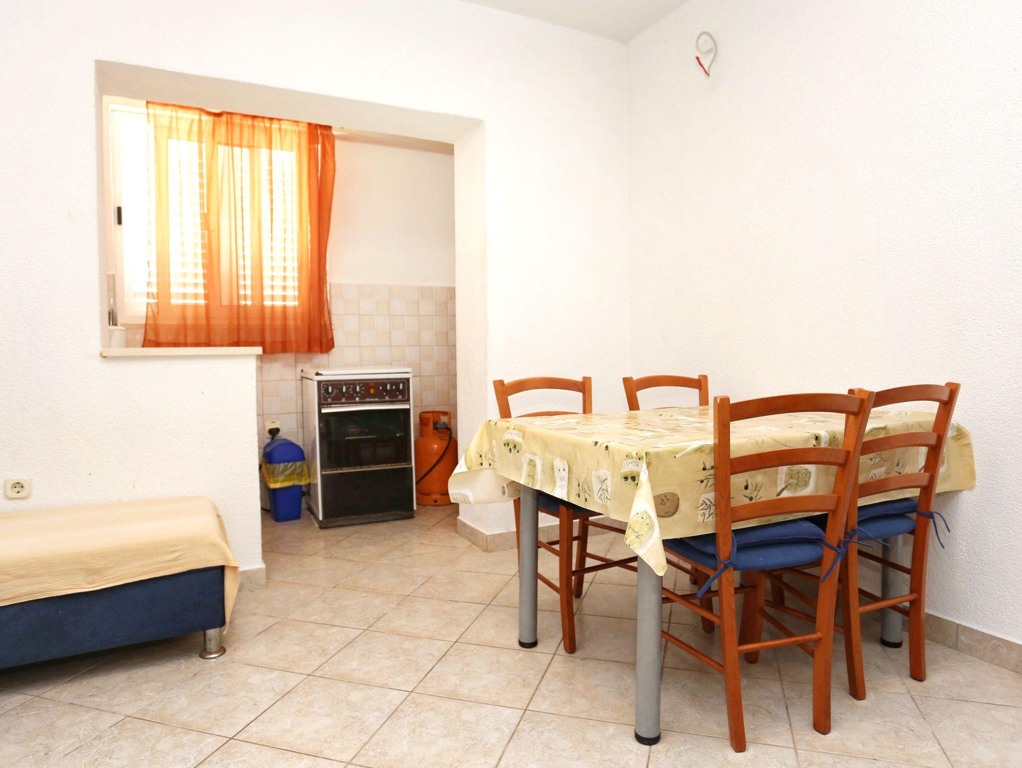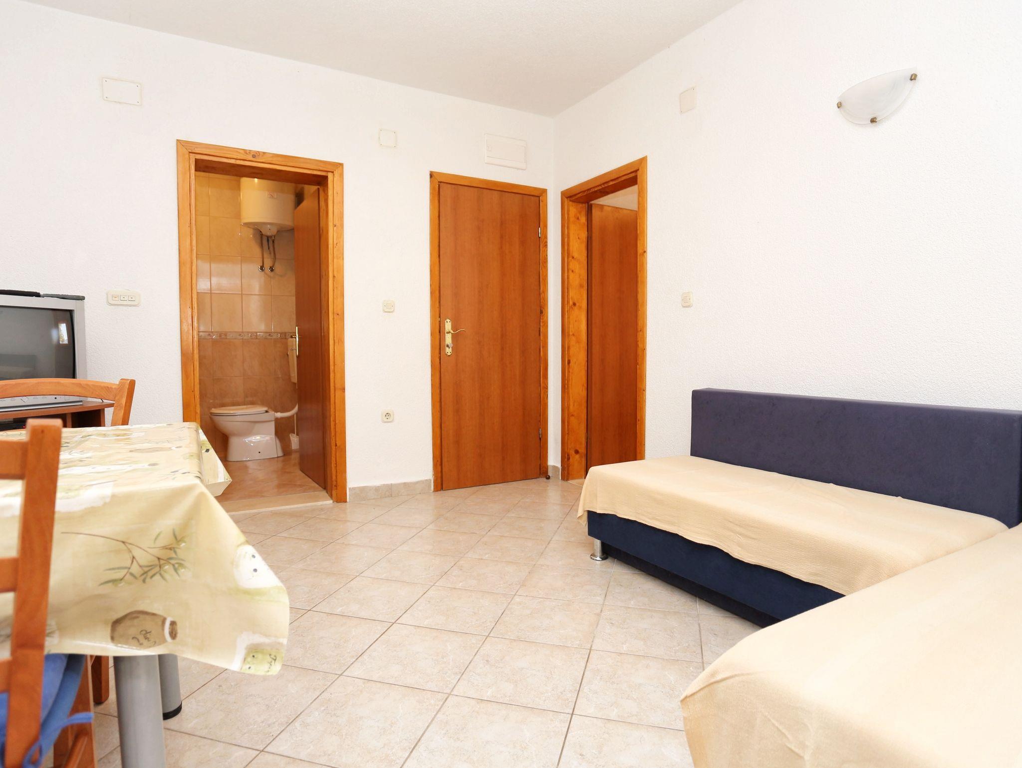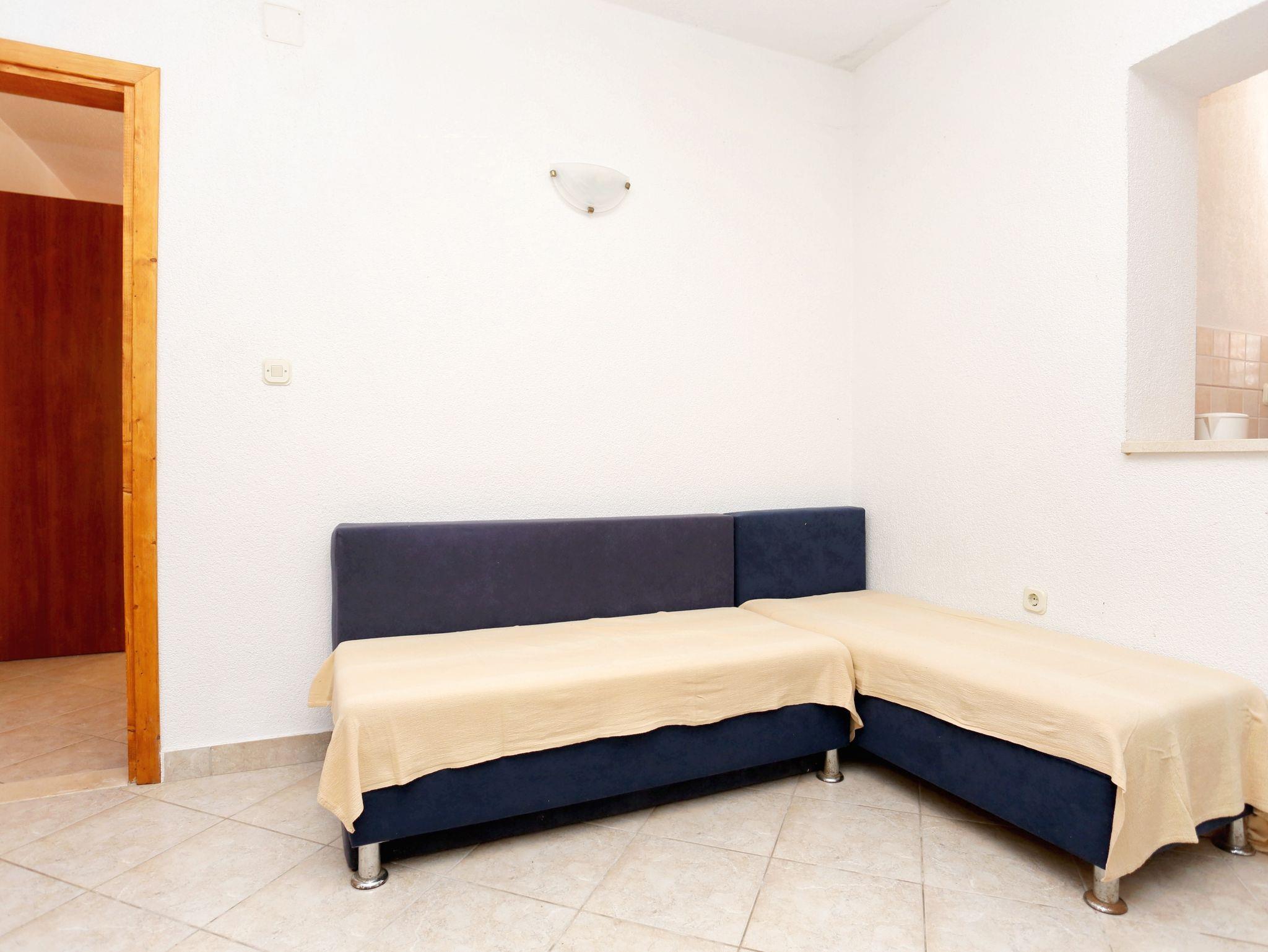 Ferienwohnung bietet Platz für 4 Gäste. Die Betten sind in Schlafzimmern, die es 1 gibt, und in Wohnzimmer, innerhalb einer Gesamtfläche von 32m2, angeordnet. Das Apartment bietet Meerblick. Es ist erlaubt, Speisen auf dem Gemeinschafts-Grill vorzubereiten. Die reservierte Unterkunftseinheit verfügt über einen gemeinsame Terrasse. IM PREIS INBEGRIFFEN: Kurtaxe, Endreinigung, Klimatisierung, Parkplatz, Internet, Kinderbett, Bügeleisen, Bügelbrett, Föhn. VERBINDLICHE ZUSÄTZLICHE KOSTEN: Aufzahlung für Kurzaufenthalte (prozentualer Zuschlag pro Nächtigungsanzahl: 30% - 1, 20% - 2, 10% - 3). UNVERBINDLICHE ZUSÄTZLICHE KOSTEN: Wäschewaschen (5,00 € Waschen). Die Verfügbarkeit zusätzlicher Dienstleistungen in Ihrem reservierten Termin und die Preise derselben (falls nicht aufgeführt) müssen im Voraus überprüft werden. Zusätzliche Dienstleistungen die in der Zahlungsaufforderung nicht aufgeführt sind werden direkt beim Vermieter bezahlt, angenommen der Gast nutzt auch diese.