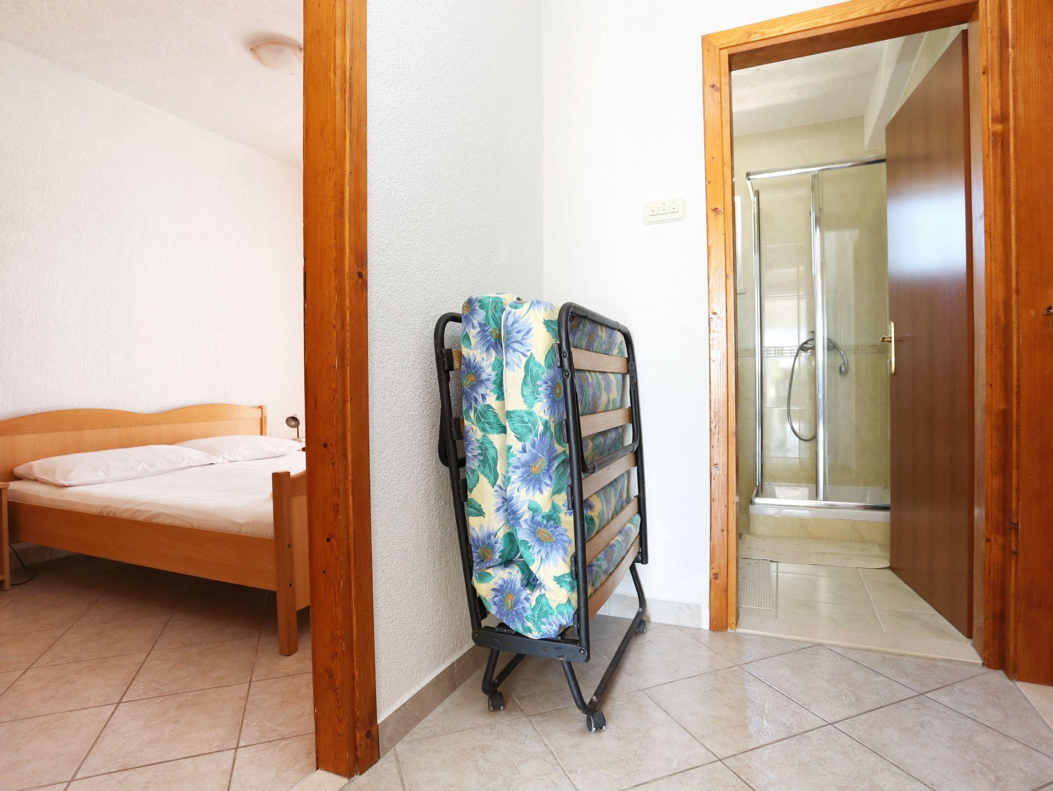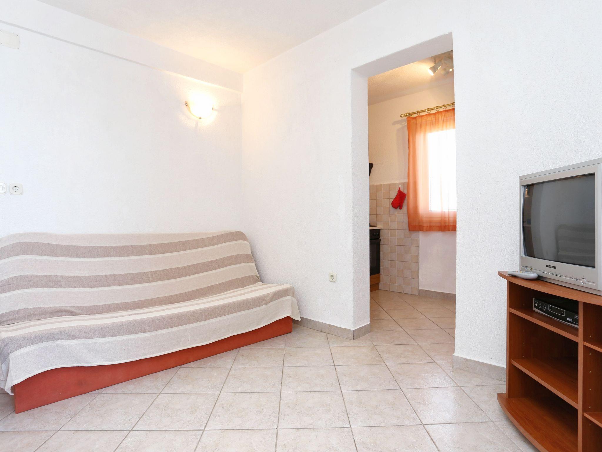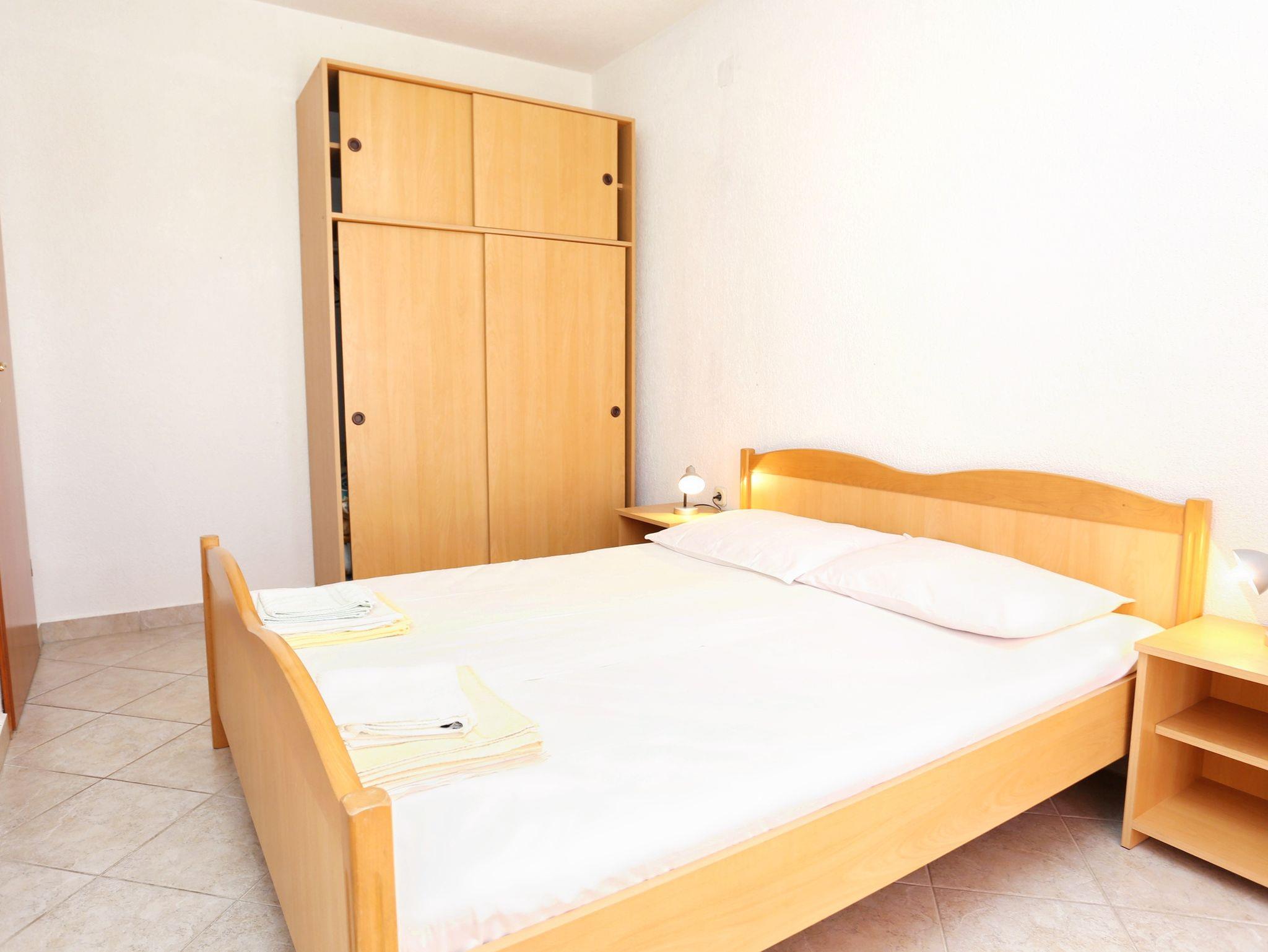 Ferienwohnung bietet Platz für 4 Gäste. Die Betten sind in Schlafzimmern, die es 1 gibt, und in Wohnzimmer, innerhalb einer Gesamtfläche von 32m2, angeordnet. Die Gäste haben eine eigene Terrasse zur Verfügung, auf der sie in warmen Sommernächten genießen können. Das Apartment bietet Meerblick. Es ist erlaubt, Speisen auf dem Gemeinschafts-Grill vorzubereiten. IM PREIS INBEGRIFFEN: Kurtaxe, Endreinigung, Klimatisierung, Parkplatz, Internet, Kinderbett, Bügeleisen, Bügelbrett, Föhn. VERBINDLICHE ZUSÄTZLICHE KOSTEN: Aufzahlung für Kurzaufenthalte (prozentualer Zuschlag pro Nächtigungsanzahl: 30% - 1, 20% - 2, 10% - 3). UNVERBINDLICHE ZUSÄTZLICHE KOSTEN: Wäschewaschen (5,00 € Waschen). Die Verfügbarkeit zusätzlicher Dienstleistungen in Ihrem reservierten Termin und die Preise derselben (falls nicht aufgeführt) müssen im Voraus überprüft werden. Zusätzliche Dienstleistungen die in der Zahlungsaufforderung nicht aufgeführt sind werden direkt beim Vermieter bezahlt, angenommen der Gast nutzt auch diese.