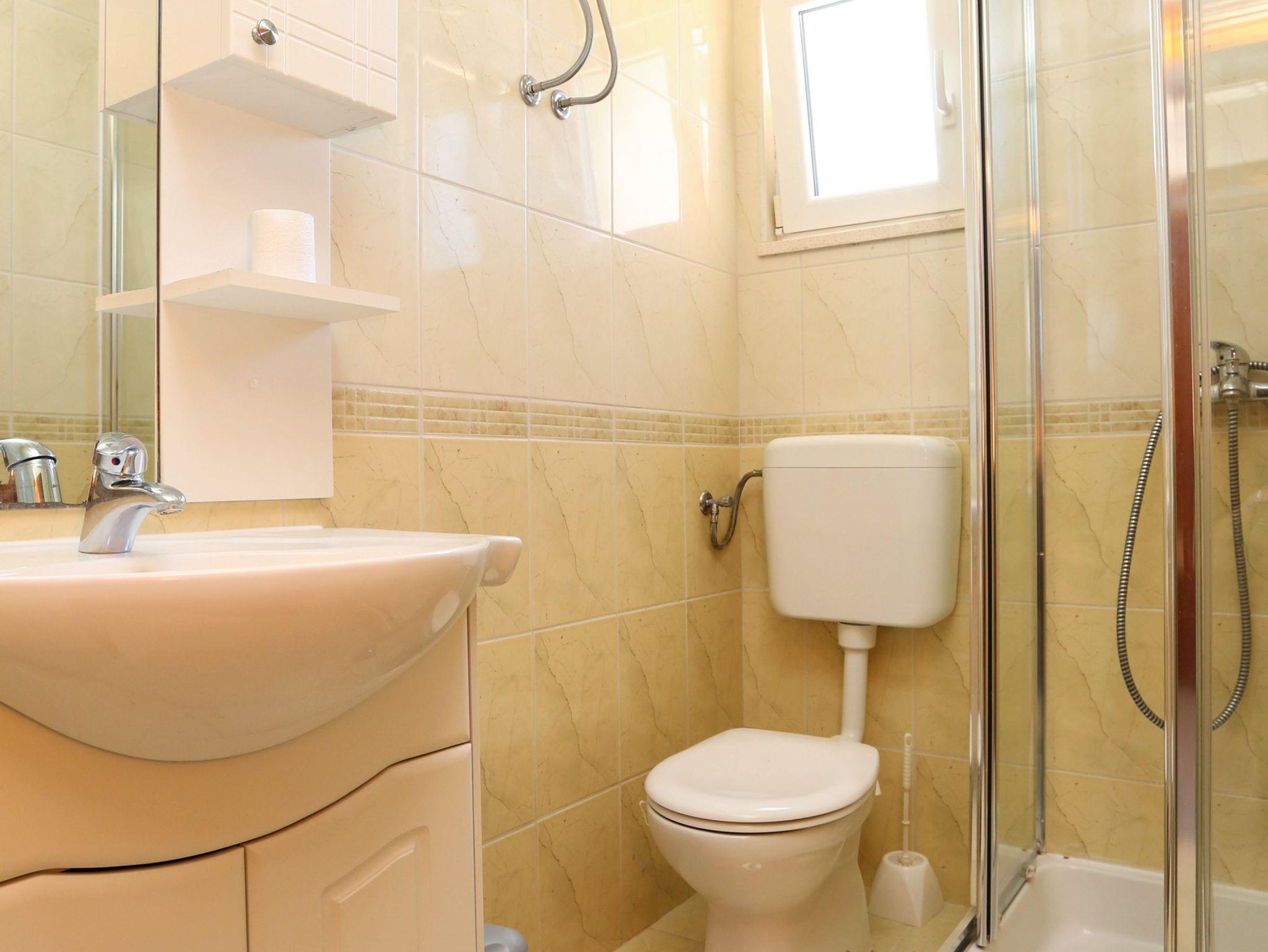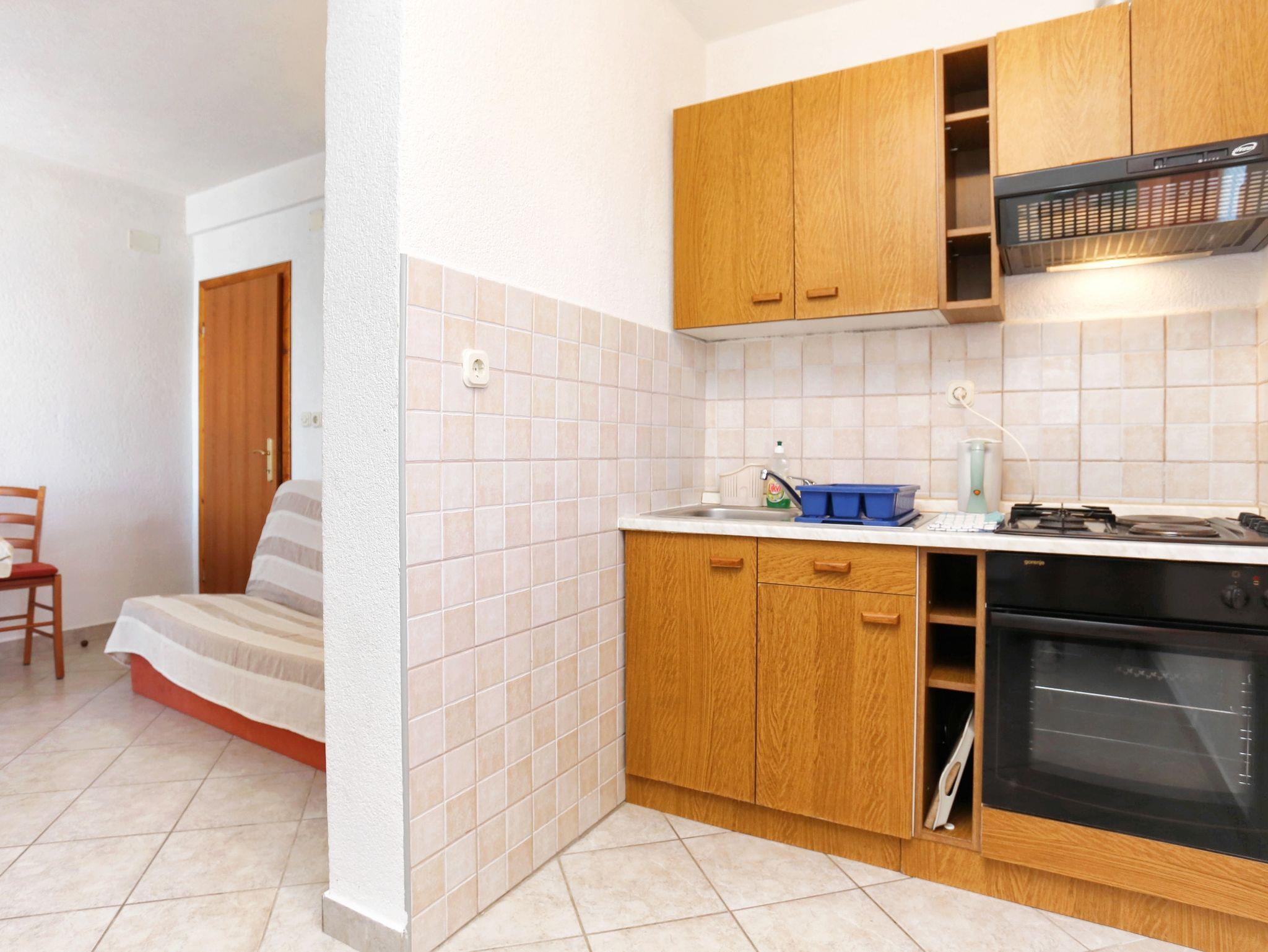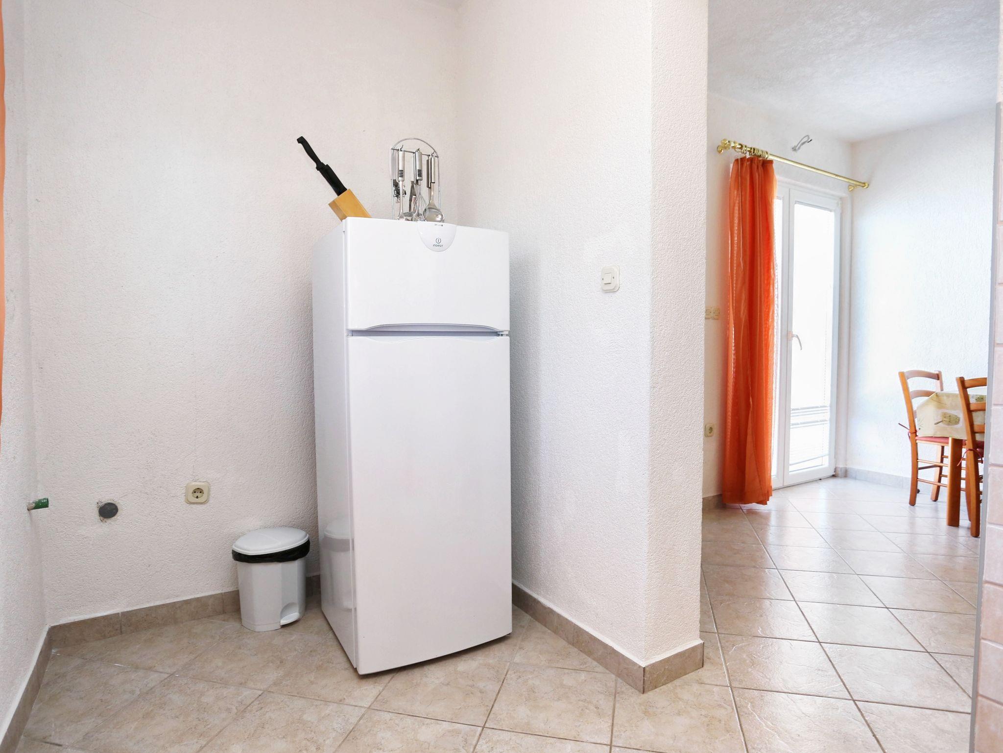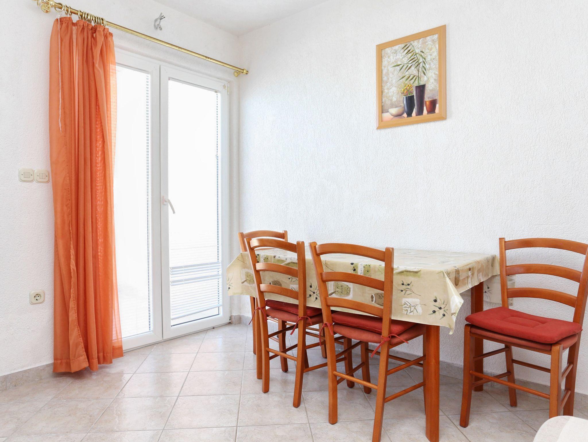 Ferienwohnung bietet Platz für 4 Gäste. Die Betten sind in Schlafzimmern, die es 1 gibt, und in Wohnzimmer, innerhalb einer Gesamtfläche von 32m2, angeordnet. Die Gäste haben eine eigene Terrasse zur Verfügung, auf der sie in warmen Sommernächten genießen können. Das Apartment bietet Meerblick. Es ist erlaubt, Speisen auf dem Gemeinschafts-Grill vorzubereiten. IM PREIS INBEGRIFFEN: Kurtaxe, Endreinigung, Klimatisierung, Parkplatz, Internet, Kinderbett, Bügeleisen, Bügelbrett, Föhn. VERBINDLICHE ZUSÄTZLICHE KOSTEN: Aufzahlung für Kurzaufenthalte (prozentualer Zuschlag pro Nächtigungsanzahl: 30% - 1, 20% - 2, 10% - 3). UNVERBINDLICHE ZUSÄTZLICHE KOSTEN: Wäschewaschen (5,00 € Waschen). Die Verfügbarkeit zusätzlicher Dienstleistungen in Ihrem reservierten Termin und die Preise derselben (falls nicht aufgeführt) müssen im Voraus überprüft werden. Zusätzliche Dienstleistungen die in der Zahlungsaufforderung nicht aufgeführt sind werden direkt beim Vermieter bezahlt, angenommen der Gast nutzt auch diese.
