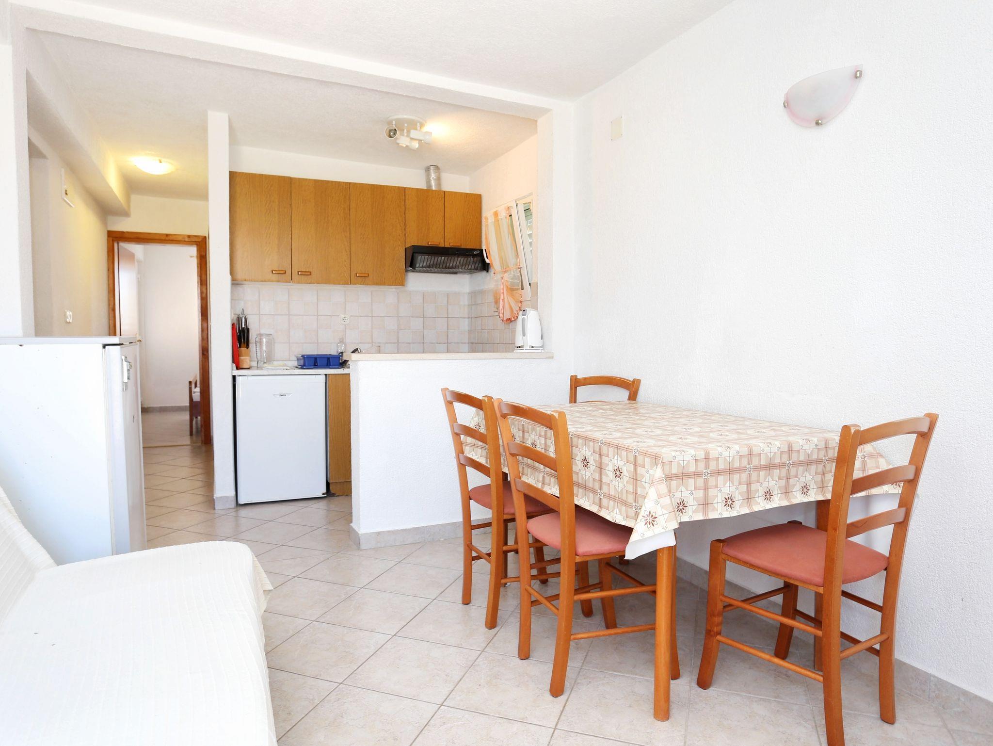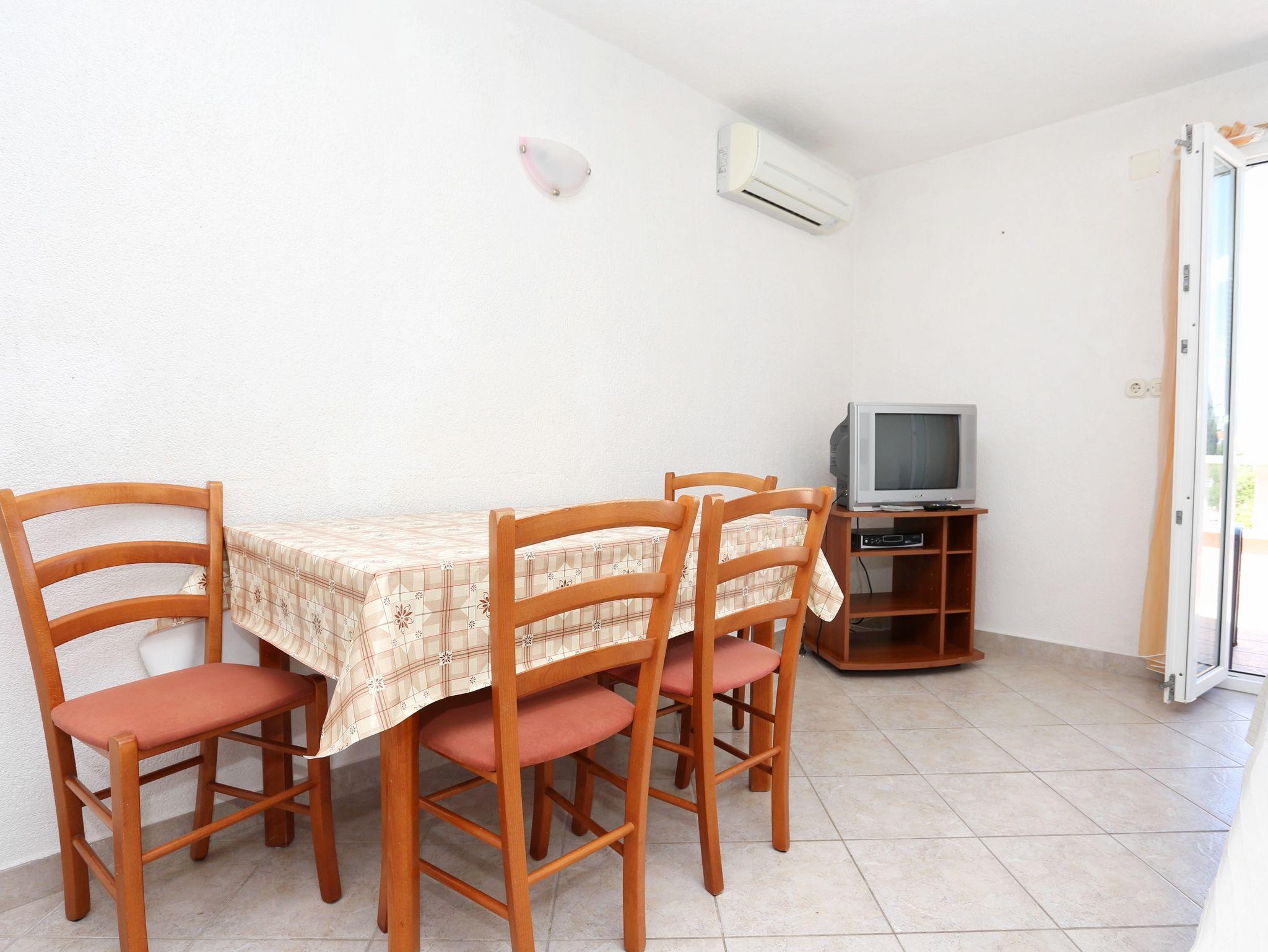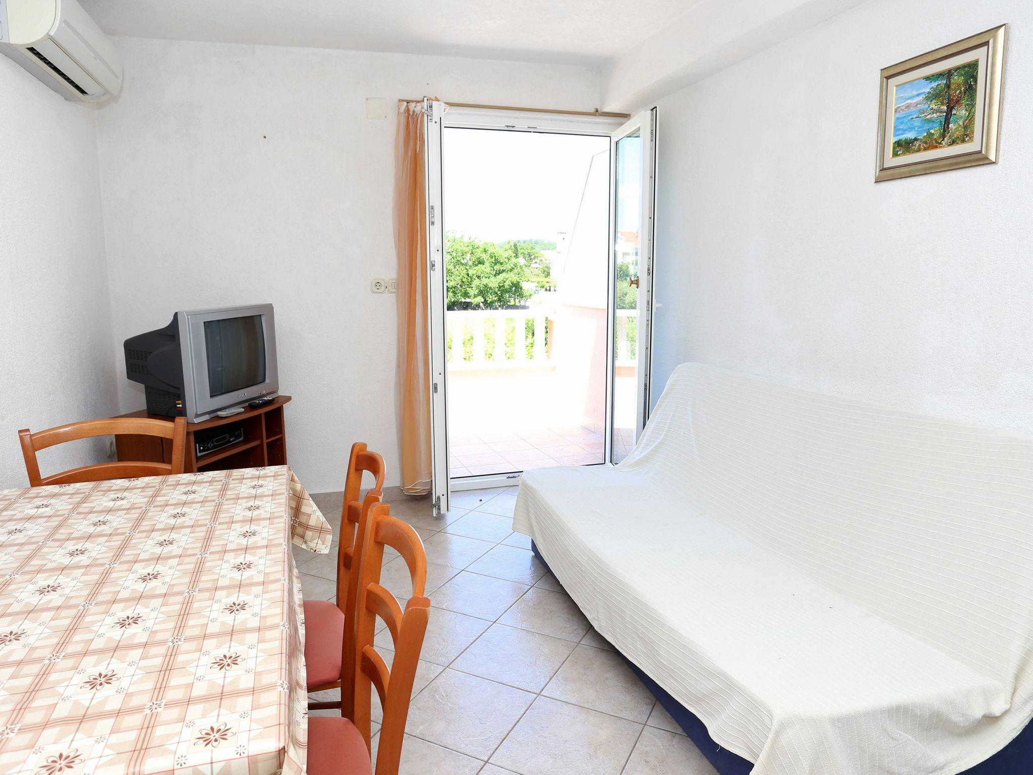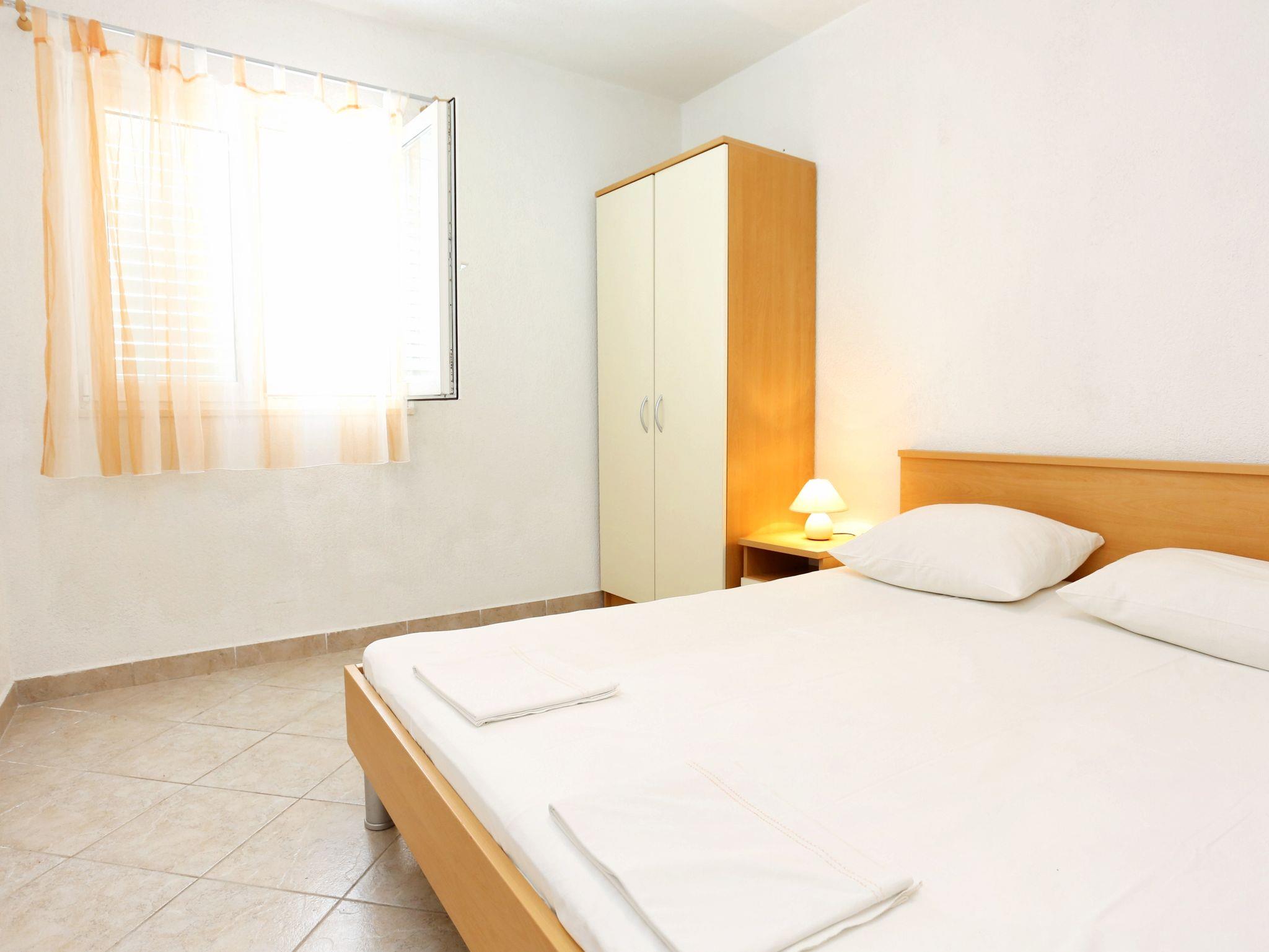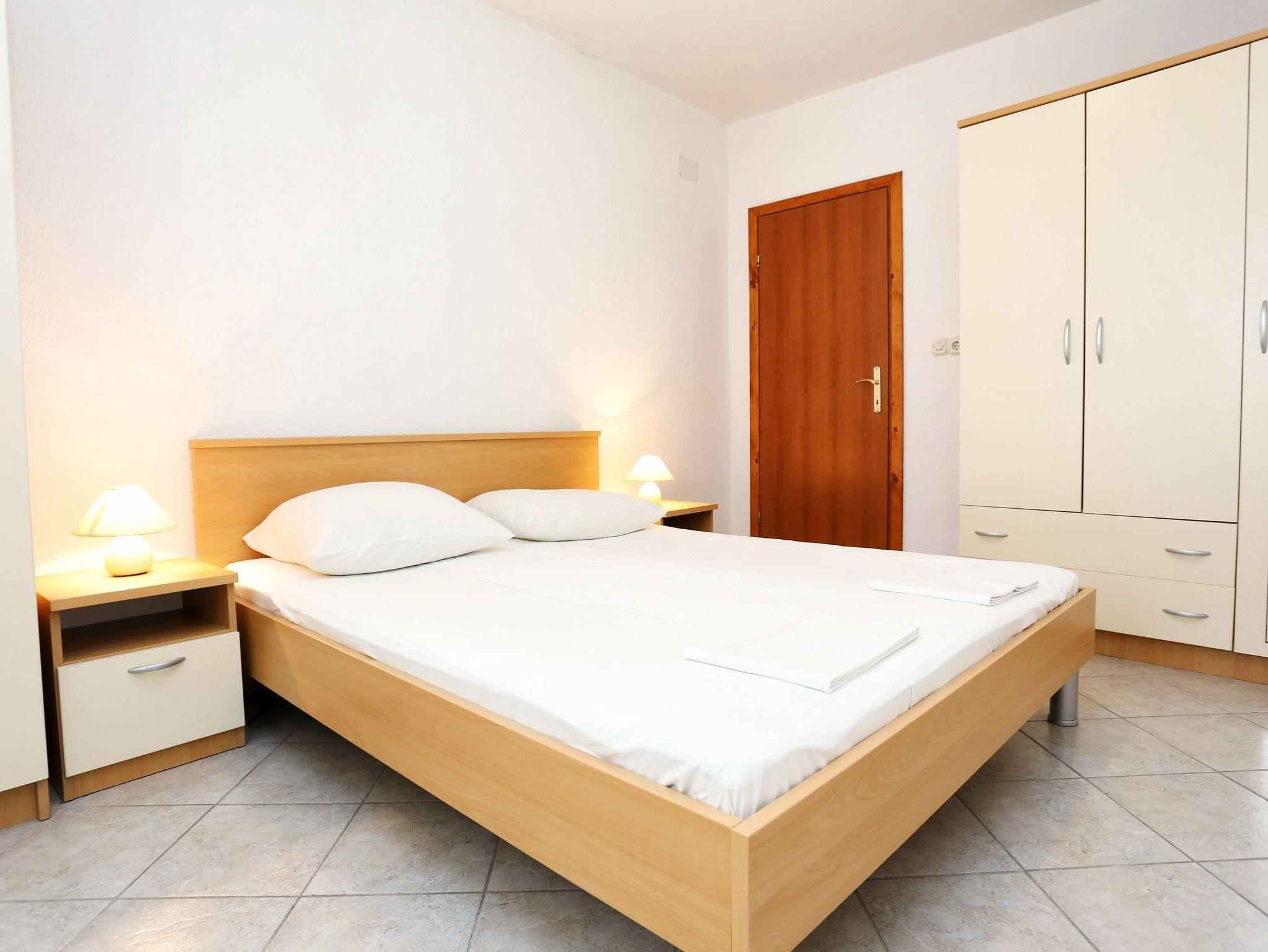 Ferienwohnung bietet Platz für 5 Gäste. Die Betten sind in Schlafzimmern, die es 2 gibt, und in Wohnzimmer, innerhalb einer Gesamtfläche von 43m2, angeordnet. Die Gäste haben eine eigene Terrasse zur Verfügung, auf der sie in warmen Sommernächten genießen können. Das Apartment bietet Meerblick. Es ist erlaubt, Speisen auf dem Gemeinschafts-Grill vorzubereiten. IM PREIS INBEGRIFFEN: Kurtaxe, Endreinigung, Klimatisierung, Parkplatz, Internet, Kinderbett, Bügeleisen, Bügelbrett, Föhn. VERBINDLICHE ZUSÄTZLICHE KOSTEN: Aufzahlung für Kurzaufenthalte (prozentualer Zuschlag pro Nächtigungsanzahl: 30% - 1, 20% - 2, 10% - 3). UNVERBINDLICHE ZUSÄTZLICHE KOSTEN: Wäschewaschen (5,00 € Waschen). Die Verfügbarkeit zusätzlicher Dienstleistungen in Ihrem reservierten Termin und die Preise derselben (falls nicht aufgeführt) müssen im Voraus überprüft werden. Zusätzliche Dienstleistungen die in der Zahlungsaufforderung nicht aufgeführt sind werden direkt beim Vermieter bezahlt, angenommen der Gast nutzt auch diese.