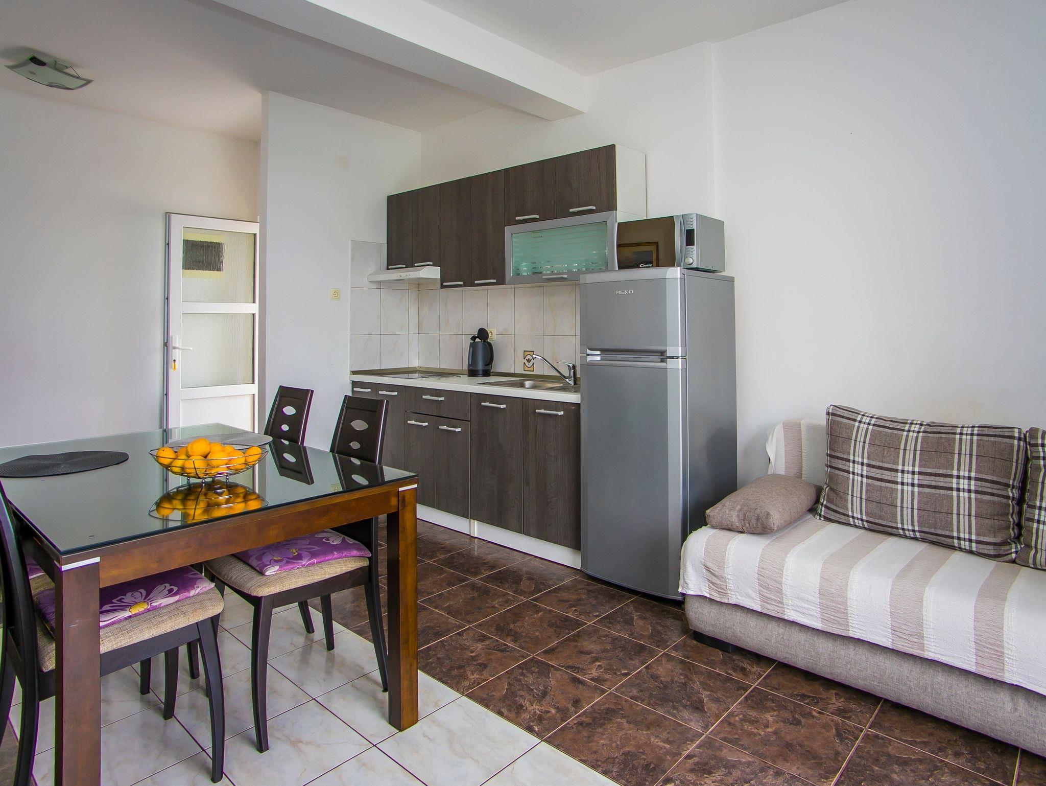 Ferienwohnung bietet Platz für 4 Gäste. Die Betten sind in Schlafzimmern, die es 1 gibt, und in Wohnzimmer, innerhalb einer Gesamtfläche von 40m2, angeordnet. Die Gäste haben einen eigenen Balkon zur Verfügung, auf der sie in warmen Sommernächten genießen können. Das Apartment bietet Meerblick. Es ist erlaubt, Speisen auf dem Gemeinschafts-Grill vorzubereiten. IM PREIS INBEGRIFFEN: Kurtaxe, Endreinigung, Klimatisierung, Parkplatz, Internet, Bootsanlegeplatz, Kinderbett, Liegestühle. Die Verfügbarkeit zusätzlicher Dienstleistungen in Ihrem reservierten Termin und die Preise derselben (falls nicht aufgeführt) müssen im Voraus überprüft werden. Zusätzliche Dienstleistungen die in der Zahlungsaufforderung nicht aufgeführt sind werden direkt beim Vermieter bezahlt, angenommen der Gast nutzt auch diese.