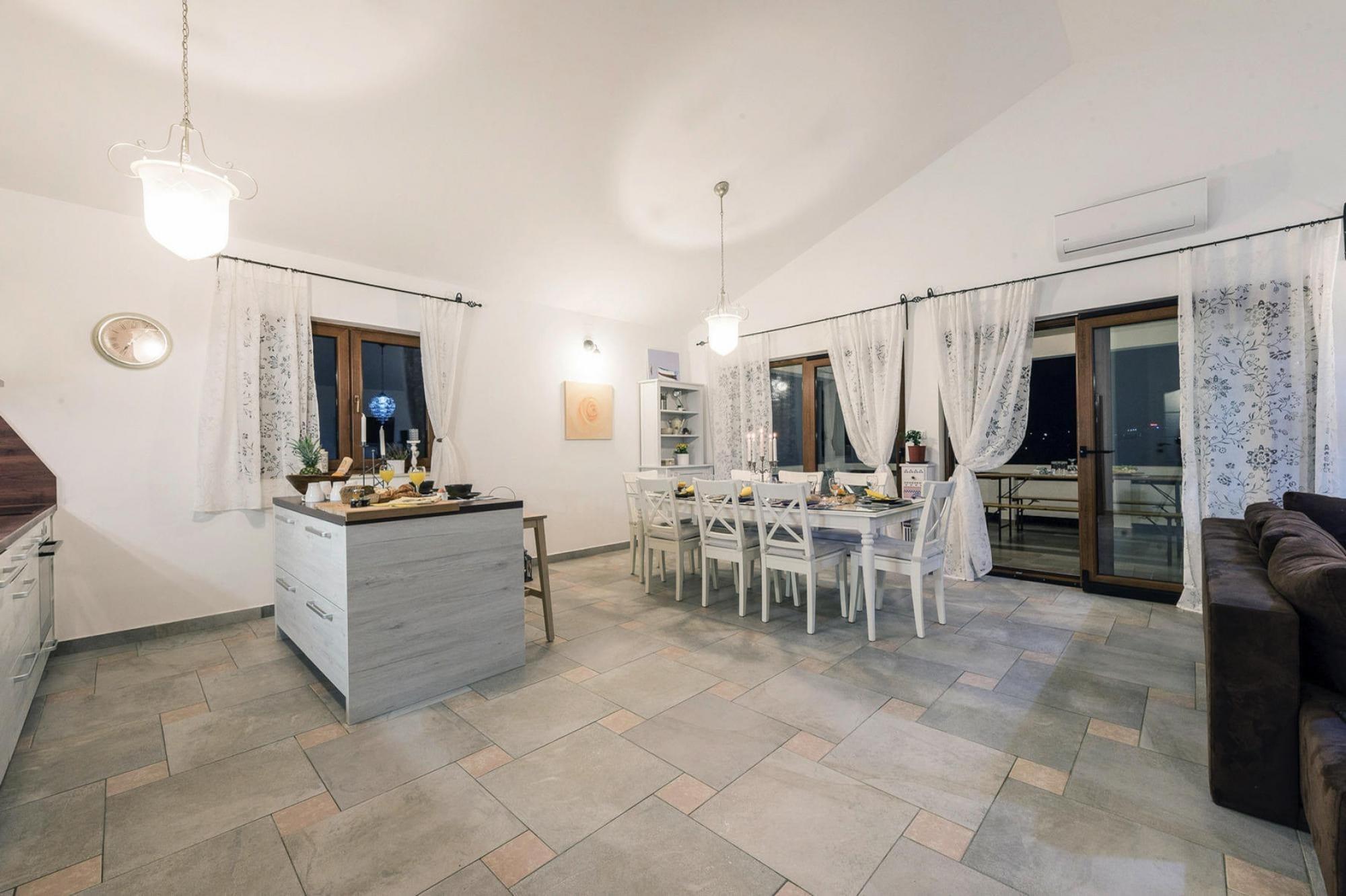 Modern and comfortably furnished holiday villa in the small, tranquil village of Rovanjska. The holiday home has 4 bedrooms and 3 bathrooms and therefore offers plenty of space for all fellow travellers. From the beautiful, large balcony you have a wonderful panoramic view of the sea and the Velebit mountains. During the day you can relax by your pool and end the evening on your terrace with a barbecue. The pebble beach, on a particularly clean stretch of the Adriatic Sea, is just a few steps away. A nice walk by the sea takes you to the restaurants, cafes, bars and shops of Rovanjska. Highlights included: consumption-based energy costs, WiFi, registration fee, tourist tax, bed linen and towels. This area is perfect for active holidays with hiking, mountain biking, and water sports. The Zrmanja River is great for canoeing. Don’t miss Paklenica National Park, just 11 km from your accommodation and 50 km north of Zadar. With 400-meter cliffs, caves, and unique rock formations, it offers stunning natural beauty. The park features over 150 km of hiking trails for both short hikes and multi-day treks, including a popular two-hour hike through the Velika Paklenica Gorge, where you can see well-preserved water mills and enjoy snacks at the Lugarnica forest hut. Zadar, with its historical sights and shopping mall, is only 30 km away. Mobility: not suitable for persons with reduced mobility.