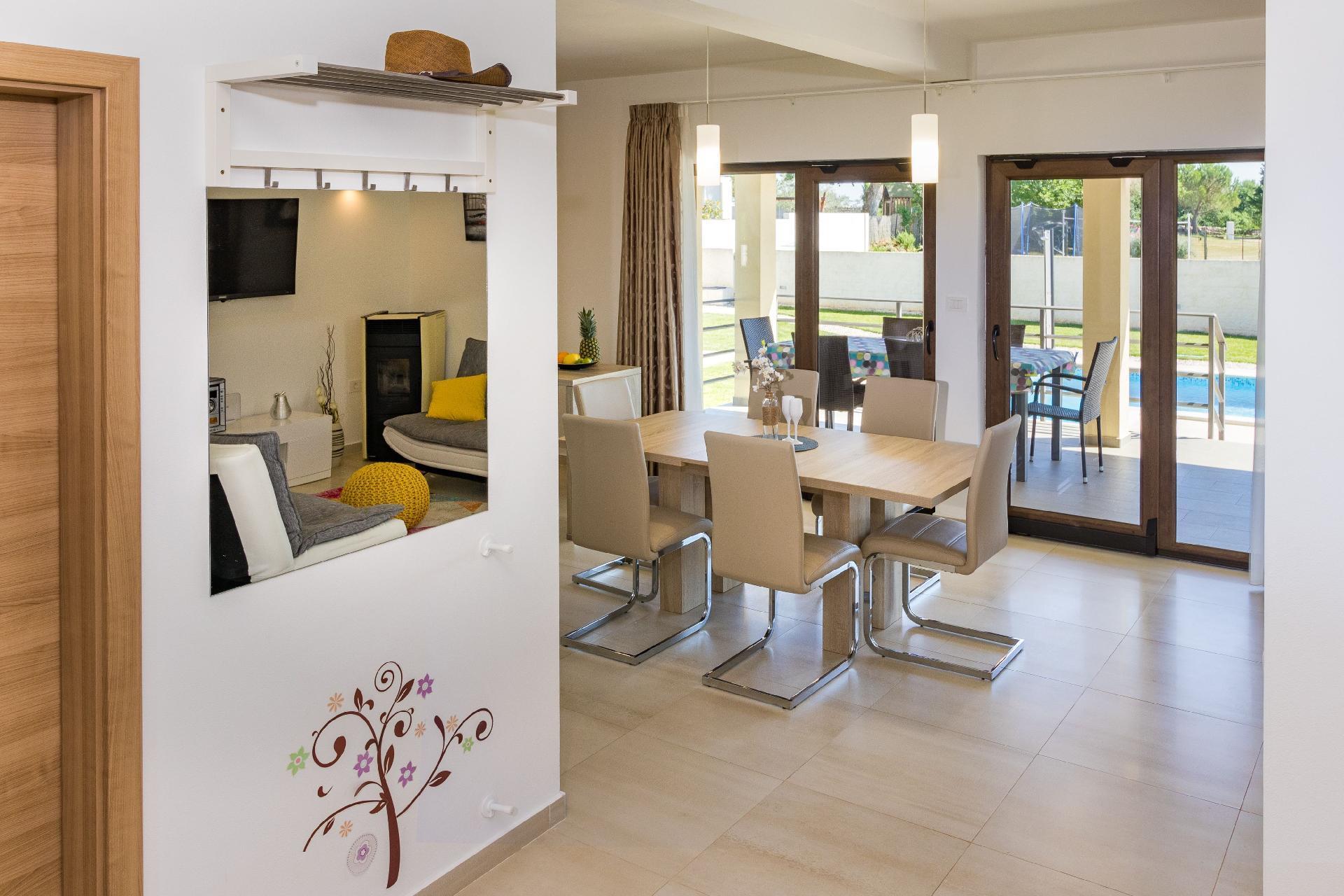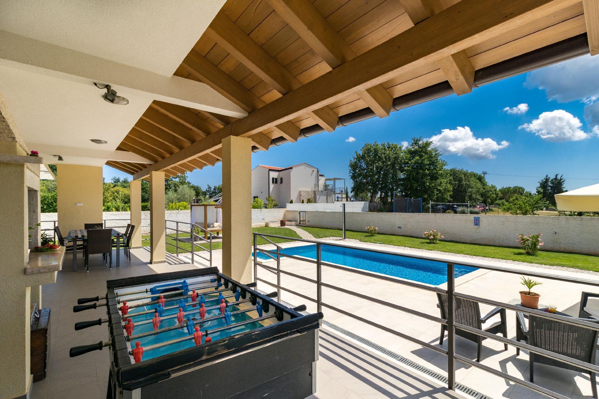 This villa sits in the southern area of Central Istria, in the municipality of Svetvincenat.Mouth-watering traditional cuisine and world-class wine for which this region is renowned, add the final ingredients to a memorable holiday.Mouth-watering traditional cuisine and world-class wine for which this region is renowned, add the final ingredients to a memorable holiday.Beach: Fažana, 9 kmAirport: Pula, 15 kmRestaurant: Klarici, 1 km, Vodnjan 7 kmShop: Juršici,1 km, Vodnjan 7kmHere you will also find a lot of little, charming medieval cities like Svetvincenat with the Morosini-Grimani castle, which is worth seeing as it represents one of the best preserved examples of Venetian architecture in Istria. This area is known for many events like for example a dance festival, cheese festivals and an interesting program like the selection of the best goat.