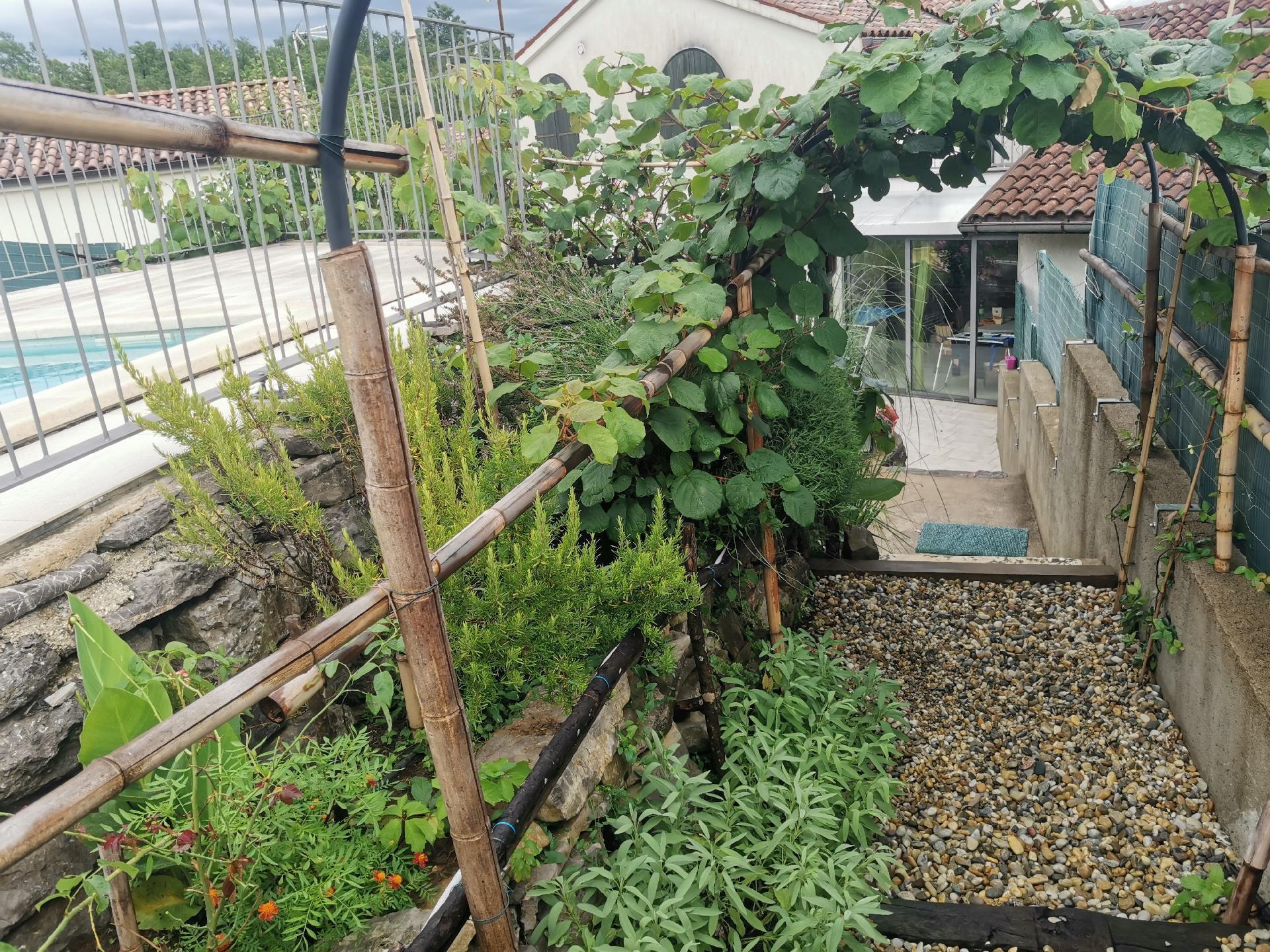 Outside, the spacious plot of approx. 3000 m2 invites you to linger and relax. A large private outdoor pool with a paved terrace, an extensive pebble beach, a covered terrace with barbecue facilities, a green lawn and a well-tended garden offer numerous opportunities for leisure activities. Protected from prying eyes, you can enjoy undisturbed outdoor life here, whether sunbathing, swimming or cosy get-togethers around the barbecue.