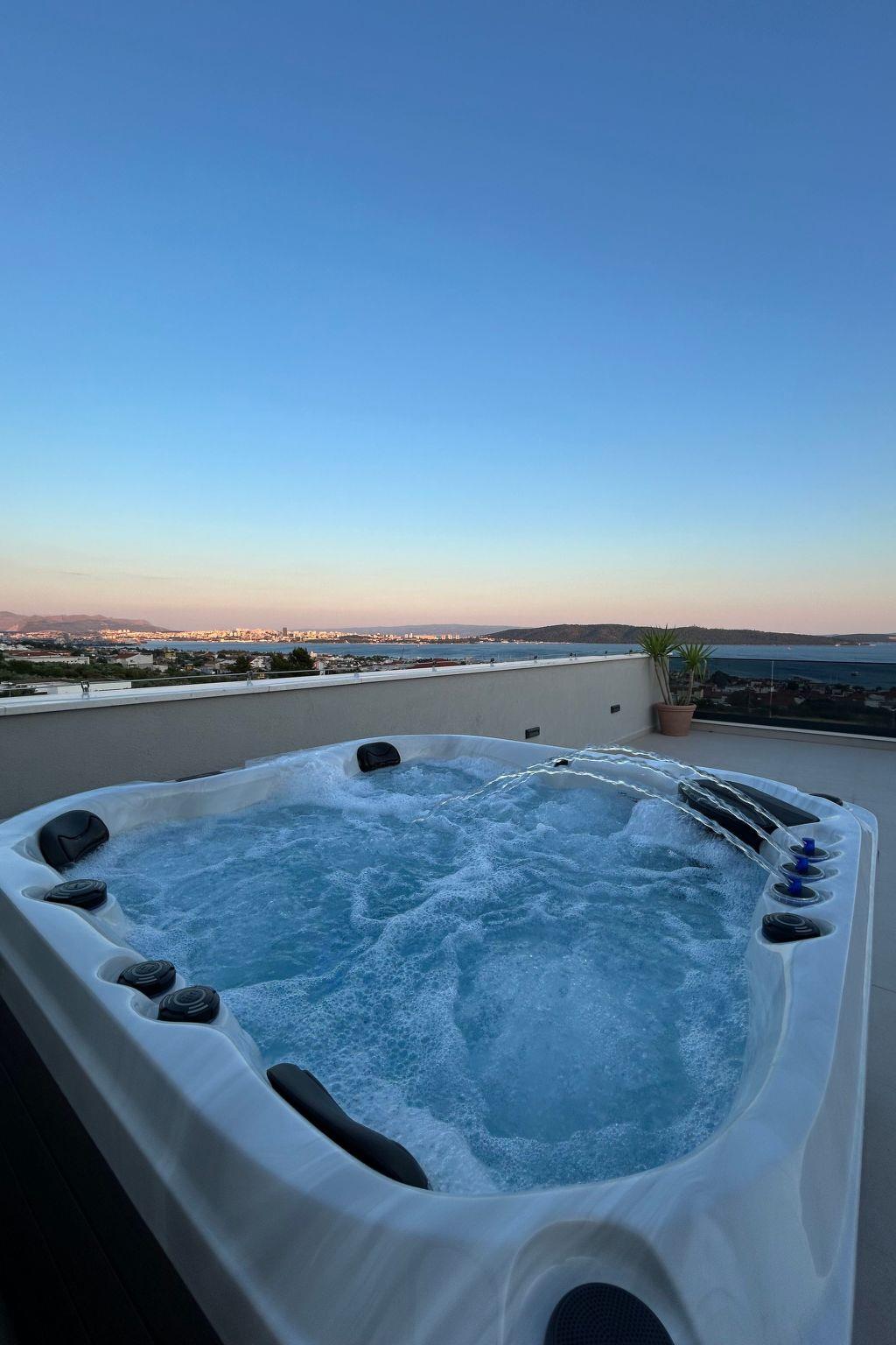 The outdoor area of this apartment is a true highlight, featuring both a terrace and a balcony where guests can bask in the serene environment. For a luxurious touch, the outdoor hot tub awaits to soothe your senses, while the completely fenced-in area ensures peace of mind for those without pets. The crown jewel is the roof terrace, offering a private space under the sky, ideal for relaxation or entertainment.