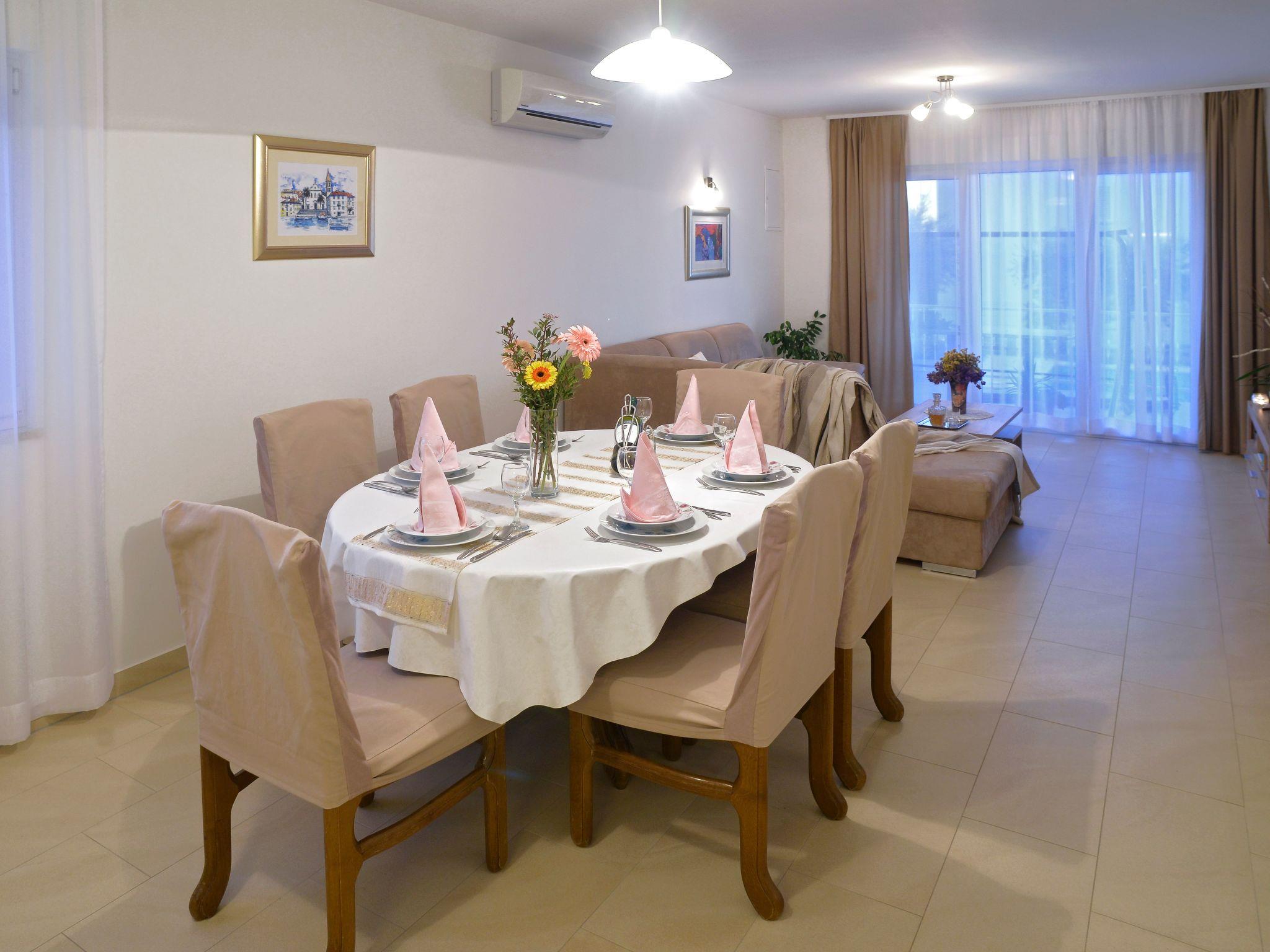 The house was newly built in 2016. It is very well equipped and comfortably large, accommodates up to 6 people in 3 bedrooms and offers everything you need for comfortable holiday including towels and bed linen for 6 persons. There is a living room and a fully equipped kitchen with dining area and a total of two bathrooms with shower and a toilet with laundry. Completely covered with free Wi-fi and satelite TV in living room.