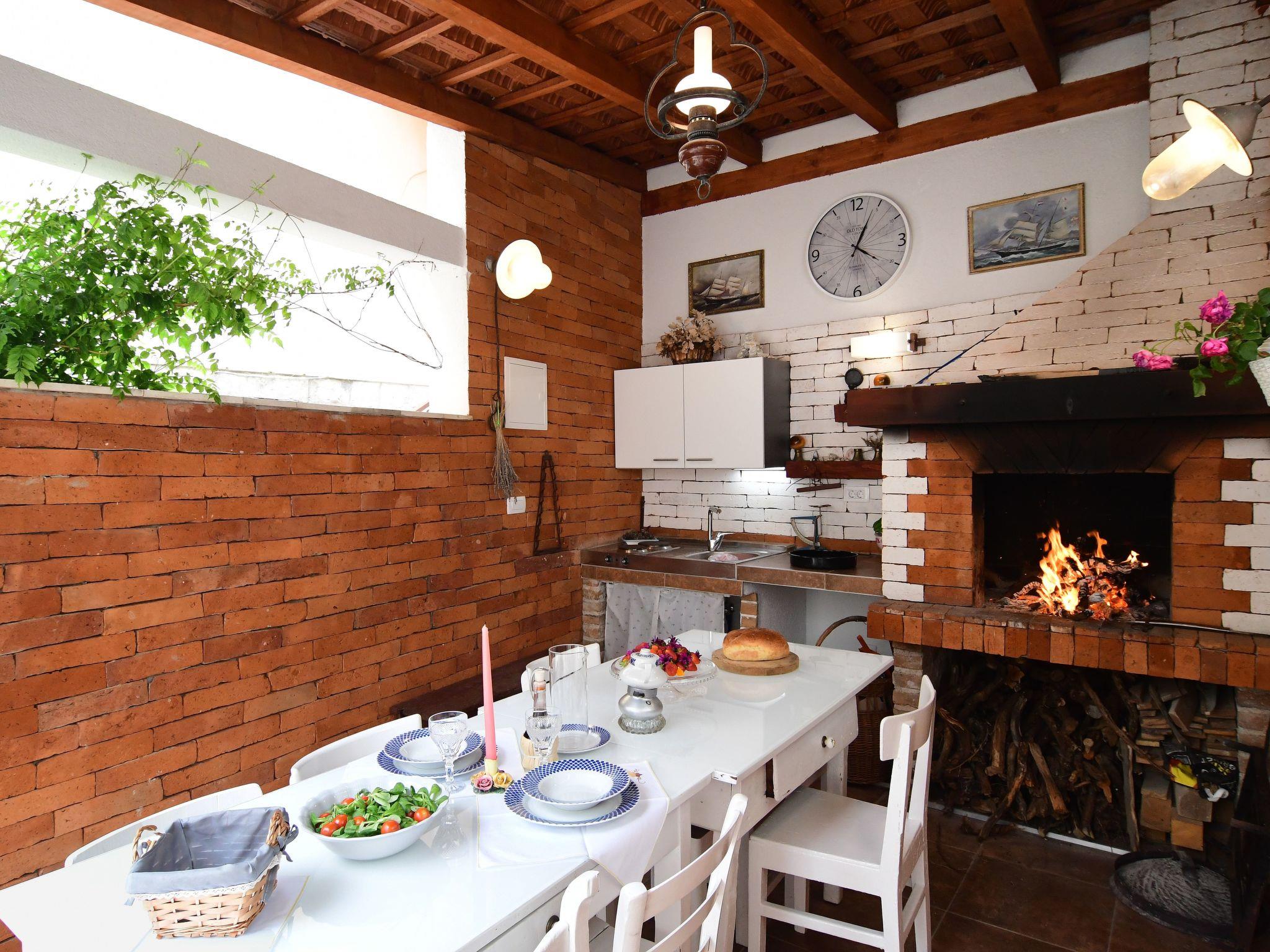 embellished with a traditional patio with an atmospheric fireplace that will make your stay in the very centre of Kastel Kambelovac unique, as if you were in the times of the noble Cambi founders of the third of the seven castles located between the cities of Split and Trogir.