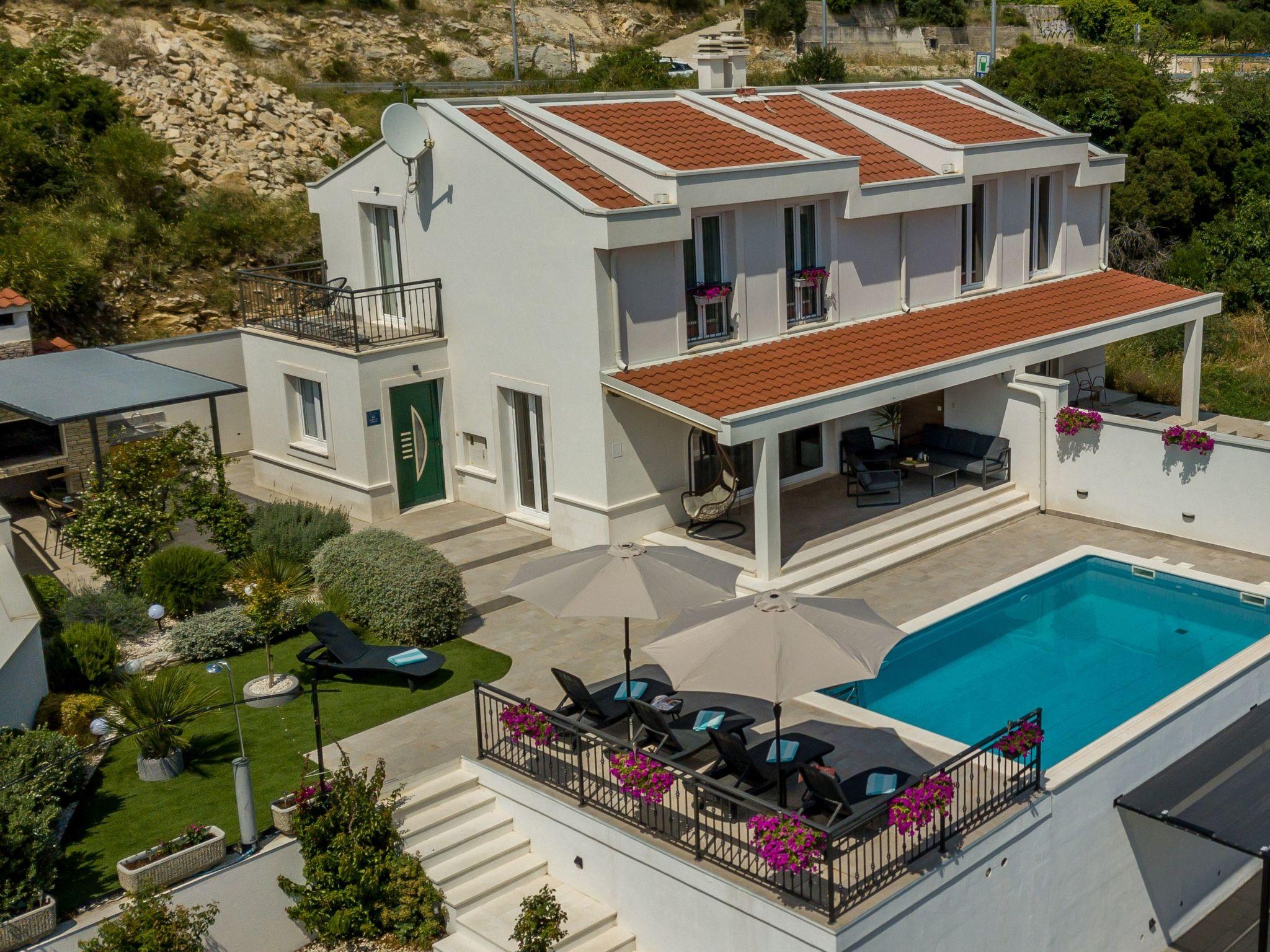 The outdoor area of Villa Mermaid is a true family paradise. The property benefits from a fully fenced garden, ensuring a safe and private environment where children can play freely. The highlight is undoubtedly the private pool, surrounded by ample space for lounging and entertaining. For those who delight in alfresco dining or simply soaking up the sun, a terrace, a balcony, and a rooftop terrace offer versatile spaces for relaxation and enjoying the gorgeous Split climate.