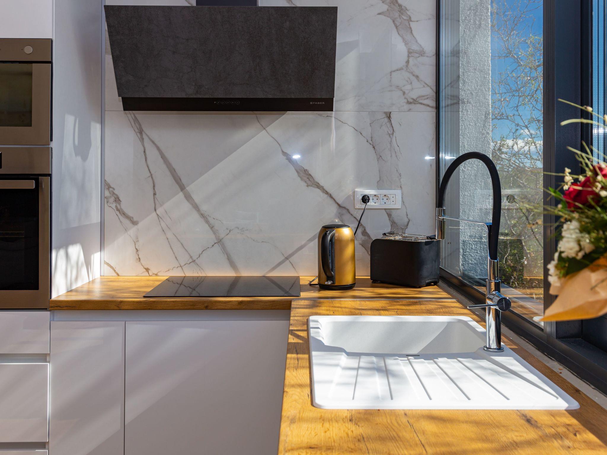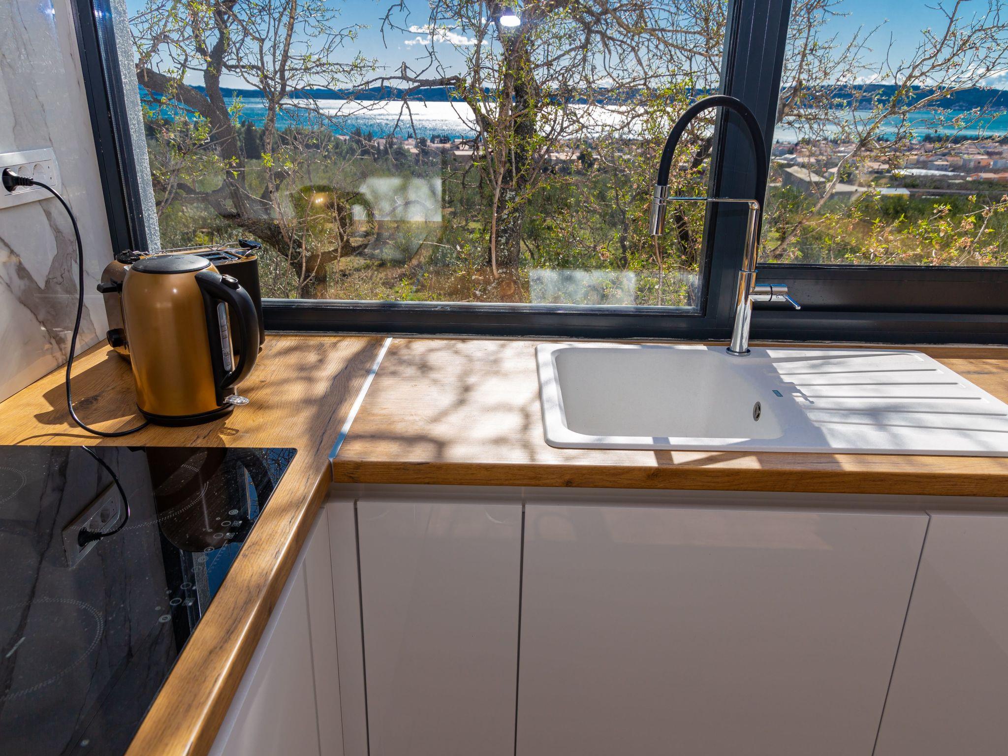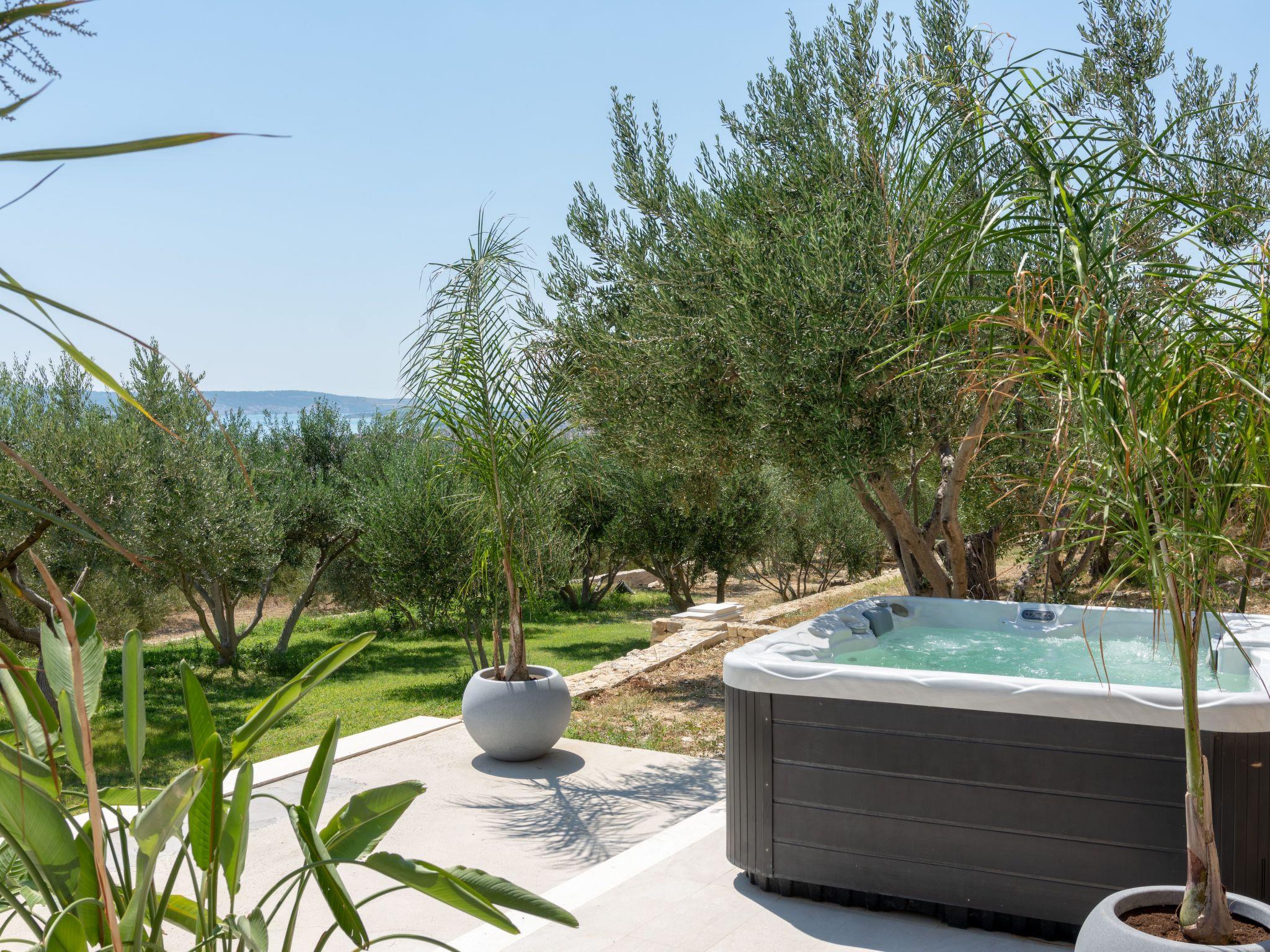 Step inside to find a well-appointed interior equipped with all the necessities and more to ensure a comfortable stay. Each of the four bedrooms is a haven of rest after a day of adventures, complemented by four modern bathrooms providing convenience and privacy for all guests. The presence of air conditioning throughout the villa guarantees a cool retreat from the warm Dalmatian sun. For those who love to cook, the kitchen is a delight, featuring an induction hob, dishwasher, coffee machine, and electric kettle, making meal preparation a breeze. Adding to the indoor luxuries, a washing machine and a hot tub are available for exclusive use, ensuring a stress-free holiday.