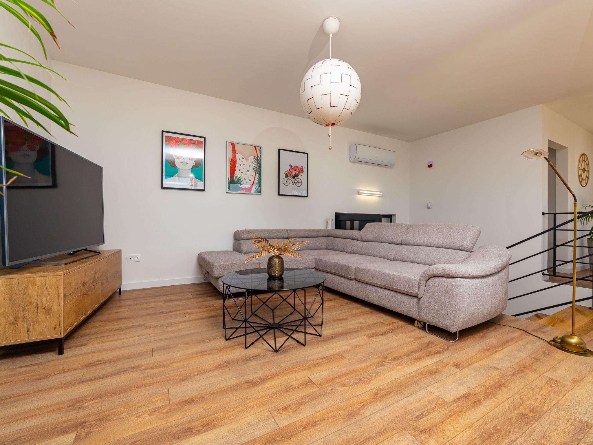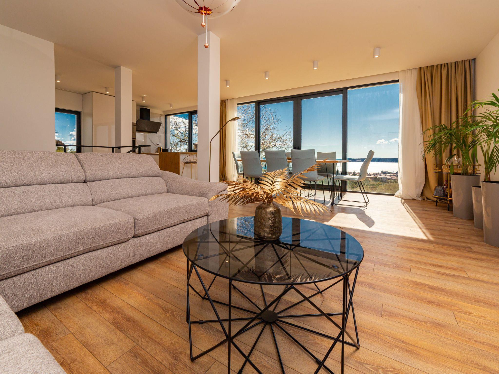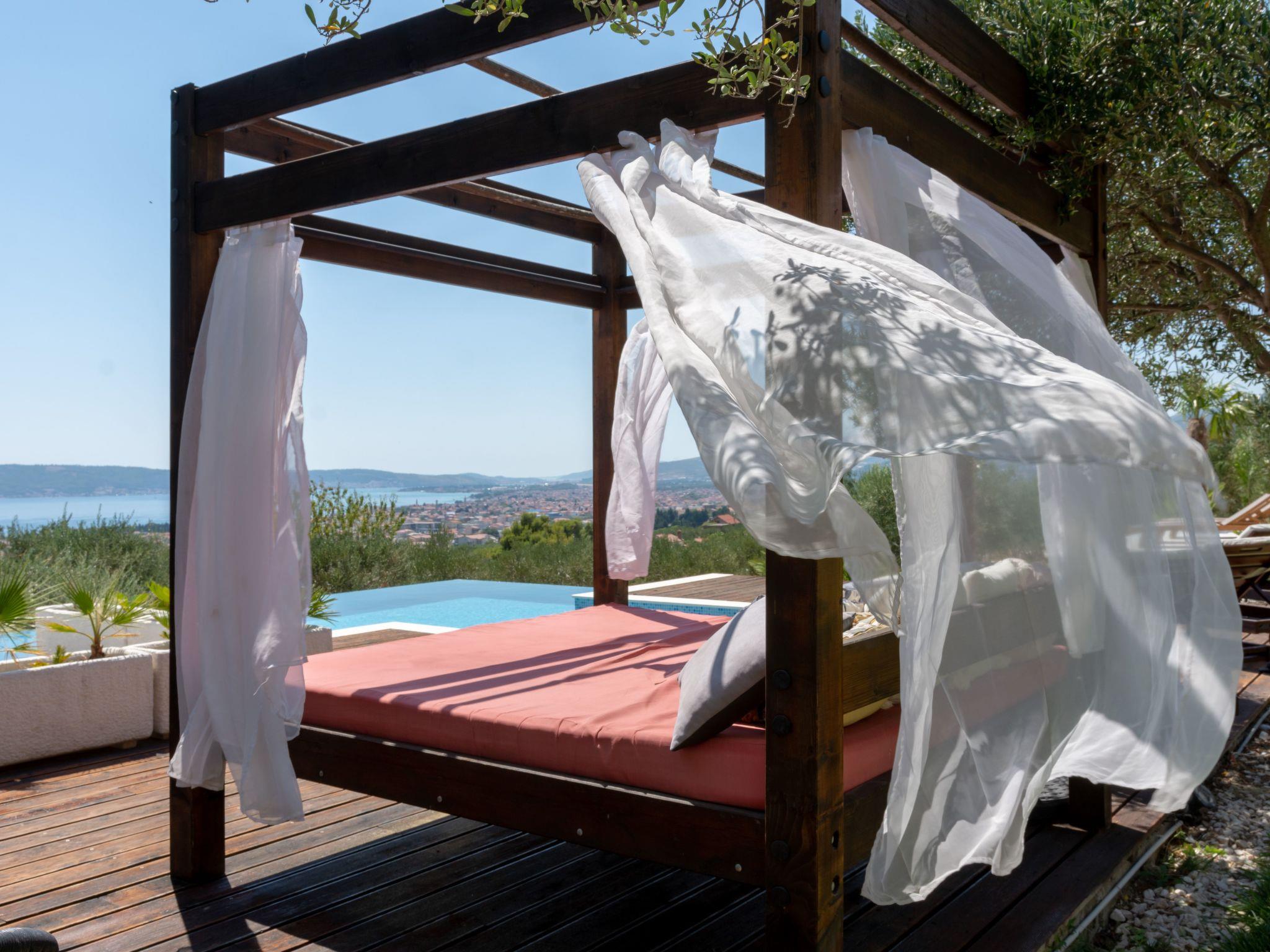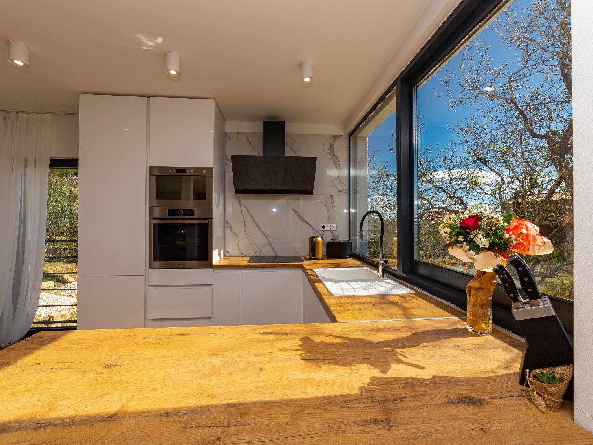Step inside to find a well-appointed interior equipped with all the necessities and more to ensure a comfortable stay. Each of the four bedrooms is a haven of rest after a day of adventures, complemented by four modern bathrooms providing convenience and privacy for all guests. The presence of air conditioning throughout the villa guarantees a cool retreat from the warm Dalmatian sun. For those who love to cook, the kitchen is a delight, featuring an induction hob, dishwasher, coffee machine, and electric kettle, making meal preparation a breeze. Adding to the indoor luxuries, a washing machine and a hot tub are available for exclusive use, ensuring a stress-free holiday.