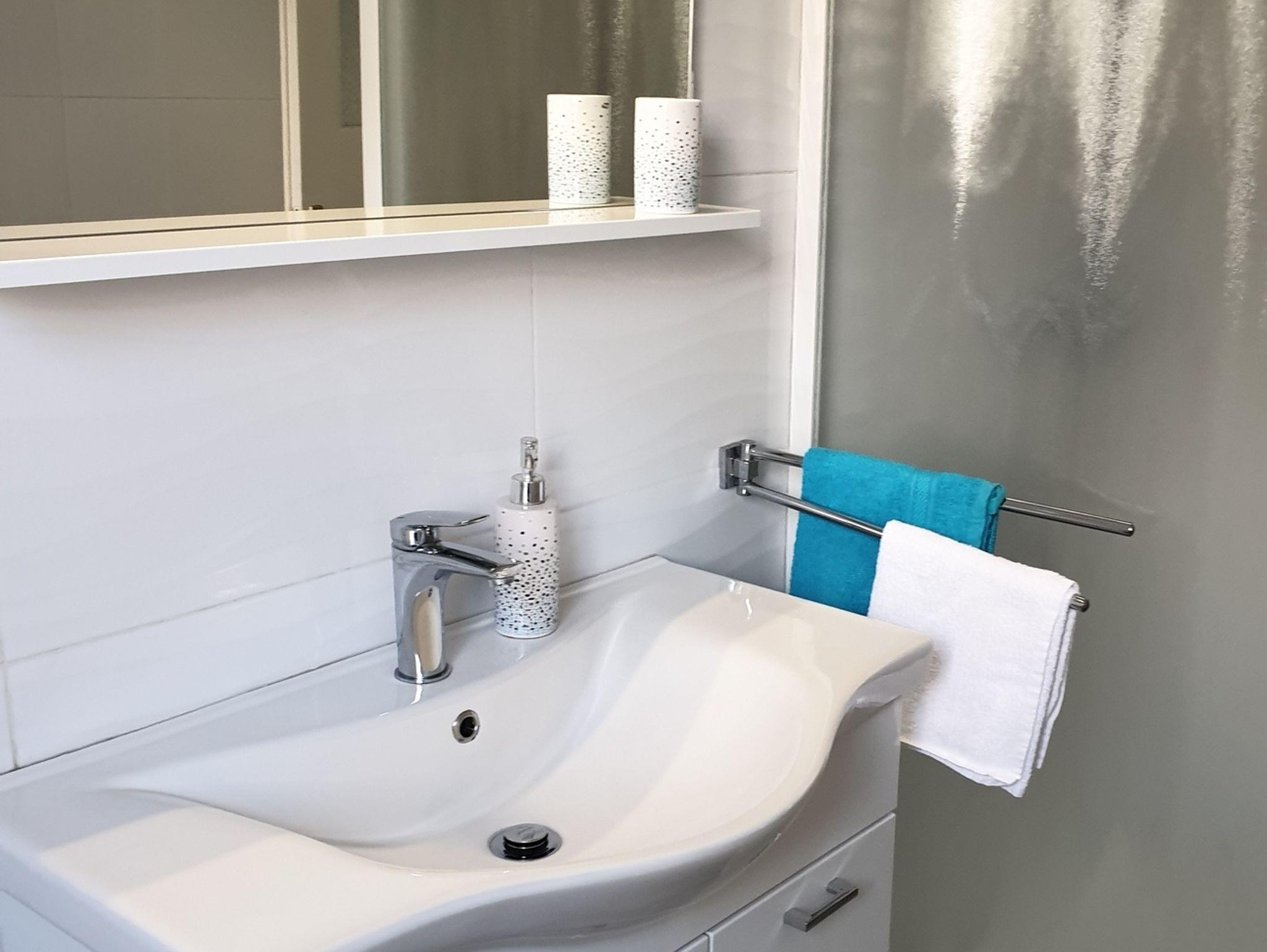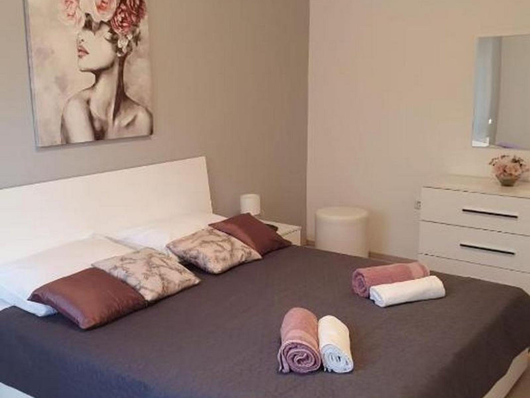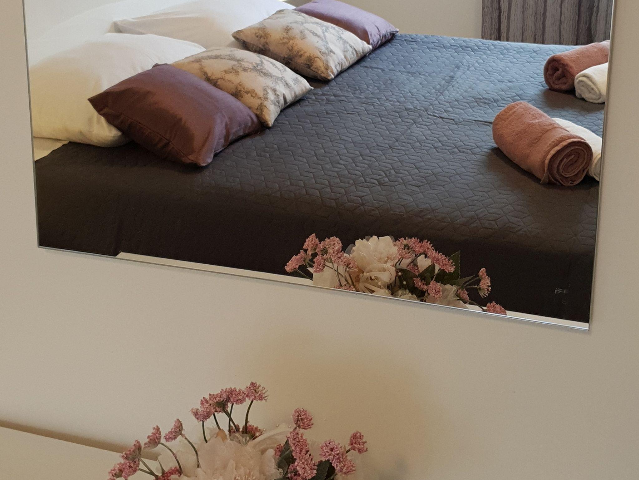 Ferienwohnung bietet Platz für 6 Gäste. Die Betten sind in Schlafzimmern, die es 2 gibt, und in Wohnzimmer, innerhalb einer Gesamtfläche von 58m2, angeordnet. Die Gäste haben eine eigene Terrasse zur Verfügung, auf der sie in warmen Sommernächten genießen können. Es ist erlaubt, Speisen auf dem Gemeinschafts-Grill vorzubereiten. IM PREIS INBEGRIFFEN: Kurtaxe, Endreinigung, Klimatisierung, Parkplatz, Internet, Fahrrad, Kinderbett, Bügeleisen, Bügelbrett, Föhn, tragbarer Grill, Sonnenschirm. Die Verfügbarkeit zusätzlicher Dienstleistungen in Ihrem reservierten Termin und die Preise derselben (falls nicht aufgeführt) müssen im Voraus überprüft werden. Zusätzliche Dienstleistungen die in der Zahlungsaufforderung nicht aufgeführt sind werden direkt beim Vermieter bezahlt, angenommen der Gast nutzt auch diese. Ermäßigung auf den Grundpreis: Gratistag 21=19 (bei einem Aufenthalt von 21 Tagen oder mehr erhalten Sie 2 Gratistage für den Aufenthalt bis 31.12.26).