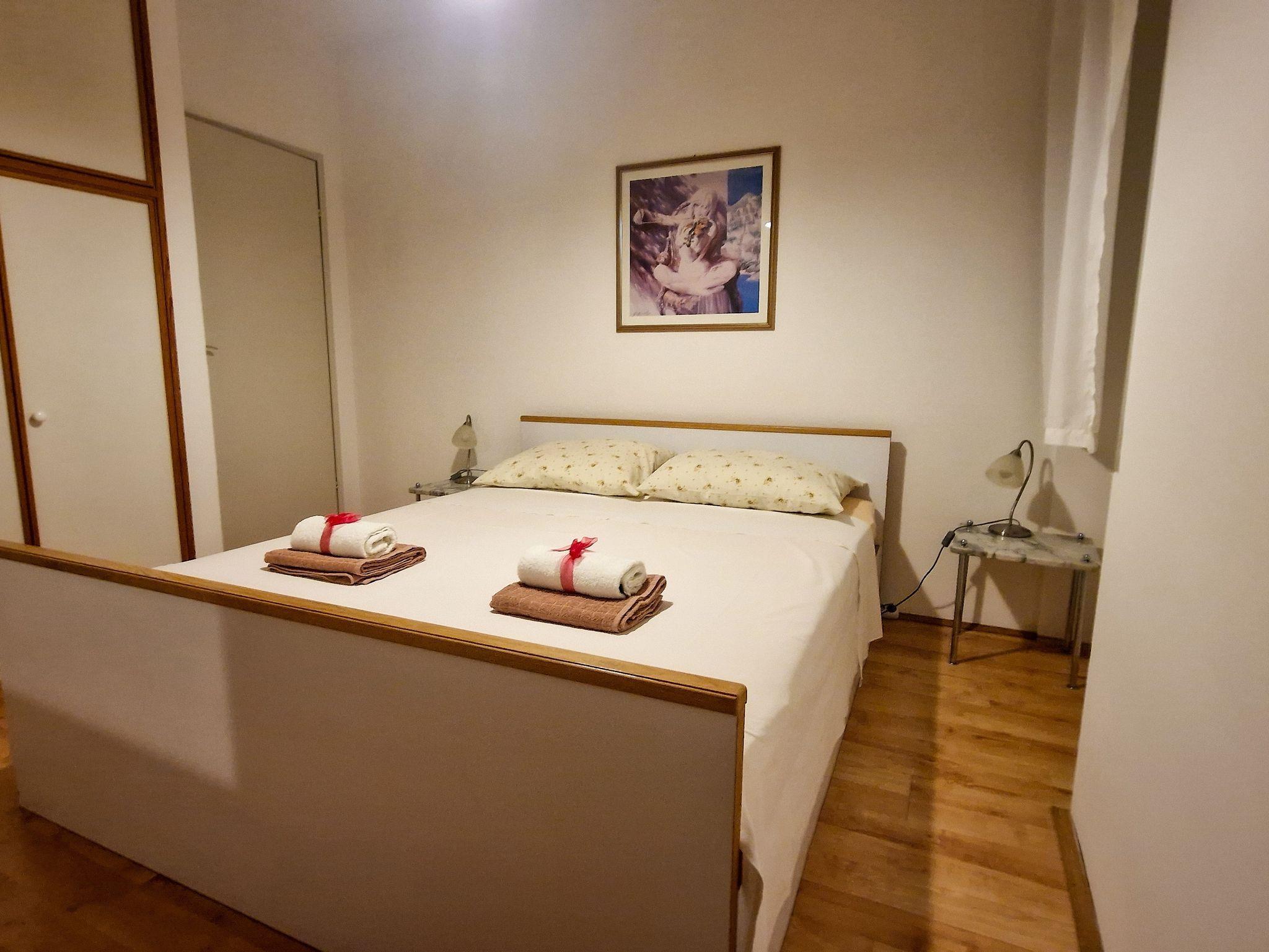 Ferienwohnung bietet Platz für 6 Gäste. Die Betten sind in Schlafzimmern, die es 2 gibt, und in Wohnzimmer, innerhalb einer Gesamtfläche von 76m2, angeordnet. Die Gäste haben eine eigene Terrasse zur Verfügung, auf der sie in warmen Sommernächten genießen können. Das Apartment bietet Meerblick. Für vollen Genuss und Entspannung gibt es einen privaten Grill für Gäste dieser Unterkunft. In der Unterkunftseinheit besteht die Möglichkeit des Mitbringens von Haustieren gegen Aufpreis. IM PREIS INBEGRIFFEN: Kurtaxe, Endreinigung, Klimatisierung, Internet, Kinderbett, Bügeleisen, Bügelbrett, Föhn. UNVERBINDLICHE ZUSÄTZLICHE KOSTEN: Haustiere (15,00 € pro Nacht). Die Verfügbarkeit zusätzlicher Dienstleistungen in Ihrem reservierten Termin und die Preise derselben (falls nicht aufgeführt) müssen im Voraus überprüft werden. Zusätzliche Dienstleistungen die in der Zahlungsaufforderung nicht aufgeführt sind werden direkt beim Vermieter bezahlt, angenommen der Gast nutzt auch diese.