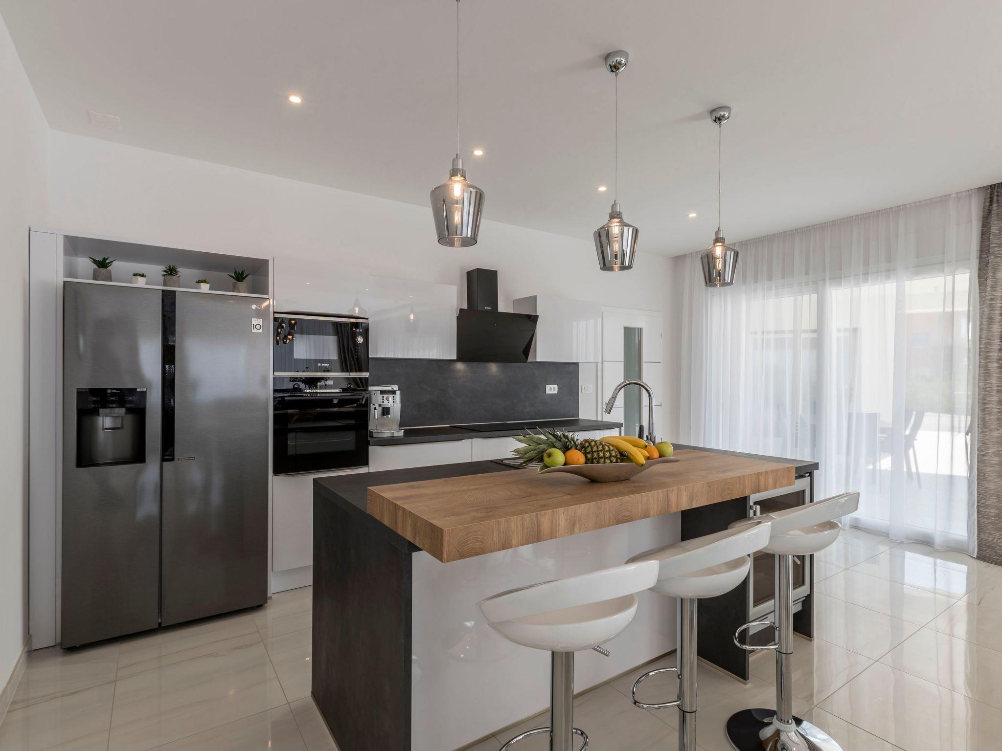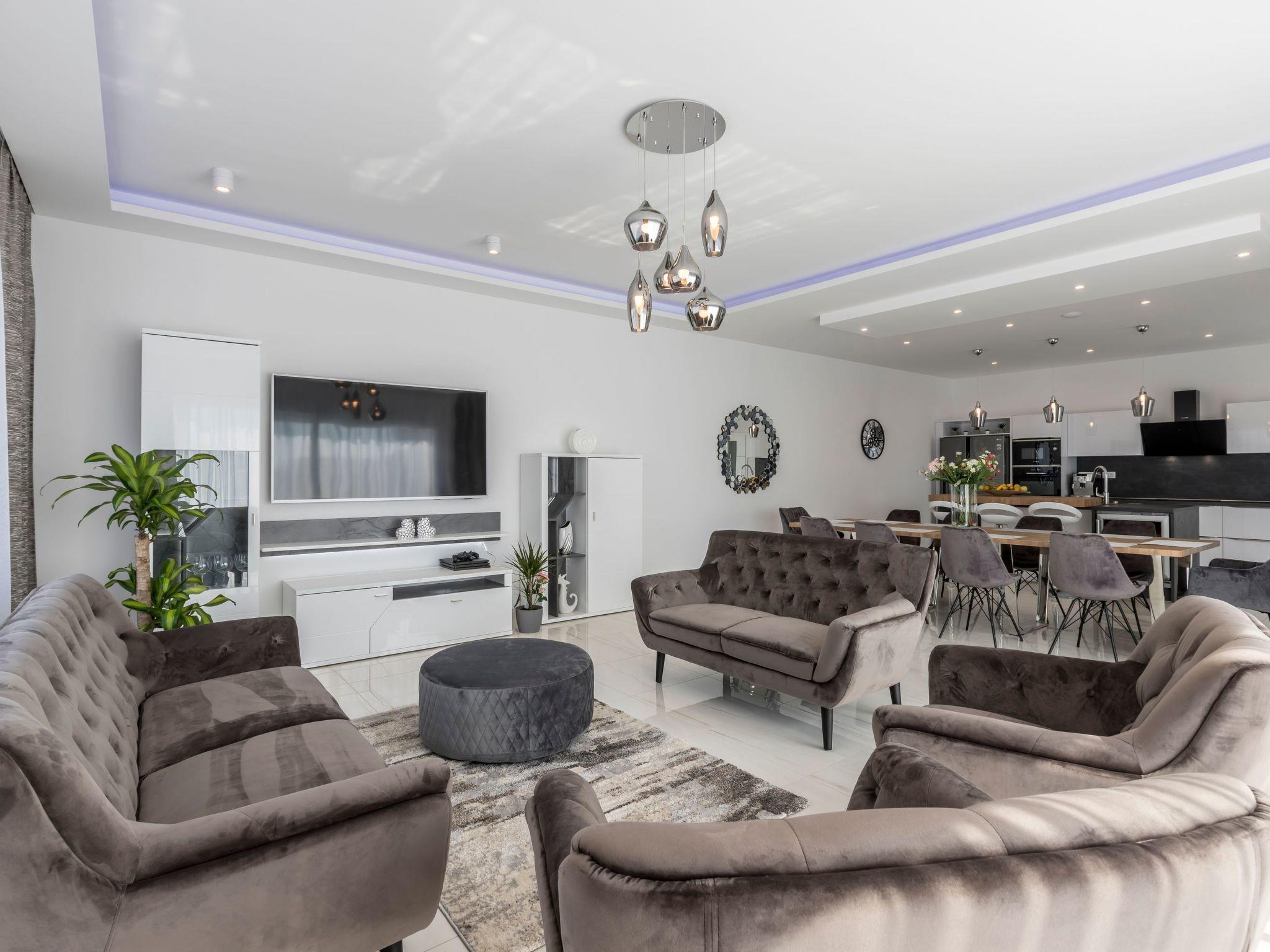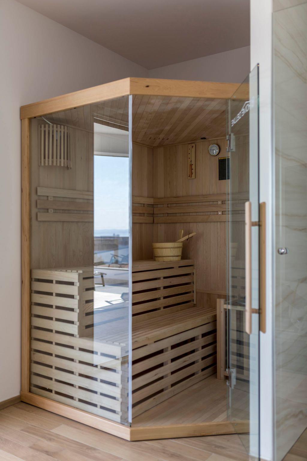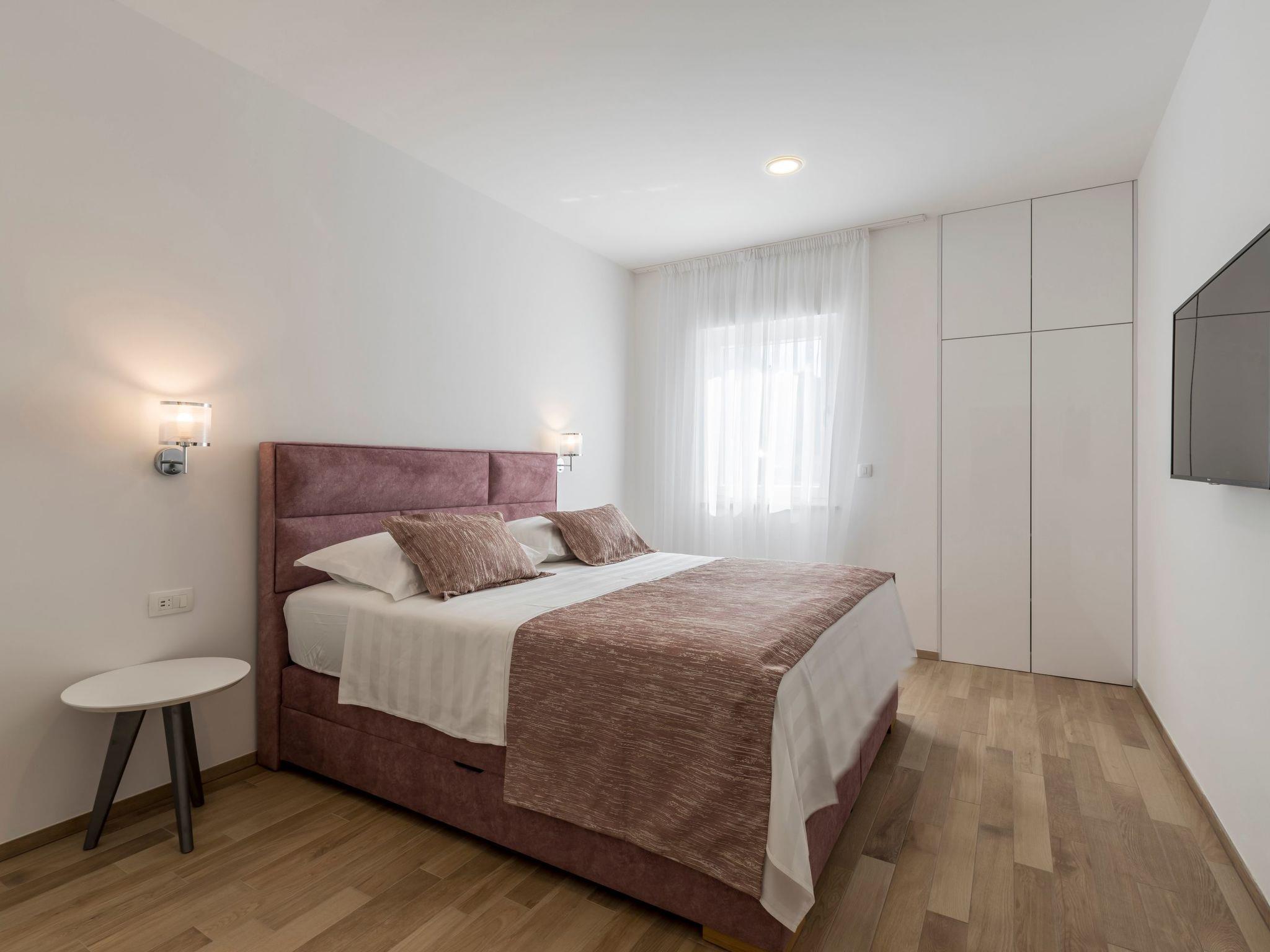 Inside the villa, a world of comfort and luxury awaits you, spread over three floors. The ground floor comprises a heated infinity pool with a spacious terrace and a lovingly landscaped garden that invites you to linger. This area is complemented by an entertainment room equipped with billiards and darts. The modern, fully equipped kitchen as well as a spacious living room with breathtaking views of the Adriatic Sea and a bedroom with a king-size bed and en-suite bathroom leave nothing to be desired.