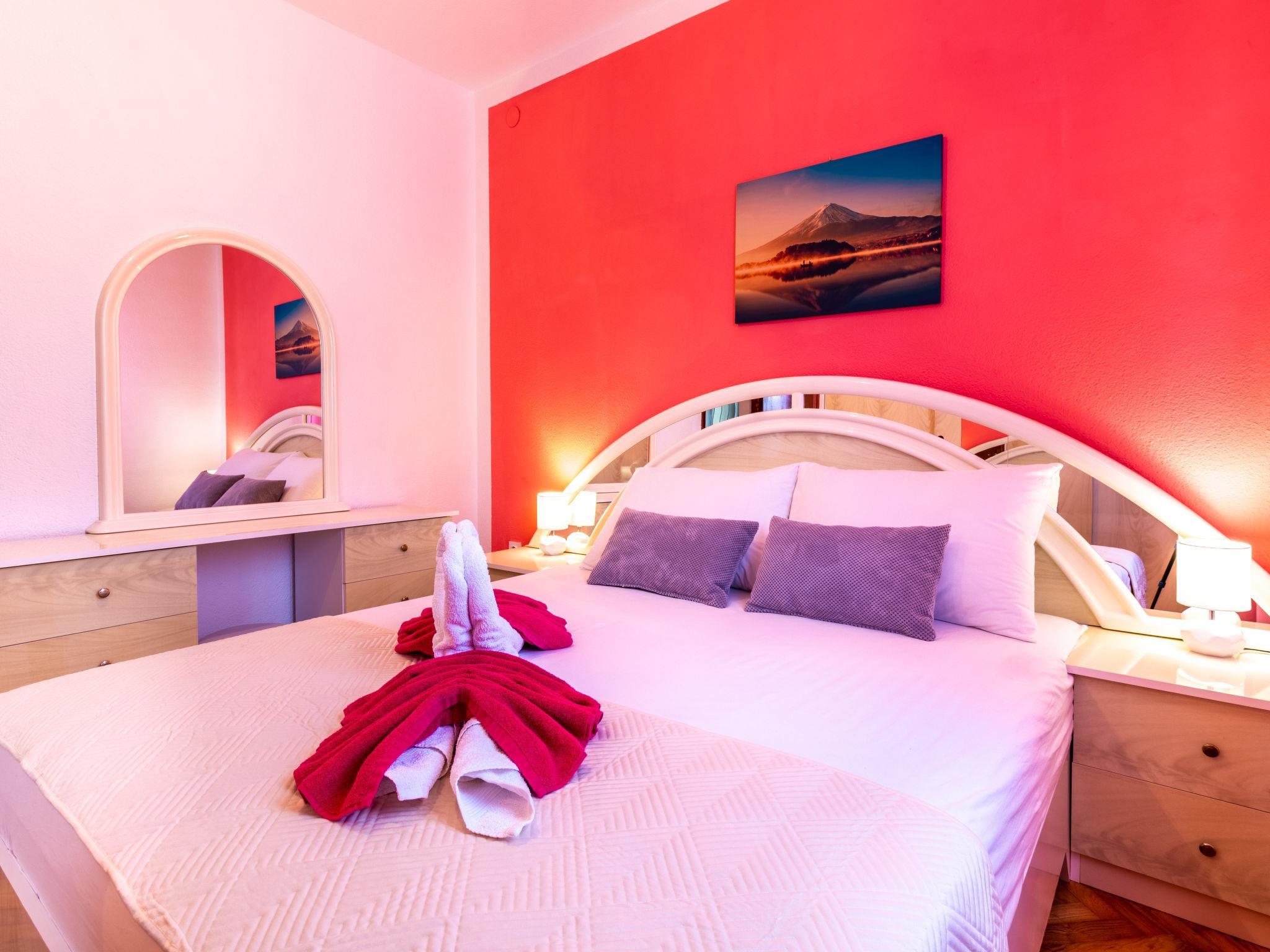 3-family house "Josipa". 2.8 km from the centre of Kaštel Novi, in a quiet, sunny position, 2.5 km from the sea. Private: property 600 m2 (fenced), swimming pool kidney shaped (7 x 3 m, depth 150 cm, seasonal availability: 01.Jun. - 01.Oct.) with internal staircase. Outdoor shower, terrace (30 m2), garden furniture, barbecue, children's playground (swing). In the house: internet access, table football, trampoline, washing machine. Parking (for 3 cars) at the house on the premises. Shop 250 m, restaurant 1.5 km, bus stop 1.1 km, pebble beach 2.5 km. Groups of teenagers on request only. Neighbourhood highly sensitive to noise. Quietness and good behaviour expected.