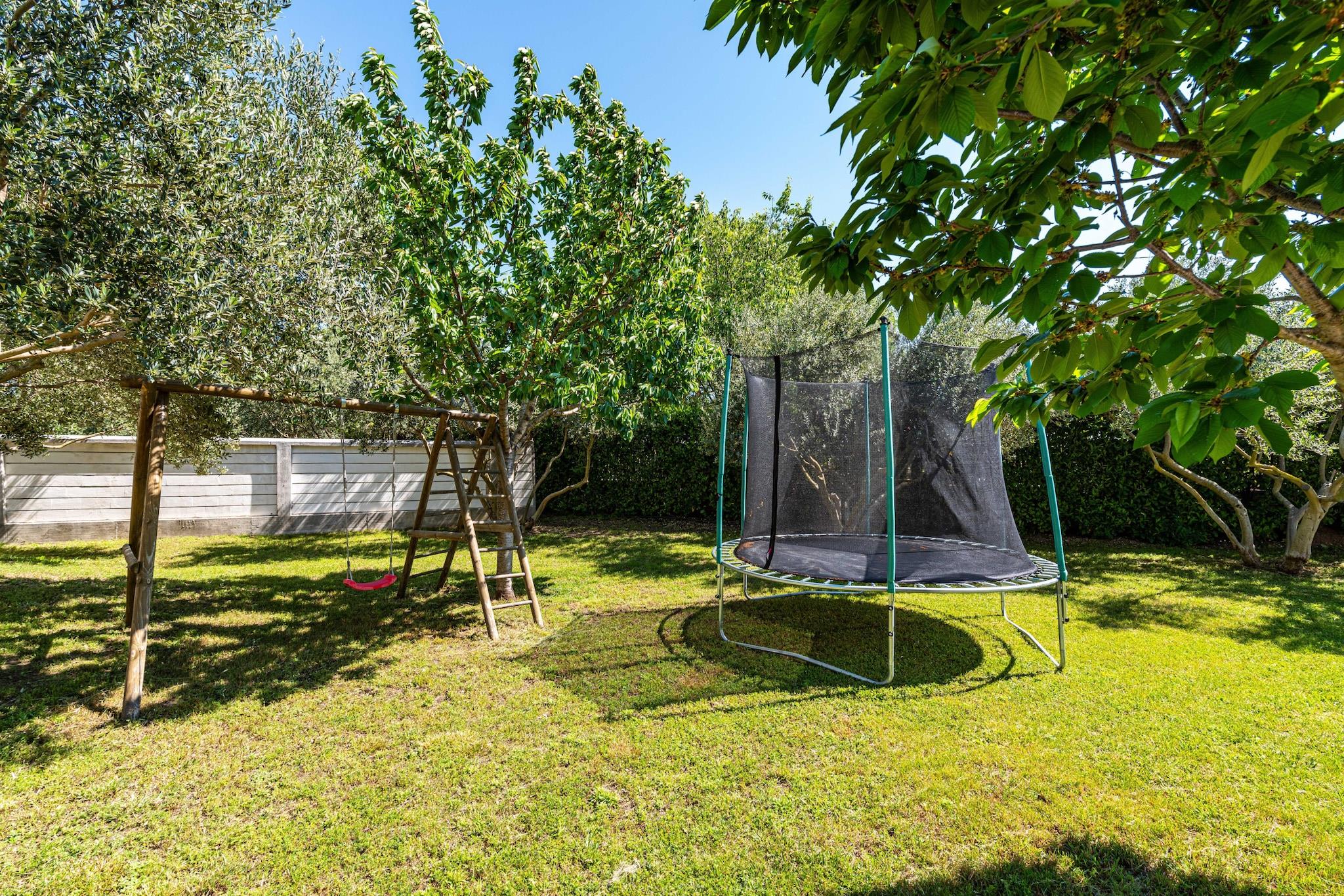 Open kitchen(hob(gas, electric), electric kettle, toaster, coffee machine, oven, microwave, dishwasher, fridge, freezer, dishes and cutlery), Living/diningroom(TV(satellite), dining table, seating area), bedroom(single bed, single bed, double bed), bedroom(single sofa bed, double bed), bathroom(shower, washbasin, toilet), bathroom(shower, washbasin, toilet), toilet(toilet), Garden Furniture , dining table, grill, washing machine, air conditioning, terrace, garden, sun loungers, BBQ, parking, swimming pool(private), high chair, ironing board, iron, hairdryer, outdoor fireplace, crib(free), Essentials, Wine glasses