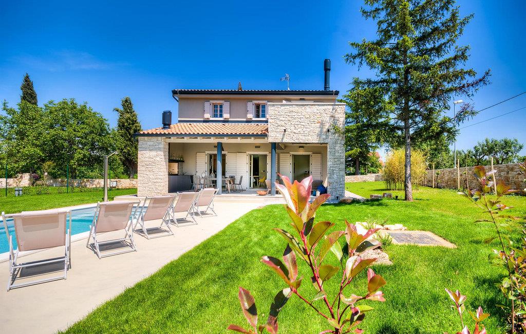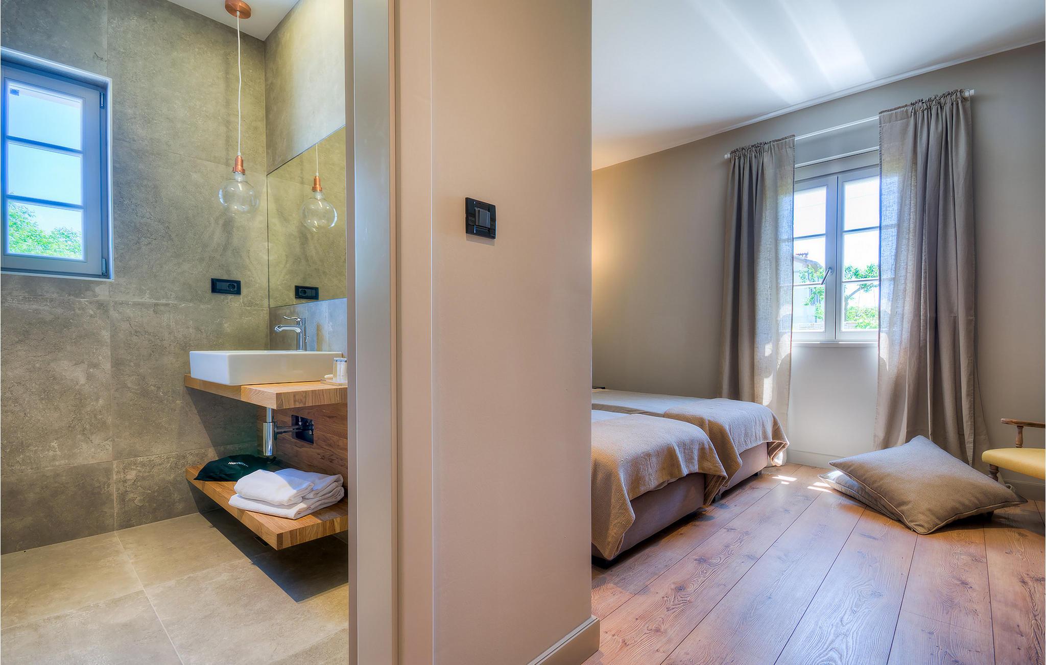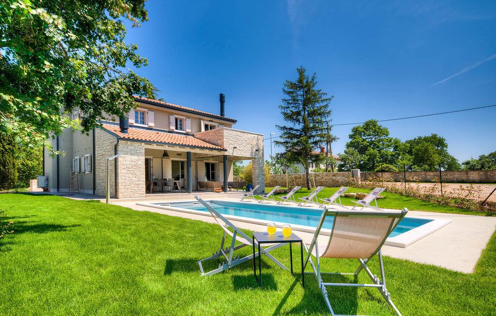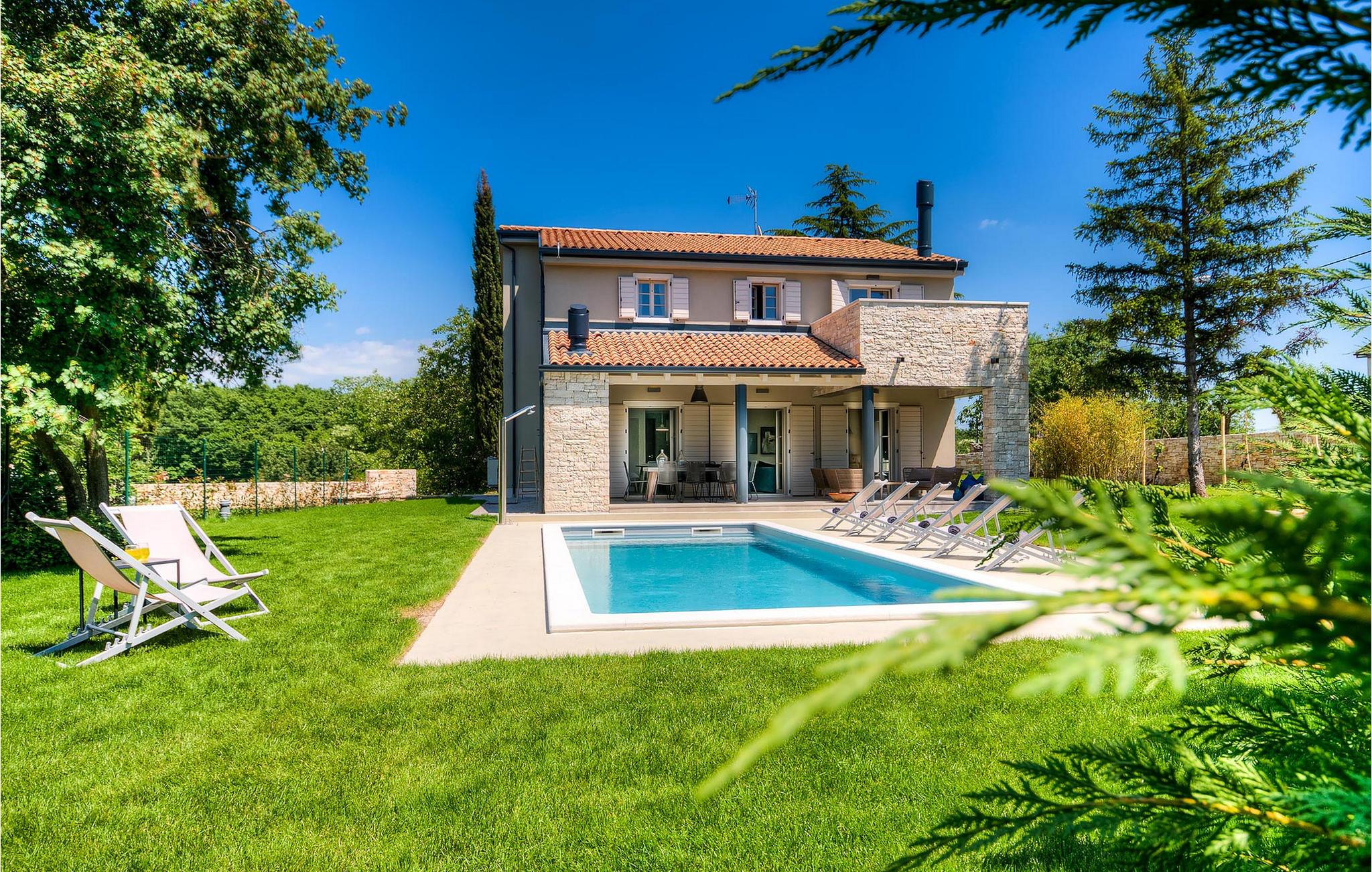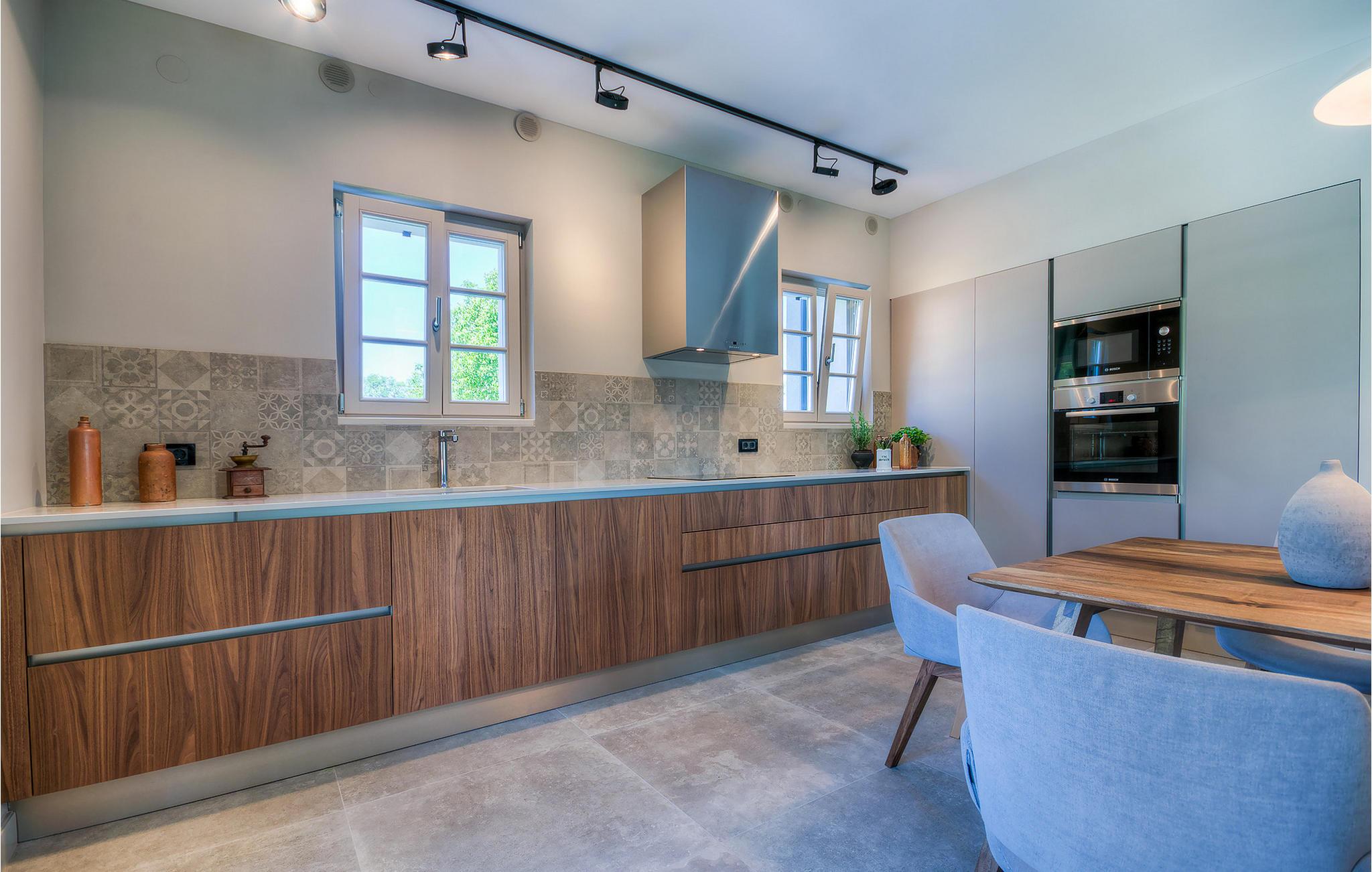 Falls Sie ein besonderes Erlebnis suchen, tief in die Tradition und Landschaft Istriens eingebettet, mit Komfort und Stil, ist die herrliche Villa Tena für Sie genau das Richtige. Umgeben von einem großen gepflegten Rasengarten mit wunderschönen Zypressen und dem einladenden Pool mit für faule Sonnenbäder idealer Terrasse, wird Sie dieses traumhafte Anwesen ganz bestimmt faszinieren. Natursteinwände, hübsche Holzläden und die gemütliche Veranda mit dem eingebauten Grill, sowie al fresco Ess- und Loungebereich verschaffen einen reizvollen ersten Eindruck, während der Innenbereich den hohen Erwartungen mehr als gerecht wird. Geschmackvoll gestaltet mit einer Mischung aus modernen und Vintage-Möbeln, attraktiver Beleuchtung und großen Fenstertüren, die die Zimmer besonders hell und luftig halten, versorgt das Haus eine warme, entspannende Atmosphäre, die sowohl traditionellen als auch modernen Geschmäckern zuspricht. Im Erdgeschoss dominiert ein großzügiger, offener Raum verteilt in Wohn-, Ess- und Kochbereiche mit einem eleganten Kamin und bequemen Sofas, wo Sie in gemütlicher Atmosphäre die Eindrücke des Tages austauschen können. Eines der vier stilvoll eingerichteten Schlafzimmer befindet sich im Erdgeschoss, während die anderen drei über die obere Etage verteilt sind, jedes mit Flachbildfernseher, sowie einem eigenen wunderschön eingerichteten Bad. Der erste Stock verfügt noch über eine hübsche Terrasse, von wo aus Sie die herrliche Aussicht über die umgebende Landschaft genießen können. Villa Tena ist nicht nur als perfekte Basis zu empfehlen, um unbestreitbare Reize Istriens zu entdecken, sondern auch für Familien, die in vollem Luxus Spaß haben und richtig entspannen wollen.Gerade zwischen den bezaubernden kleinen mittelalterlichen Ortschaften von Žminj, Svetvincenat und Kanfanar gelegen, könnte diese wunderschöne Villa nicht besser gestaltet werden für einen Urlaub, der faule Tage von dolce far niente mit Besichtigungstouren in einer der schönsten Gebieten Istriens kombiniert. Die malerischen, mittelalterlichen Hügelstädtchen, traditionelle Dörfer, wo Zeit stillgestanden ist, sowie Landschaften der einzigartigen Schönheit sind ideal für Aussichtsfahrten, Radtouren und Wandern. Hervorragende traditionelle Küche und erstklassige Weine für welche diese Region weltbekannt ist, fügen die letzten Zutaten zu einem unvergesslichen Urlaub hinzu. Wo auch immer Sie gelangen, werden Ihnen die Einheimischen einen wunderbaren, herzlichen Empfang in diese faszinierende Region bieten. Sie können auch Lebensmittel direkt von den lokalen Herstellern kaufen. Und wenn Sie in der Stimmung für etwas Anderes sind, sind die kristallklare Adria mit ihren wunderschönen Stränden, sowie die besuchten touristischen Hotspots nur eine kurze Autofahrt entfernt.