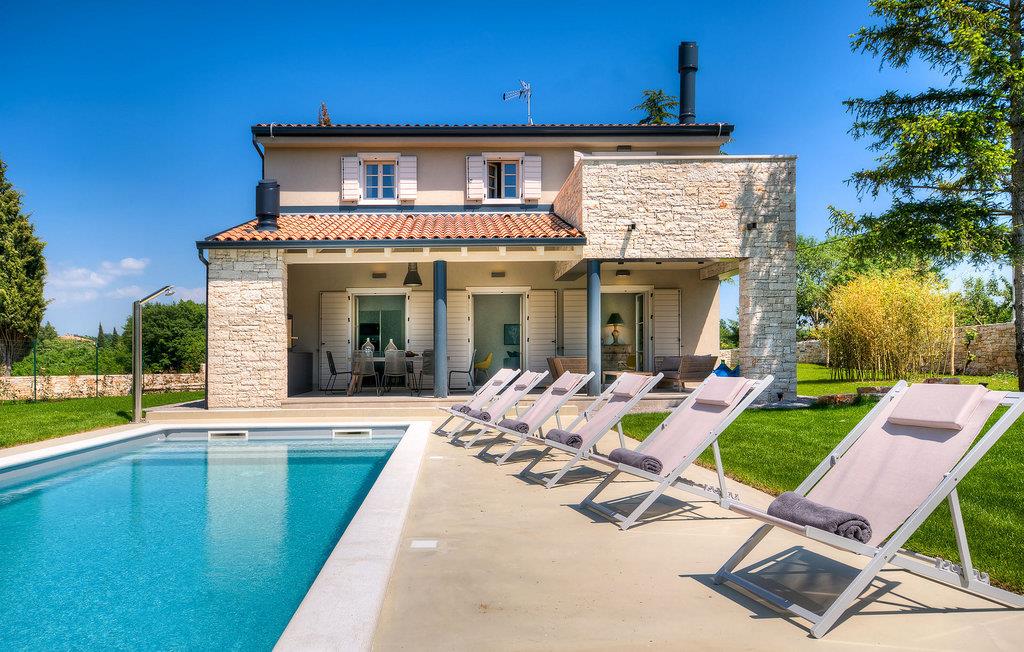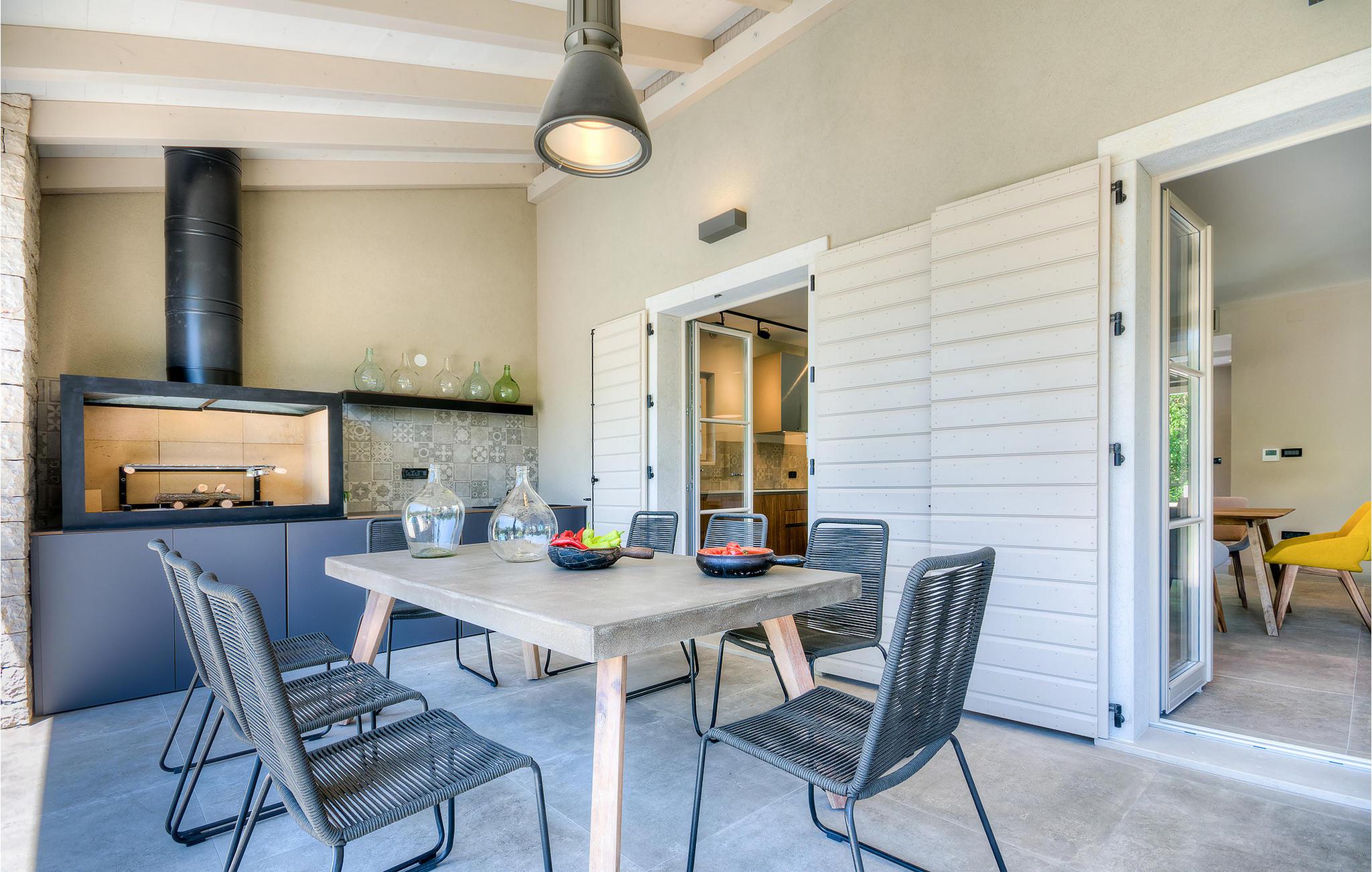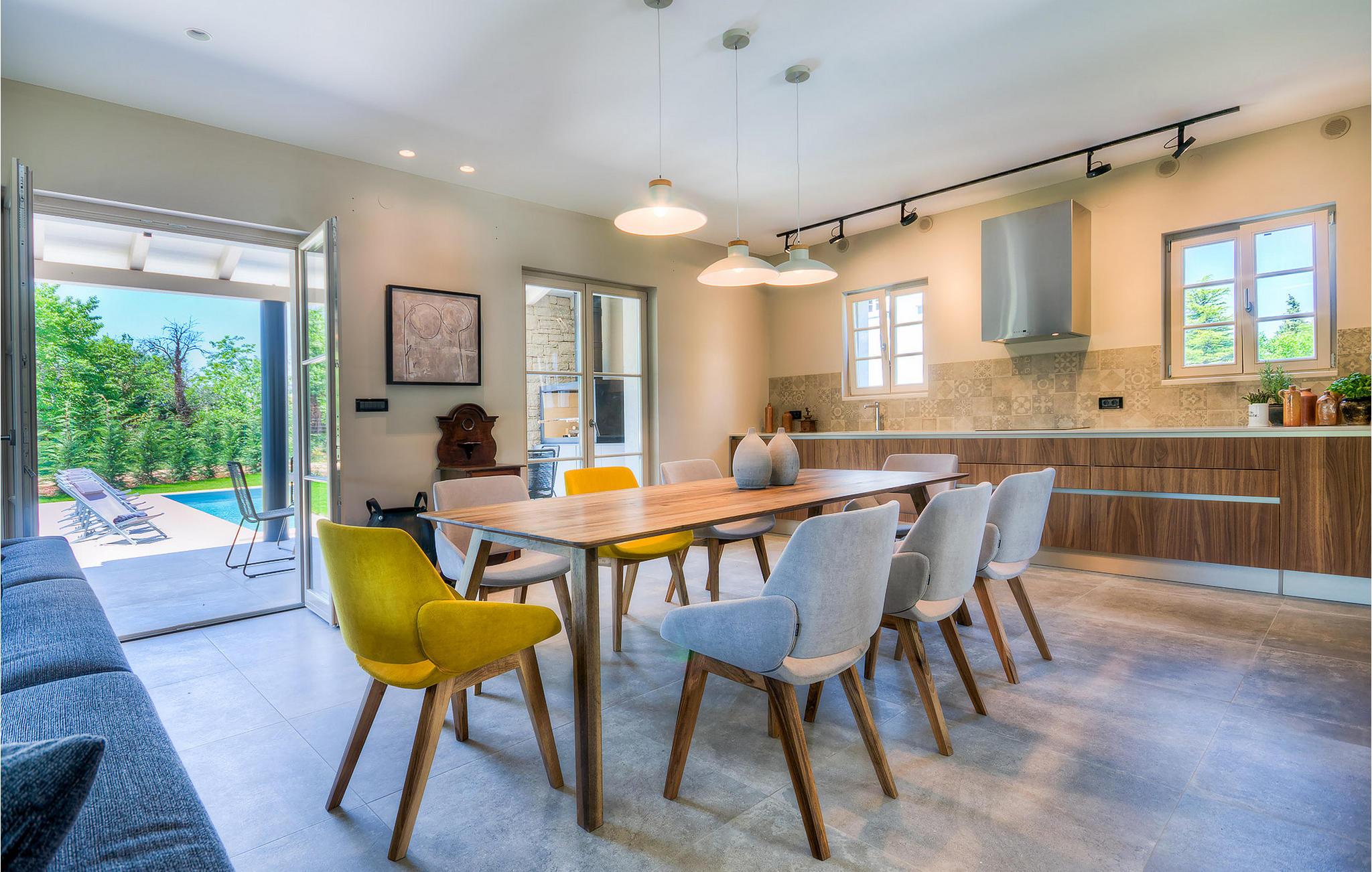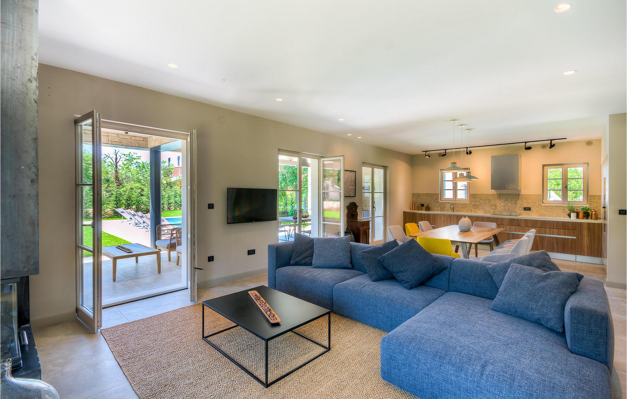 Falls Sie ein besonderes Erlebnis suchen, tief in die Tradition und Landschaft Istriens eingebettet, mit Komfort und Stil, ist die herrliche Villa Tena für Sie genau das Richtige. Umgeben von einem großen gepflegten Rasengarten mit wunderschönen Zypressen und dem einladenden Pool mit für faule Sonnenbäder idealer Terrasse, wird Sie dieses traumhafte Anwesen ganz bestimmt faszinieren. Natursteinwände, hübsche Holzläden und die gemütliche Veranda mit dem eingebauten Grill, sowie al fresco Ess- und Loungebereich verschaffen einen reizvollen ersten Eindruck, während der Innenbereich den hohen Erwartungen mehr als gerecht wird. Geschmackvoll gestaltet mit einer Mischung aus modernen und Vintage-Möbeln, attraktiver Beleuchtung und großen Fenstertüren, die die Zimmer besonders hell und luftig halten, versorgt das Haus eine warme, entspannende Atmosphäre, die sowohl traditionellen als auch modernen Geschmäckern zuspricht. Im Erdgeschoss dominiert ein großzügiger, offener Raum verteilt in Wohn-, Ess- und Kochbereiche mit einem eleganten Kamin und bequemen Sofas, wo Sie in gemütlicher Atmosphäre die Eindrücke des Tages austauschen können. Eines der vier stilvoll eingerichteten Schlafzimmer befindet sich im Erdgeschoss, während die anderen drei über die obere Etage verteilt sind, jedes mit Flachbildfernseher, sowie einem eigenen wunderschön eingerichteten Bad. Der erste Stock verfügt noch über eine hübsche Terrasse, von wo aus Sie die herrliche Aussicht über die umgebende Landschaft genießen können. Villa Tena ist nicht nur als perfekte Basis zu empfehlen, um unbestreitbare Reize Istriens zu entdecken, sondern auch für Familien, die in vollem Luxus Spaß haben und richtig entspannen wollen.Gerade zwischen den bezaubernden kleinen mittelalterlichen Ortschaften von Žminj, Svetvincenat und Kanfanar gelegen, könnte diese wunderschöne Villa nicht besser gestaltet werden für einen Urlaub, der faule Tage von dolce far niente mit Besichtigungstouren in einer der schönsten Gebieten Istriens kombiniert. Die malerischen, mittelalterlichen Hügelstädtchen, traditionelle Dörfer, wo Zeit stillgestanden ist, sowie Landschaften der einzigartigen Schönheit sind ideal für Aussichtsfahrten, Radtouren und Wandern. Hervorragende traditionelle Küche und erstklassige Weine für welche diese Region weltbekannt ist, fügen die letzten Zutaten zu einem unvergesslichen Urlaub hinzu. Wo auch immer Sie gelangen, werden Ihnen die Einheimischen einen wunderbaren, herzlichen Empfang in diese faszinierende Region bieten. Sie können auch Lebensmittel direkt von den lokalen Herstellern kaufen. Und wenn Sie in der Stimmung für etwas Anderes sind, sind die kristallklare Adria mit ihren wunderschönen Stränden, sowie die besuchten touristischen Hotspots nur eine kurze Autofahrt entfernt.