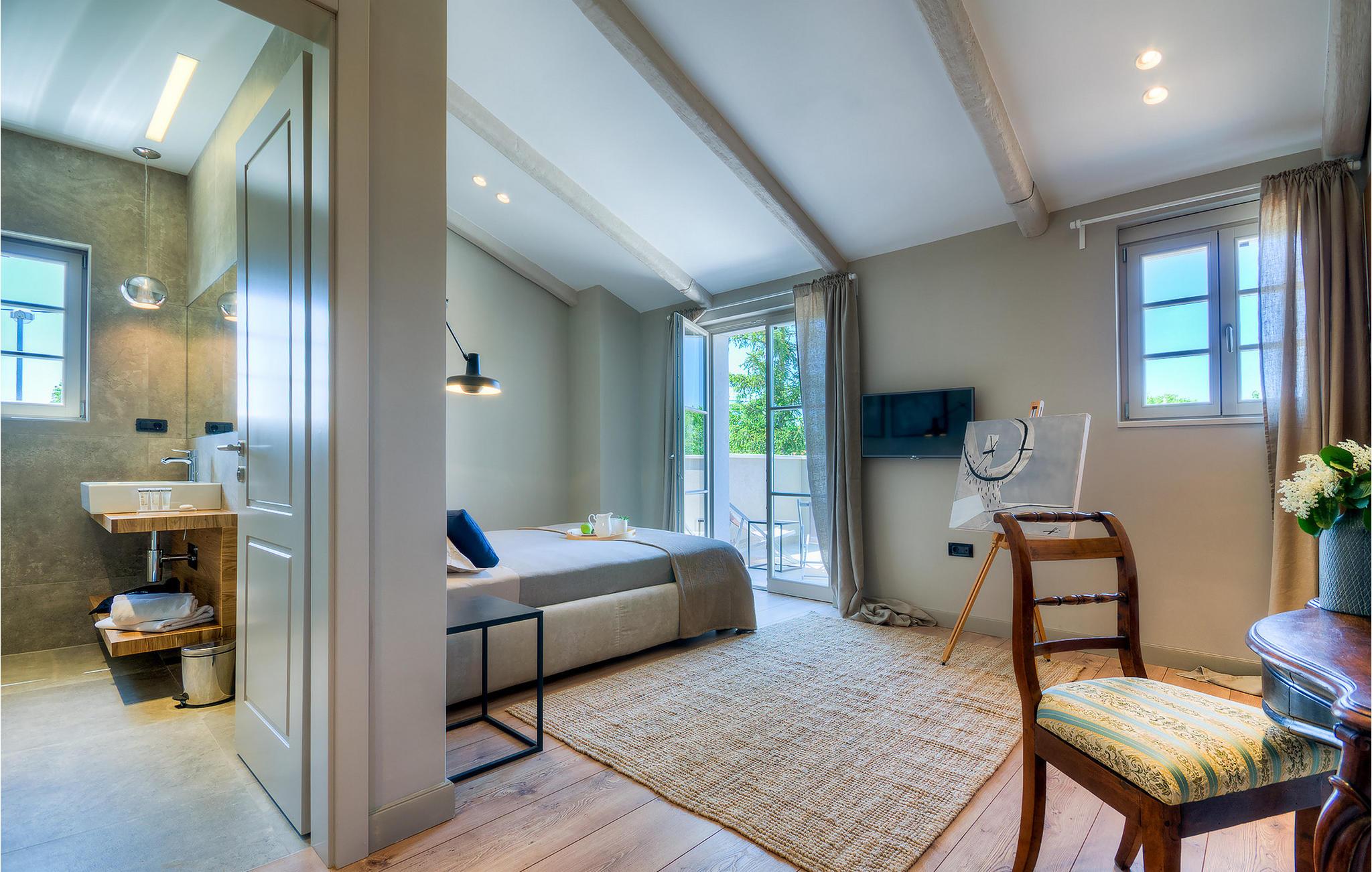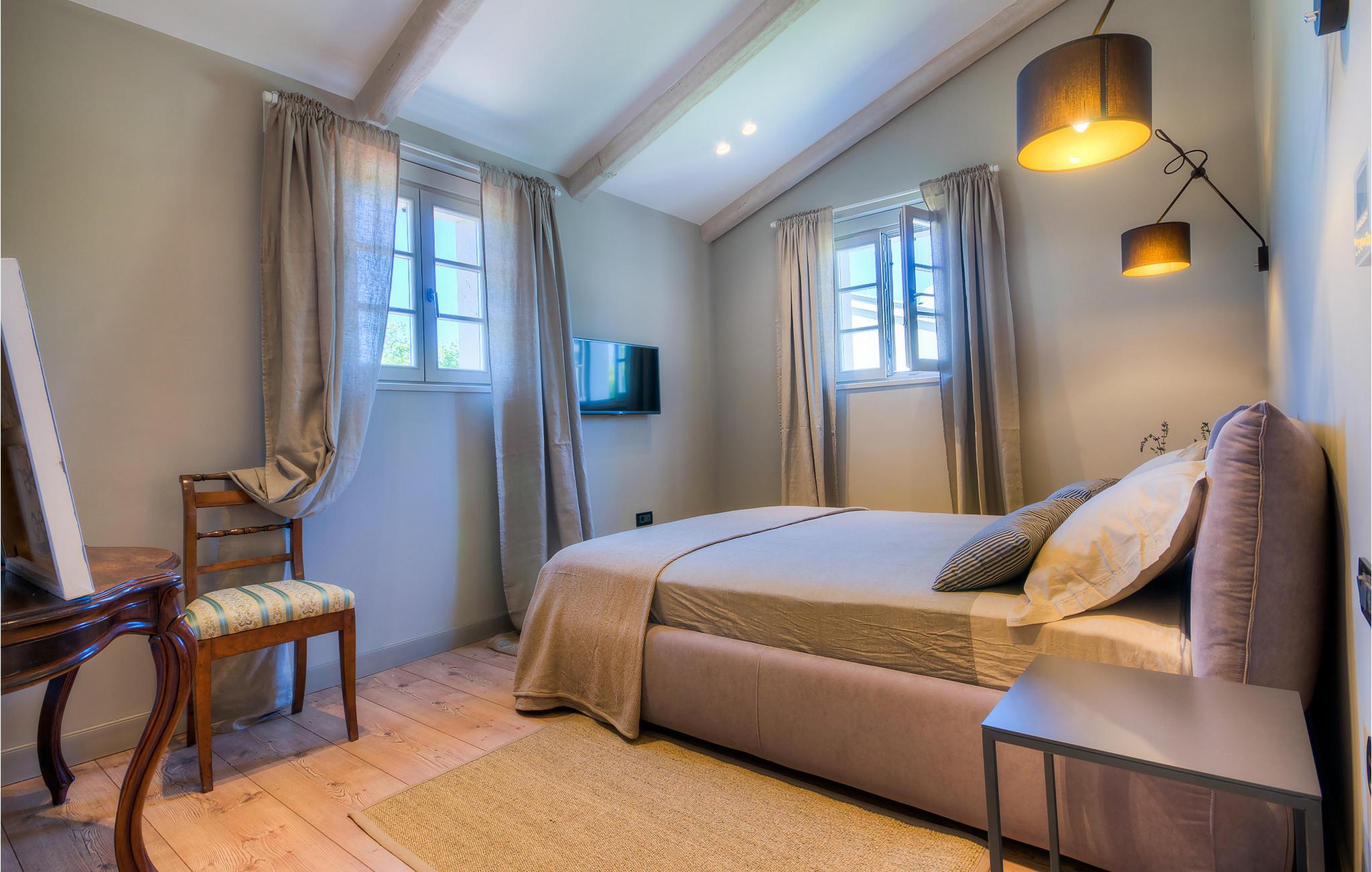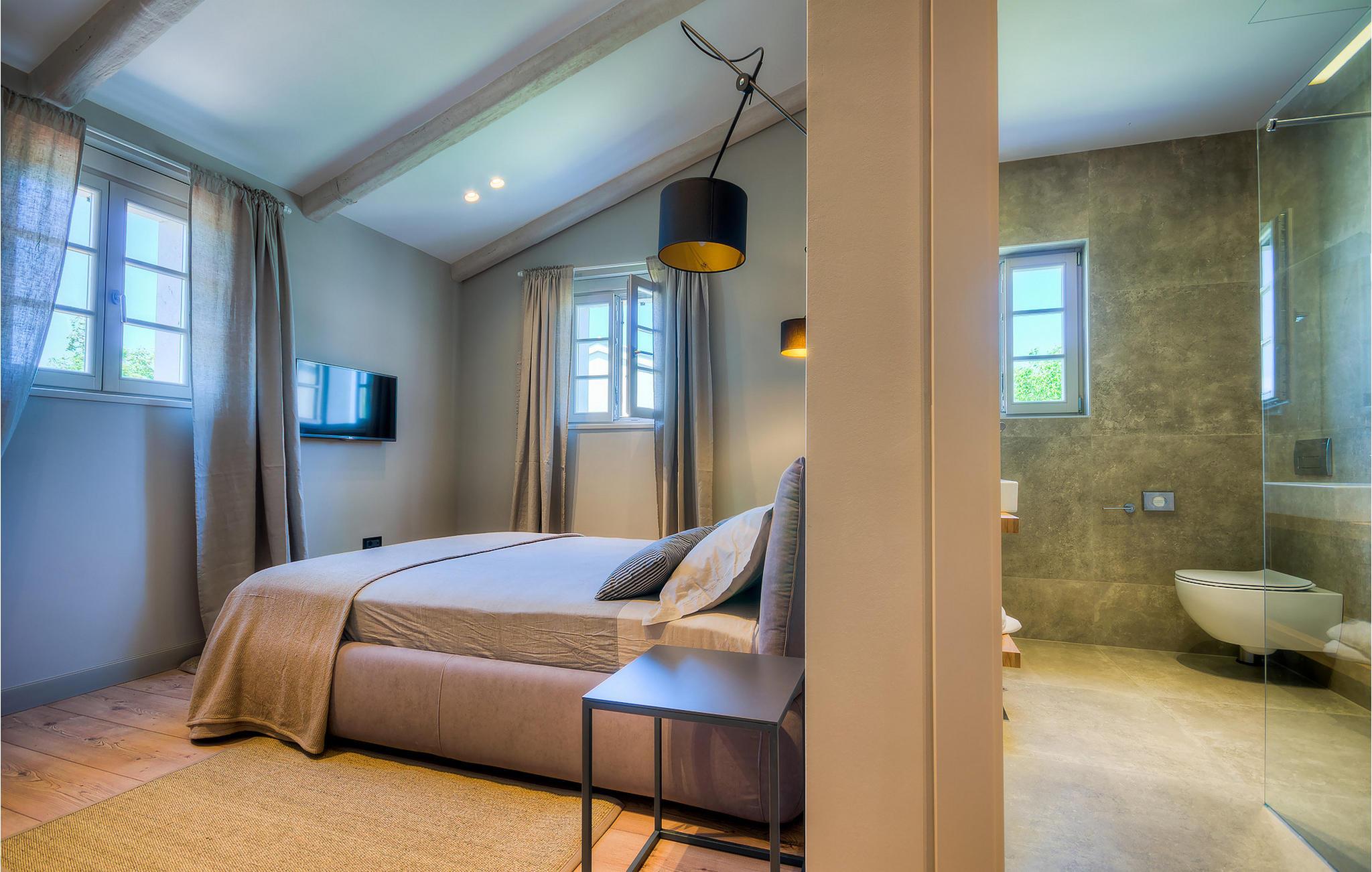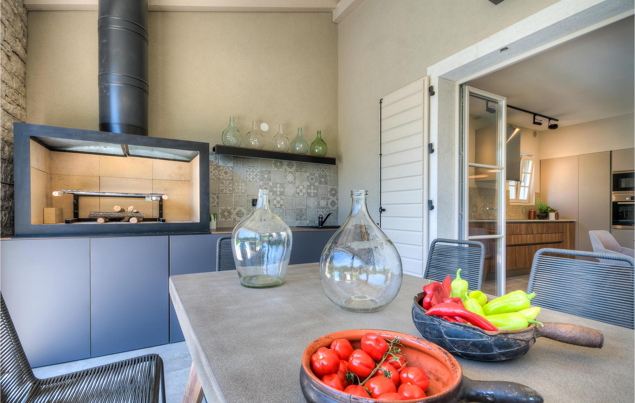 Falls Sie ein besonderes Erlebnis suchen, tief in die Tradition und Landschaft Istriens eingebettet, mit Komfort und Stil, ist die herrliche Villa Tena für Sie genau das Richtige. Umgeben von einem großen gepflegten Rasengarten mit wunderschönen Zypressen und dem einladenden Pool mit für faule Sonnenbäder idealer Terrasse, wird Sie dieses traumhafte Anwesen ganz bestimmt faszinieren. Natursteinwände, hübsche Holzläden und die gemütliche Veranda mit dem eingebauten Grill, sowie al fresco Ess- und Loungebereich verschaffen einen reizvollen ersten Eindruck, während der Innenbereich den hohen Erwartungen mehr als gerecht wird. Geschmackvoll gestaltet mit einer Mischung aus modernen und Vintage-Möbeln, attraktiver Beleuchtung und großen Fenstertüren, die die Zimmer besonders hell und luftig halten, versorgt das Haus eine warme, entspannende Atmosphäre, die sowohl traditionellen als auch modernen Geschmäckern zuspricht. Im Erdgeschoss dominiert ein großzügiger, offener Raum verteilt in Wohn-, Ess- und Kochbereiche mit einem eleganten Kamin und bequemen Sofas, wo Sie in gemütlicher Atmosphäre die Eindrücke des Tages austauschen können. Eines der vier stilvoll eingerichteten Schlafzimmer befindet sich im Erdgeschoss, während die anderen drei über die obere Etage verteilt sind, jedes mit Flachbildfernseher, sowie einem eigenen wunderschön eingerichteten Bad. Der erste Stock verfügt noch über eine hübsche Terrasse, von wo aus Sie die herrliche Aussicht über die umgebende Landschaft genießen können. Villa Tena ist nicht nur als perfekte Basis zu empfehlen, um unbestreitbare Reize Istriens zu entdecken, sondern auch für Familien, die in vollem Luxus Spaß haben und richtig entspannen wollen.Gerade zwischen den bezaubernden kleinen mittelalterlichen Ortschaften von Žminj, Svetvincenat und Kanfanar gelegen, könnte diese wunderschöne Villa nicht besser gestaltet werden für einen Urlaub, der faule Tage von dolce far niente mit Besichtigungstouren in einer der schönsten Gebieten Istriens kombiniert. Die malerischen, mittelalterlichen Hügelstädtchen, traditionelle Dörfer, wo Zeit stillgestanden ist, sowie Landschaften der einzigartigen Schönheit sind ideal für Aussichtsfahrten, Radtouren und Wandern. Hervorragende traditionelle Küche und erstklassige Weine für welche diese Region weltbekannt ist, fügen die letzten Zutaten zu einem unvergesslichen Urlaub hinzu. Wo auch immer Sie gelangen, werden Ihnen die Einheimischen einen wunderbaren, herzlichen Empfang in diese faszinierende Region bieten. Sie können auch Lebensmittel direkt von den lokalen Herstellern kaufen. Und wenn Sie in der Stimmung für etwas Anderes sind, sind die kristallklare Adria mit ihren wunderschönen Stränden, sowie die besuchten touristischen Hotspots nur eine kurze Autofahrt entfernt.