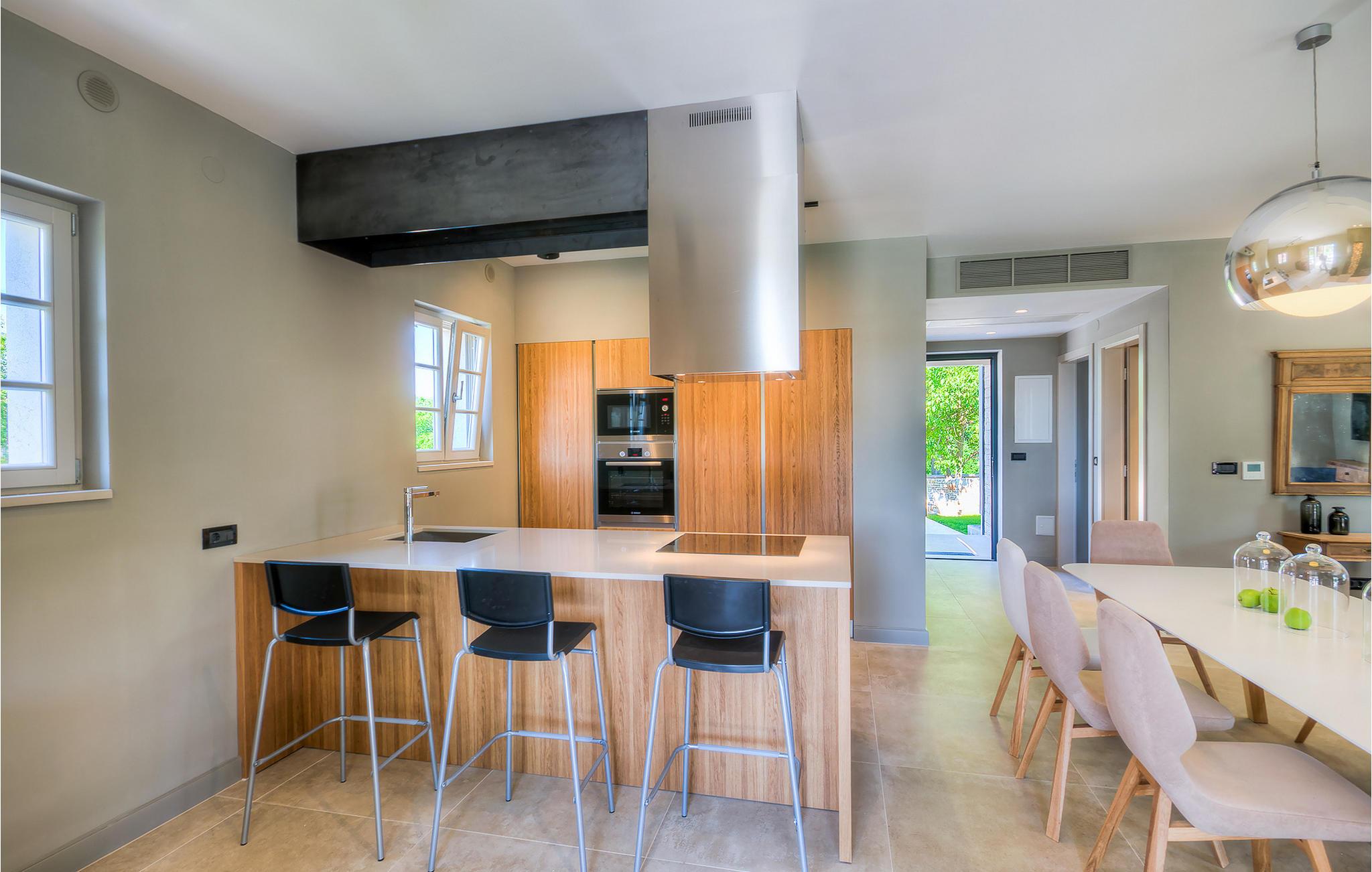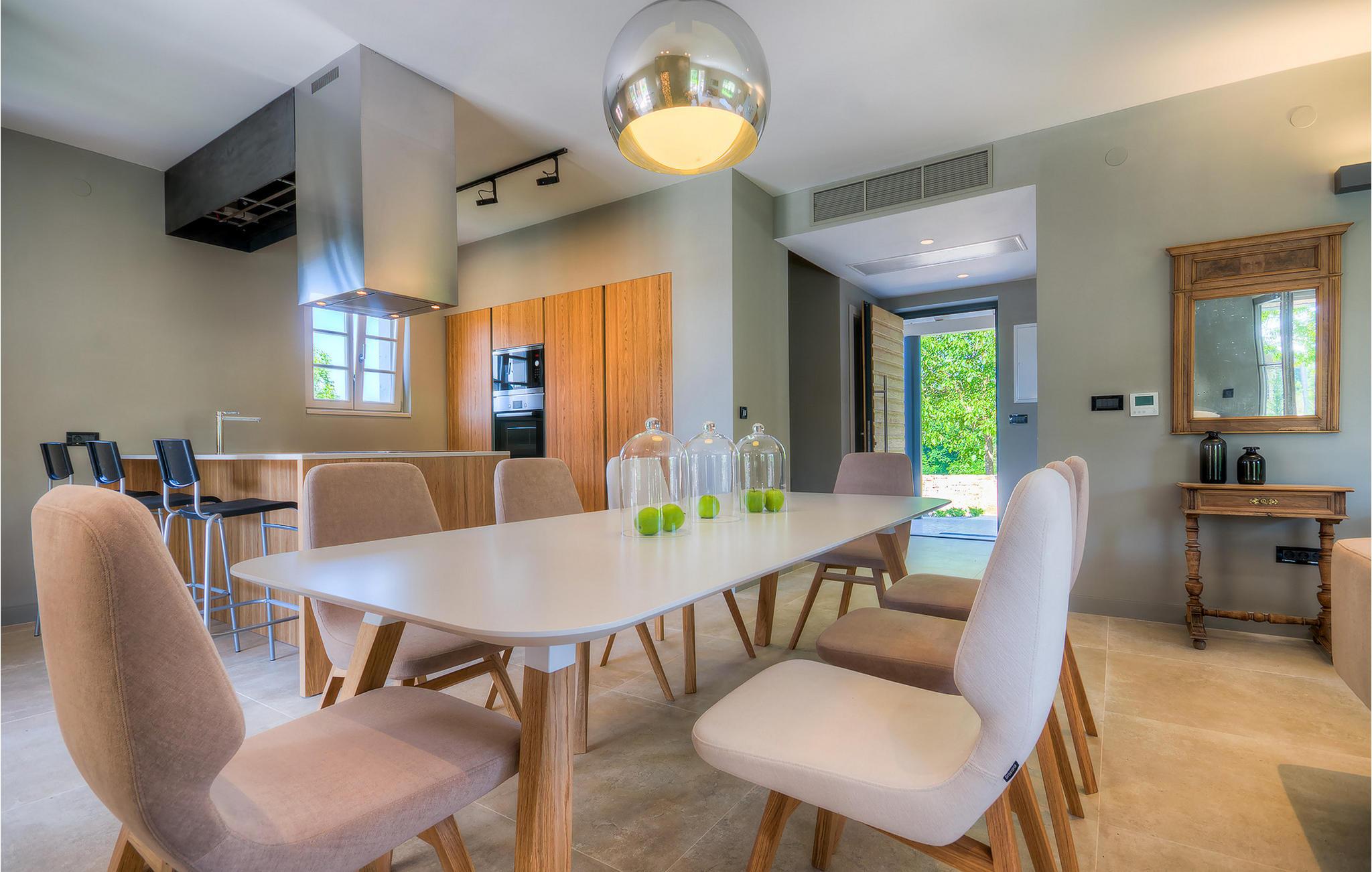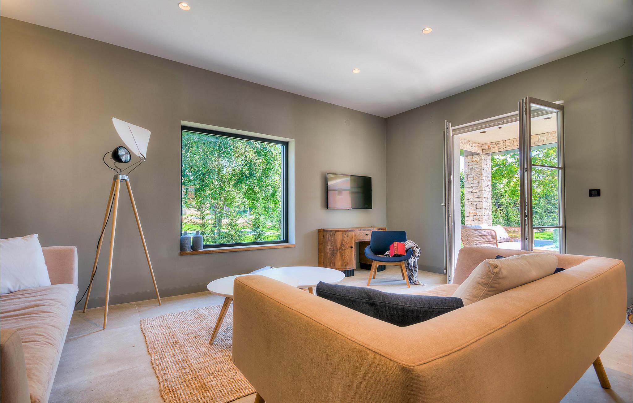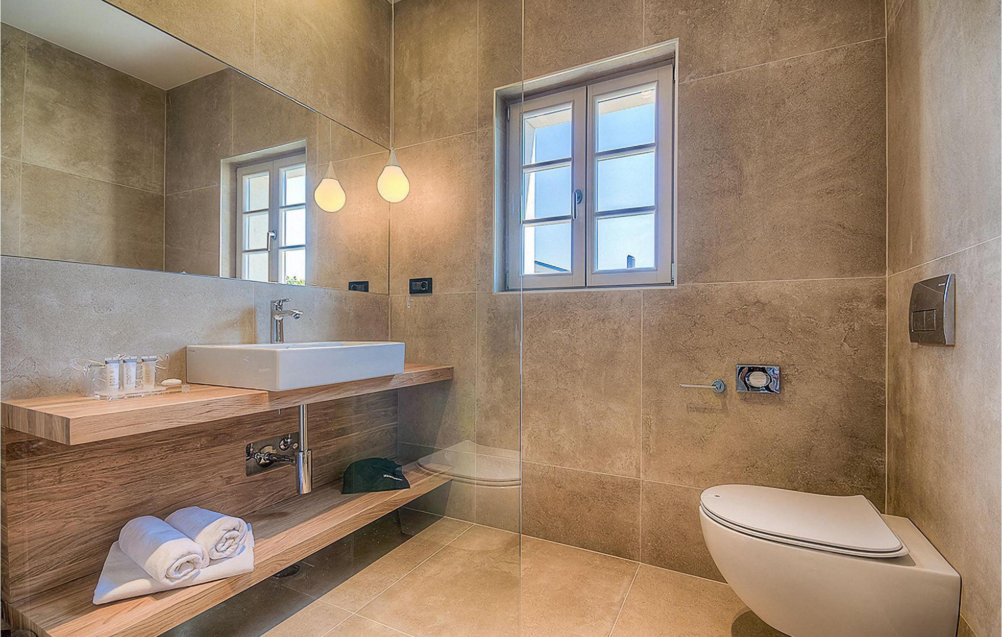 Falls Sie ein besonderes Erlebnis suchen, tief in die Tradition und Landschaft Istriens eingebettet, mit Komfort und Stil, ist die herrliche Villa Mia für Sie genau das Richtige. Umgeben von einem großen gepflegten Rasengarten mit wunderschönen Zypressen und dem einladenden Pool mit für faule Sonnenbäder idealer Terrasse, wird Sie dieses traumhafte Anwesen ganz bestimmt faszinieren. Natursteinwände, hübsche Holzläden und die gemütliche Veranda mit dem eingebauten Grill, sowie al fresco Ess- und Loungebereich verschaffen einen reizvollen ersten Eindruck, während der Innenbereich den hohen Erwartungen mehr als gerecht wird. Geschmackvoll gestaltet mit einer Mischung aus modernen und Vintage-Möbeln, attraktiver Beleuchtung und großen Fenstertüren, die die Zimmer besonders hell und luftig halten, versorgt das Haus eine warme, entspannende Atmosphäre, die sowohl traditionellen als auch modernen Geschmäckern zuspricht. Im Erdgeschoss dominiert ein großzügiger, offener Raum verteilt in Wohn-, Ess- und Kochbereiche mit einem eleganten Kamin und bequemen Sofas, wo Sie in gemütlicher Atmosphäre die Eindrücke des Tages austauschen können. Eines der vier stilvoll eingerichteten Schlafzimmer befindet sich im Erdgeschoss, während die anderen drei über die obere Etage verteilt sind, jedes mit Flachbildfernseher, sowie einem eigenen wunderschön eingerichteten Bad. Der erste Stock verfügt noch über eine hübsche Terrasse, von wo aus Sie die herrliche Aussicht über die umgebende Landschaft genießen können. Villa Mia ist nicht nur als perfekte Basis zu empfehlen, um unbestreitbare Reize Istriens zu entdecken, sondern auch für Familien, die in vollem Luxus Spaß haben und richtig entspannen wollen.Gerade zwischen den bezaubernden kleinen mittelalterlichen Ortschaften von Žminj, Svetvincenat und Kanfanar gelegen, könnte diese wunderschöne Villa nicht besser gestaltet werden für einen Urlaub, der faule Tage von dolce far niente mit Besichtigungstouren in einer der schönsten Gebieten Istriens kombiniert. Die malerischen, mittelalterlichen Hügelstädtchen, traditionelle Dörfer, wo Zeit stillgestanden ist, sowie Landschaften der einzigartigen Schönheit sind ideal für Aussichtsfahrten, Radtouren und Wandern. Hervorragende traditionelle Küche und erstklassige Weine für welche diese Region weltbekannt ist, fügen die letzten Zutaten zu einem unvergesslichen Urlaub hinzu. Wo auch immer Sie gelangen, werden Ihnen die Einheimischen einen wunderbaren, herzlichen Empfang in diese faszinierende Region bieten. Sie können auch Lebensmittel direkt von den lokalen Herstellern kaufen. Und wenn Sie in der Stimmung für etwas Anderes sind, sind die kristallklare Adria mit ihren wunderschönen Stränden, sowie die besuchten touristischen Hotspots nur eine kurze Autofahrt entfernt.