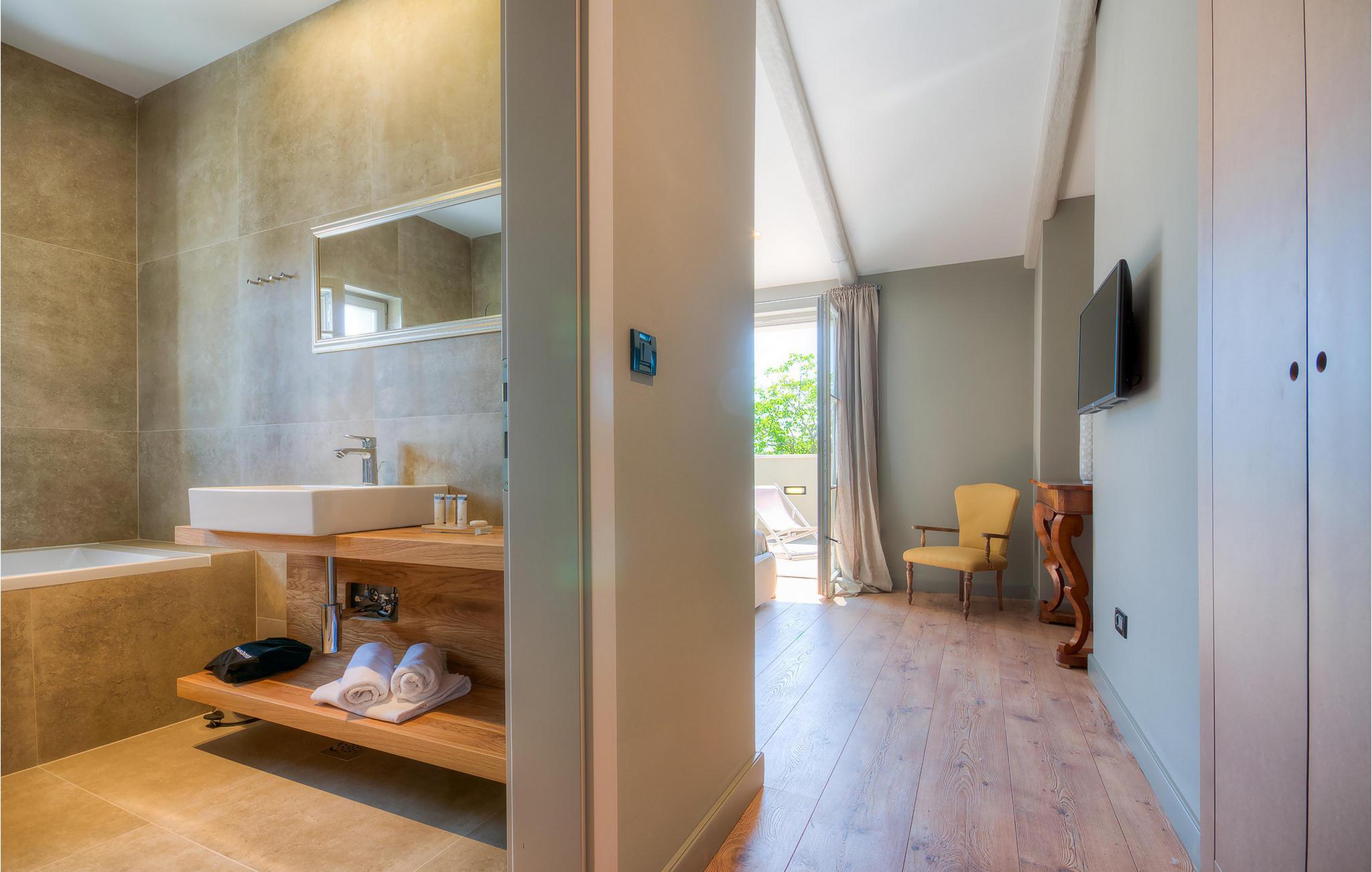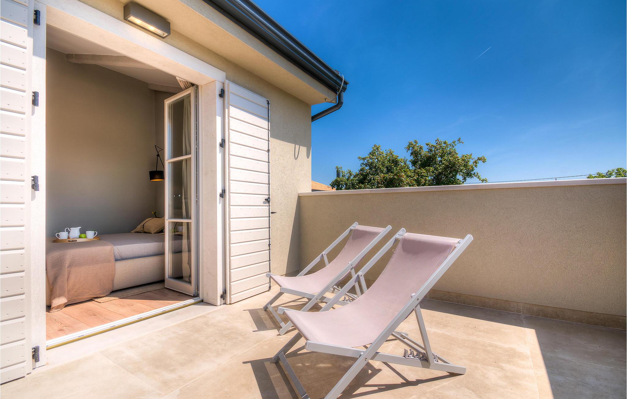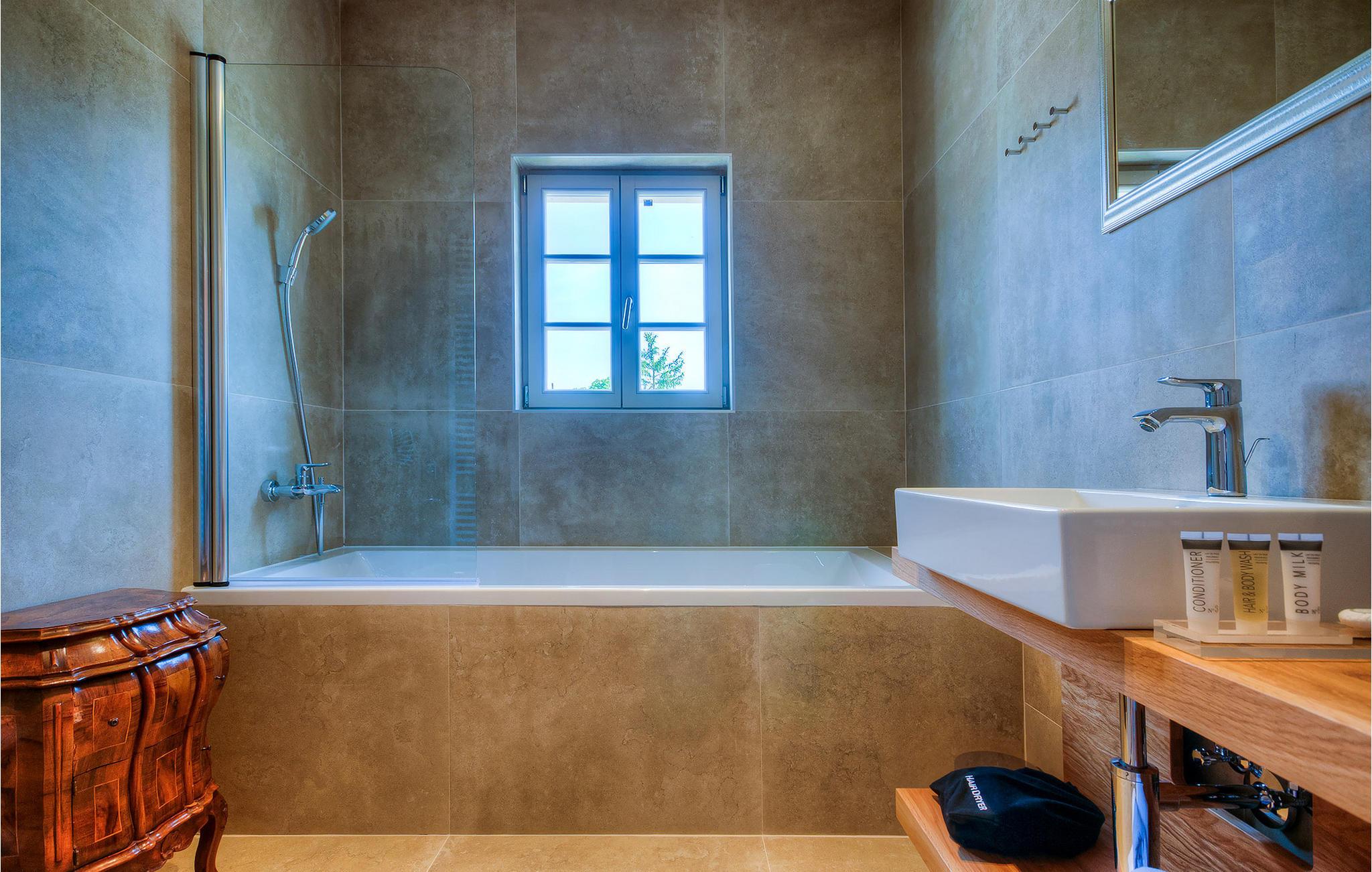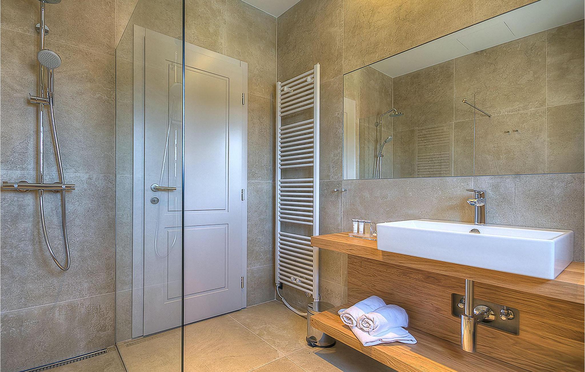 Falls Sie ein besonderes Erlebnis suchen, tief in die Tradition und Landschaft Istriens eingebettet, mit Komfort und Stil, ist die herrliche Villa Mia für Sie genau das Richtige. Umgeben von einem großen gepflegten Rasengarten mit wunderschönen Zypressen und dem einladenden Pool mit für faule Sonnenbäder idealer Terrasse, wird Sie dieses traumhafte Anwesen ganz bestimmt faszinieren. Natursteinwände, hübsche Holzläden und die gemütliche Veranda mit dem eingebauten Grill, sowie al fresco Ess- und Loungebereich verschaffen einen reizvollen ersten Eindruck, während der Innenbereich den hohen Erwartungen mehr als gerecht wird. Geschmackvoll gestaltet mit einer Mischung aus modernen und Vintage-Möbeln, attraktiver Beleuchtung und großen Fenstertüren, die die Zimmer besonders hell und luftig halten, versorgt das Haus eine warme, entspannende Atmosphäre, die sowohl traditionellen als auch modernen Geschmäckern zuspricht. Im Erdgeschoss dominiert ein großzügiger, offener Raum verteilt in Wohn-, Ess- und Kochbereiche mit einem eleganten Kamin und bequemen Sofas, wo Sie in gemütlicher Atmosphäre die Eindrücke des Tages austauschen können. Eines der vier stilvoll eingerichteten Schlafzimmer befindet sich im Erdgeschoss, während die anderen drei über die obere Etage verteilt sind, jedes mit Flachbildfernseher, sowie einem eigenen wunderschön eingerichteten Bad. Der erste Stock verfügt noch über eine hübsche Terrasse, von wo aus Sie die herrliche Aussicht über die umgebende Landschaft genießen können. Villa Mia ist nicht nur als perfekte Basis zu empfehlen, um unbestreitbare Reize Istriens zu entdecken, sondern auch für Familien, die in vollem Luxus Spaß haben und richtig entspannen wollen.Gerade zwischen den bezaubernden kleinen mittelalterlichen Ortschaften von Žminj, Svetvincenat und Kanfanar gelegen, könnte diese wunderschöne Villa nicht besser gestaltet werden für einen Urlaub, der faule Tage von dolce far niente mit Besichtigungstouren in einer der schönsten Gebieten Istriens kombiniert. Die malerischen, mittelalterlichen Hügelstädtchen, traditionelle Dörfer, wo Zeit stillgestanden ist, sowie Landschaften der einzigartigen Schönheit sind ideal für Aussichtsfahrten, Radtouren und Wandern. Hervorragende traditionelle Küche und erstklassige Weine für welche diese Region weltbekannt ist, fügen die letzten Zutaten zu einem unvergesslichen Urlaub hinzu. Wo auch immer Sie gelangen, werden Ihnen die Einheimischen einen wunderbaren, herzlichen Empfang in diese faszinierende Region bieten. Sie können auch Lebensmittel direkt von den lokalen Herstellern kaufen. Und wenn Sie in der Stimmung für etwas Anderes sind, sind die kristallklare Adria mit ihren wunderschönen Stränden, sowie die besuchten touristischen Hotspots nur eine kurze Autofahrt entfernt.