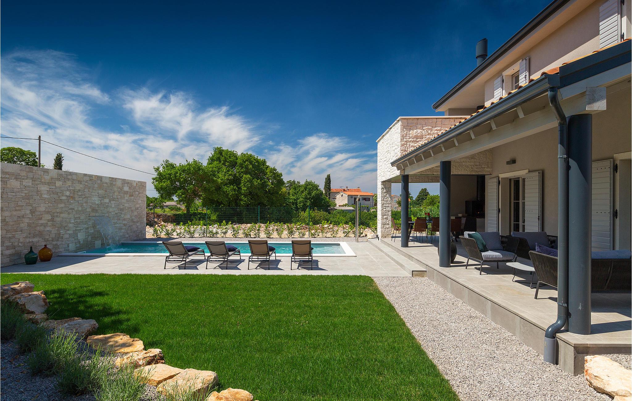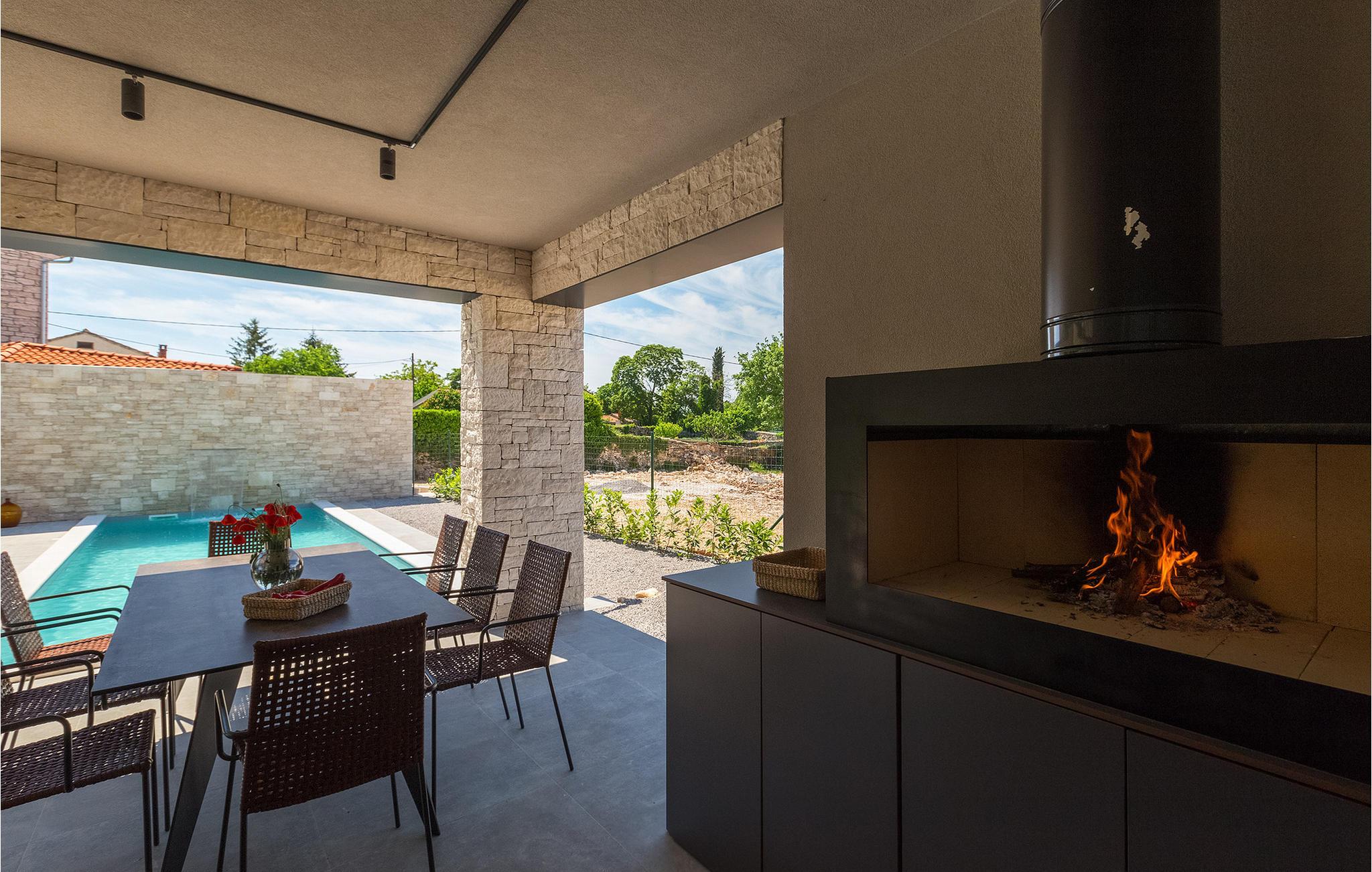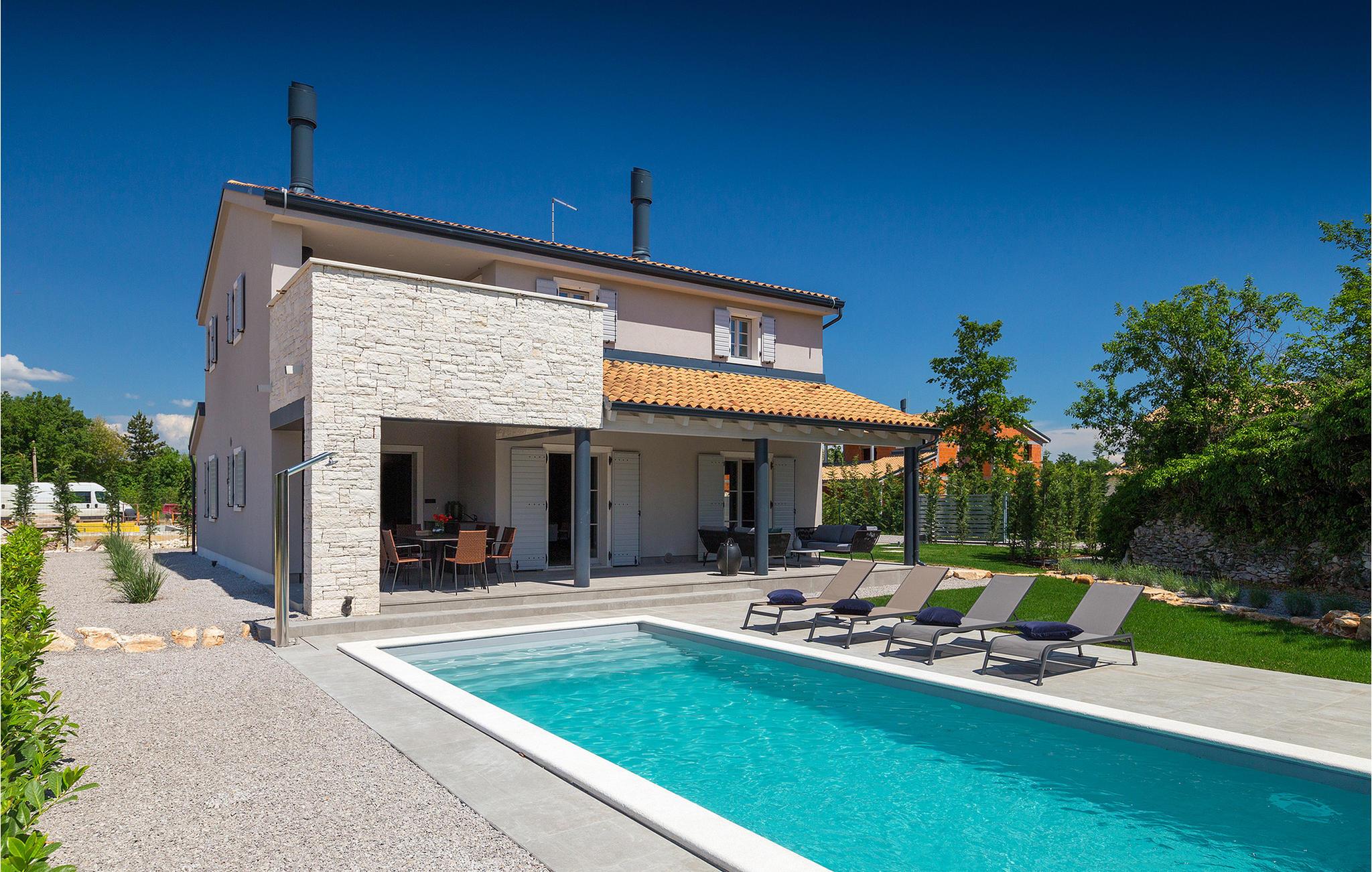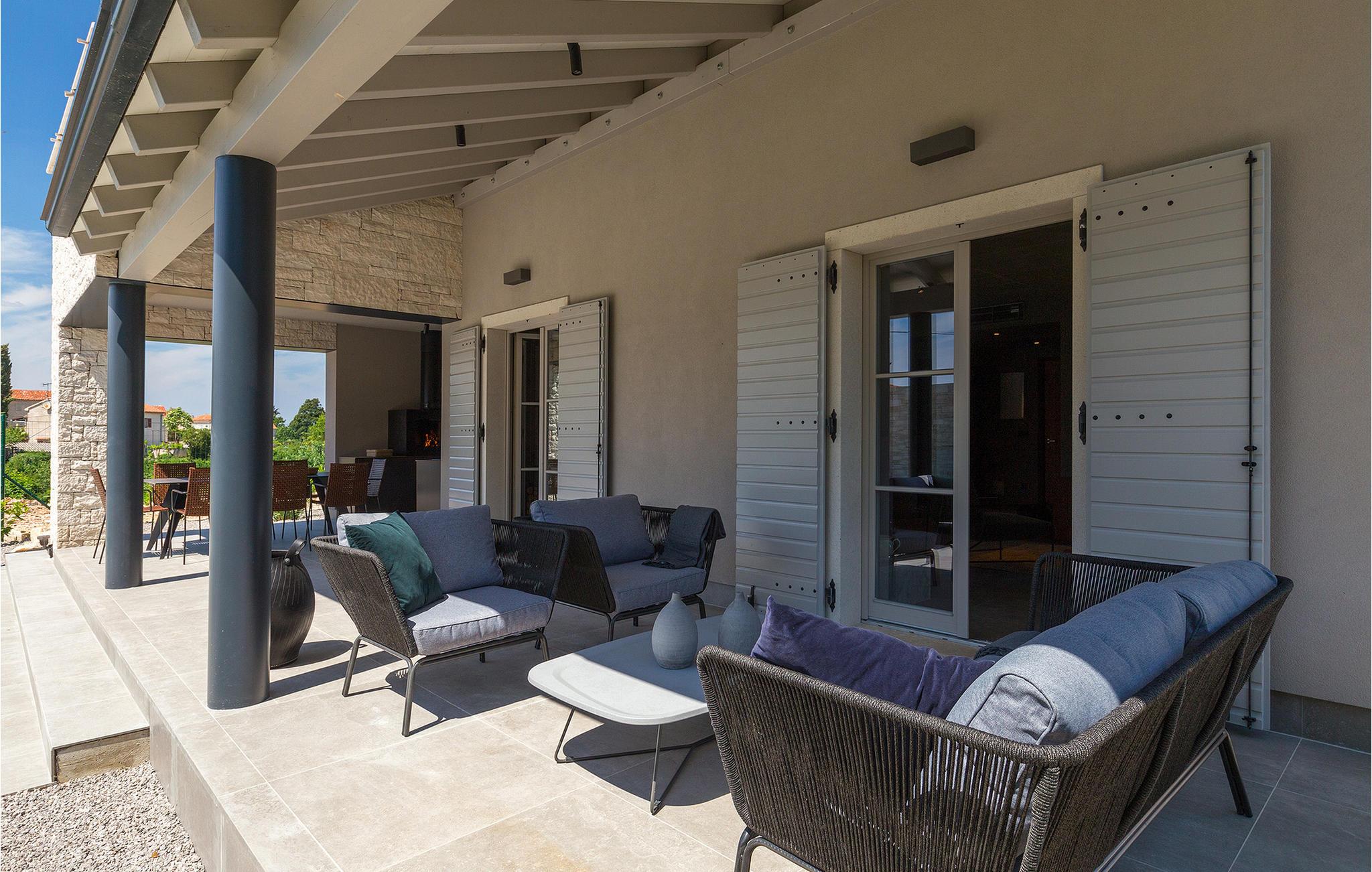Villa Sivati ist die genau richtige Unterkunft für einen Urlaub mit Komfort und Stil. Mit dem einladenden Pool und der schönen Sonnenterrasse, wird Sie dieses traumhafte Anwesen ganz bestimmt faszinieren. Die gemütliche Veranda hat einen eingebauten Grill, sowie al fresco Ess- und Loungebereich, während der Innenbereich geschmackvoll gestaltet mit einer Mischung aus modernen und Vintage-Möbeln, attraktiver Beleuchtung und großen Fenstertüren, die die Zimmer besonders hell und luftig halten. Das Haus versorgt eine warme, entspannende Atmosphäre, die sowohl traditionellen als auch modernen Geschmäckern zuspricht. Das Erdgeschoss ist ein großzügiger, offener Raum verteilt in Wohn-, Ess- und Kochbereiche mit einem eleganten Kamin und bequemen Sofas. Eines der vier stilvoll eingerichteten Schlafzimmer befindet sich im Erdgeschoss, während die anderen drei über die obere Etage verteilt sind, jedes mit TV, Klimaanlage und eigenem wunderschön eingerichteten Badezimmer. Der erste Stock verfügt noch über einen hübschen Balkon, von wo aus Sie die herrliche Aussicht über die umgebende Landschaft genießen können.Gerade zwischen den bezaubernden kleinen mittelalterlichen Ortschaften von Žminj, Svetvincenat und Kanfanar gelegen, könnte diese wunderschöne Villa nicht besser gestaltet werden für einen Urlaub, der faule Tage von dolce far niente mit Besichtigungstouren in einer der schönsten Gebieten Istriens kombiniert. Die malerischen, mittelalterlichen Hügelstädtchen, traditionelle Dörfer, wo Zeit stillgestanden ist, sowie Landschaften der einzigartigen Schönheit sind ideal für Aussichtsfahrten, Radtouren und Wandern. Hervorragende traditionelle Küche und erstklassige Weine für welche diese Region weltbekannt ist, fügen die letzten Zutaten zu einem unvergesslichen Urlaub hinzu. Direkt von den lokalen Herstellern können Sie auch Lebensmittel kaufen. Und wenn Sie in der Stimmung für etwas Anderes sind, ist die Adria mit ihren wunderschönen Stränden, sowie die besuchten touristischen Hotspots nur eine kurze Autofahrt entfernt.