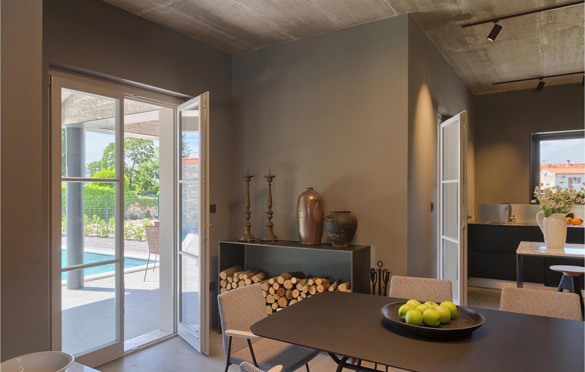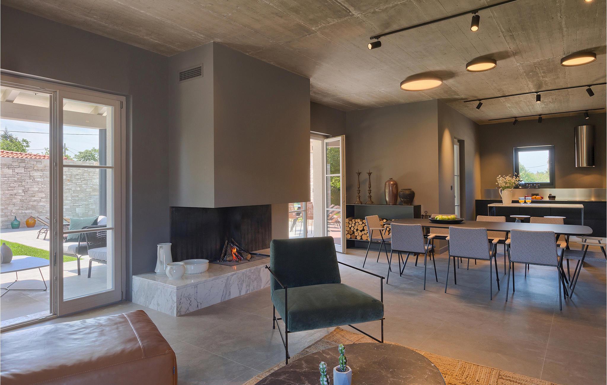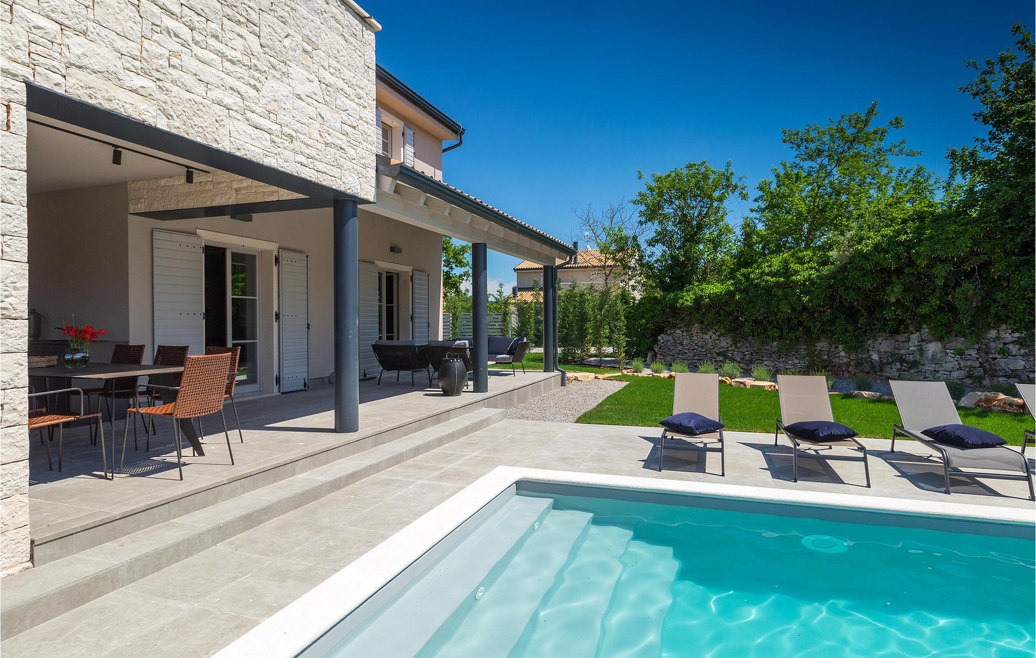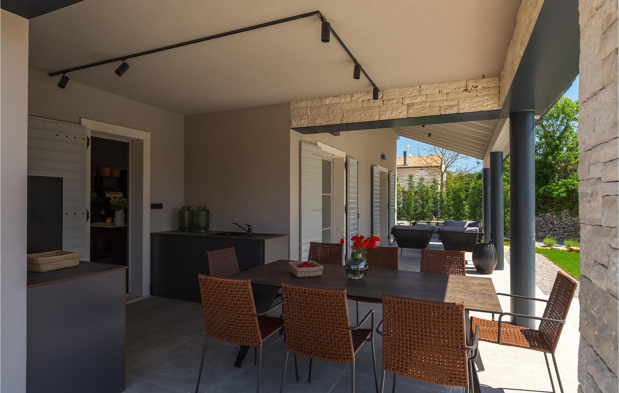Villa Sivati ist die genau richtige Unterkunft für einen Urlaub mit Komfort und Stil. Mit dem einladenden Pool und der schönen Sonnenterrasse, wird Sie dieses traumhafte Anwesen ganz bestimmt faszinieren. Die gemütliche Veranda hat einen eingebauten Grill, sowie al fresco Ess- und Loungebereich, während der Innenbereich geschmackvoll gestaltet mit einer Mischung aus modernen und Vintage-Möbeln, attraktiver Beleuchtung und großen Fenstertüren, die die Zimmer besonders hell und luftig halten. Das Haus versorgt eine warme, entspannende Atmosphäre, die sowohl traditionellen als auch modernen Geschmäckern zuspricht. Das Erdgeschoss ist ein großzügiger, offener Raum verteilt in Wohn-, Ess- und Kochbereiche mit einem eleganten Kamin und bequemen Sofas. Eines der vier stilvoll eingerichteten Schlafzimmer befindet sich im Erdgeschoss, während die anderen drei über die obere Etage verteilt sind, jedes mit TV, Klimaanlage und eigenem wunderschön eingerichteten Badezimmer. Der erste Stock verfügt noch über einen hübschen Balkon, von wo aus Sie die herrliche Aussicht über die umgebende Landschaft genießen können.Gerade zwischen den bezaubernden kleinen mittelalterlichen Ortschaften von Žminj, Svetvincenat und Kanfanar gelegen, könnte diese wunderschöne Villa nicht besser gestaltet werden für einen Urlaub, der faule Tage von dolce far niente mit Besichtigungstouren in einer der schönsten Gebieten Istriens kombiniert. Die malerischen, mittelalterlichen Hügelstädtchen, traditionelle Dörfer, wo Zeit stillgestanden ist, sowie Landschaften der einzigartigen Schönheit sind ideal für Aussichtsfahrten, Radtouren und Wandern. Hervorragende traditionelle Küche und erstklassige Weine für welche diese Region weltbekannt ist, fügen die letzten Zutaten zu einem unvergesslichen Urlaub hinzu. Direkt von den lokalen Herstellern können Sie auch Lebensmittel kaufen. Und wenn Sie in der Stimmung für etwas Anderes sind, ist die Adria mit ihren wunderschönen Stränden, sowie die besuchten touristischen Hotspots nur eine kurze Autofahrt entfernt.