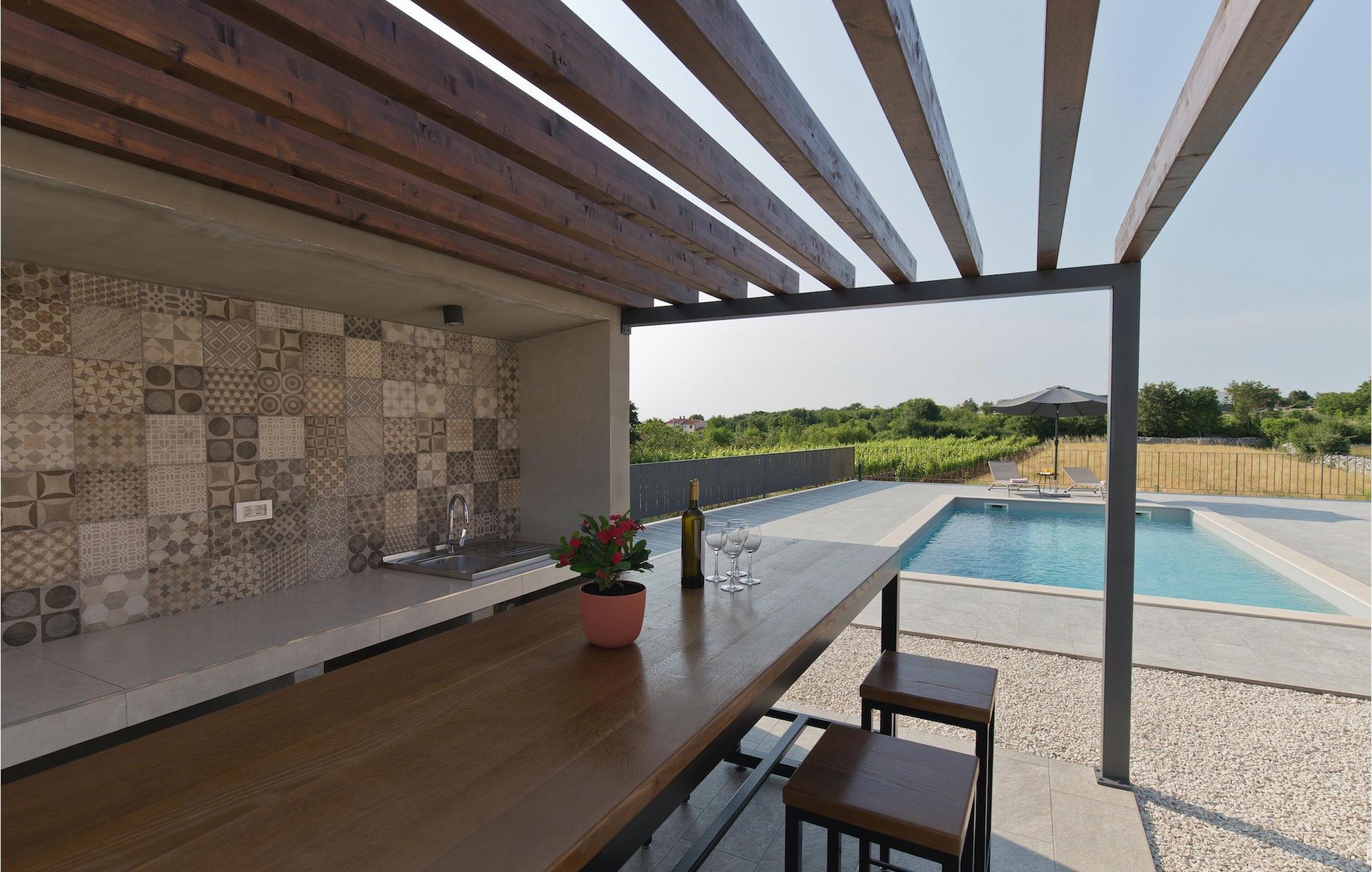 Die Villa Lemi ist eine moderne einstöckige Villa in Kanfanar inmitten der grünen Hügel von Zentralistrien. Diese charmante Villa bietet Platz für bis zu 6 Personen in 3 komfortablen Schlafzimmern. Beim Betreten der Villa führt Sie der kleine Flur in den geräumigen Bereich, in dem Wohn- und Esszimmer mit der voll ausgestatteten Küche verbunden sind. Von hier aus betreten Sie die überdachte Terrasse gegenüber der Sommerküche, auf der Sie Ihre köstlichen Grillgerichte direkt neben dem einladenden Pool zubereiten können. Drei Schlafzimmer mit Doppelbetten sind mit viel Sorgfalt eingerichtet. Während zwei der Schlafzimmer über Klimaanlagen verfügen, hat eines auch ein eigenes Bad. Die Lage der Villa eignet sich gut, um andere nahe gelegene Städte zu besichtigen oder das aufregende istrische Hinterland zu erkunden, das von unberührter Natur, heimischen Produkten und Möglichkeiten geprägt ist, Weinstraßen zu besuchen oder Ihren Urlaub aktiv mit Radfahren oder Wandern zu verbringen. In der Villa Lemi fängt Ihr Urlaub an!Die Villa befindet sich in den kleinen Ort Kanfanar, im Hinterland Istriens. In der Gegend von Kanfanar finden Sie eines der wichtigsten Denkmäler in Istrien - die mittelalterliche Stadt Dvigrad. Auf der einen Seite sind Sie von Hügeln und grünen Wiesen umgeben, während auf der anderen Seite die schöne Adria nur eine kurze Autofahrt entfernt ist (19 km in der Nähe von Rovinj). Probieren Sie die istrischen Spezialitäten, sowie Trüffel, Fuži (traditionelle istrische Nudeln), Schinken und Fischspezialitäten aber auch das bekannte Glas istrischer Malvasia. Die Stadt Rovinj, ein ehemaliges Fischerdorf, das für seine Schönheit bekannt ist, ist von der Villa aus leicht zu erreichen, falls Sie mit Auto unterwegs sind. Rovinj wird oft als eine der romantischsten kroatischen Städte beschrieben, wegen seiner engen Gassen, der warmen Atmosphäre und der wunderschönen Sonnenuntergänge, in denen man von der Küste aus genießen kann. In der Umgebung von Rovinj finden Sie zahlreiche Wander- und Radwege, auf denen Sie Wassersport betreiben und sich an den schönen Stränden sonnen können.