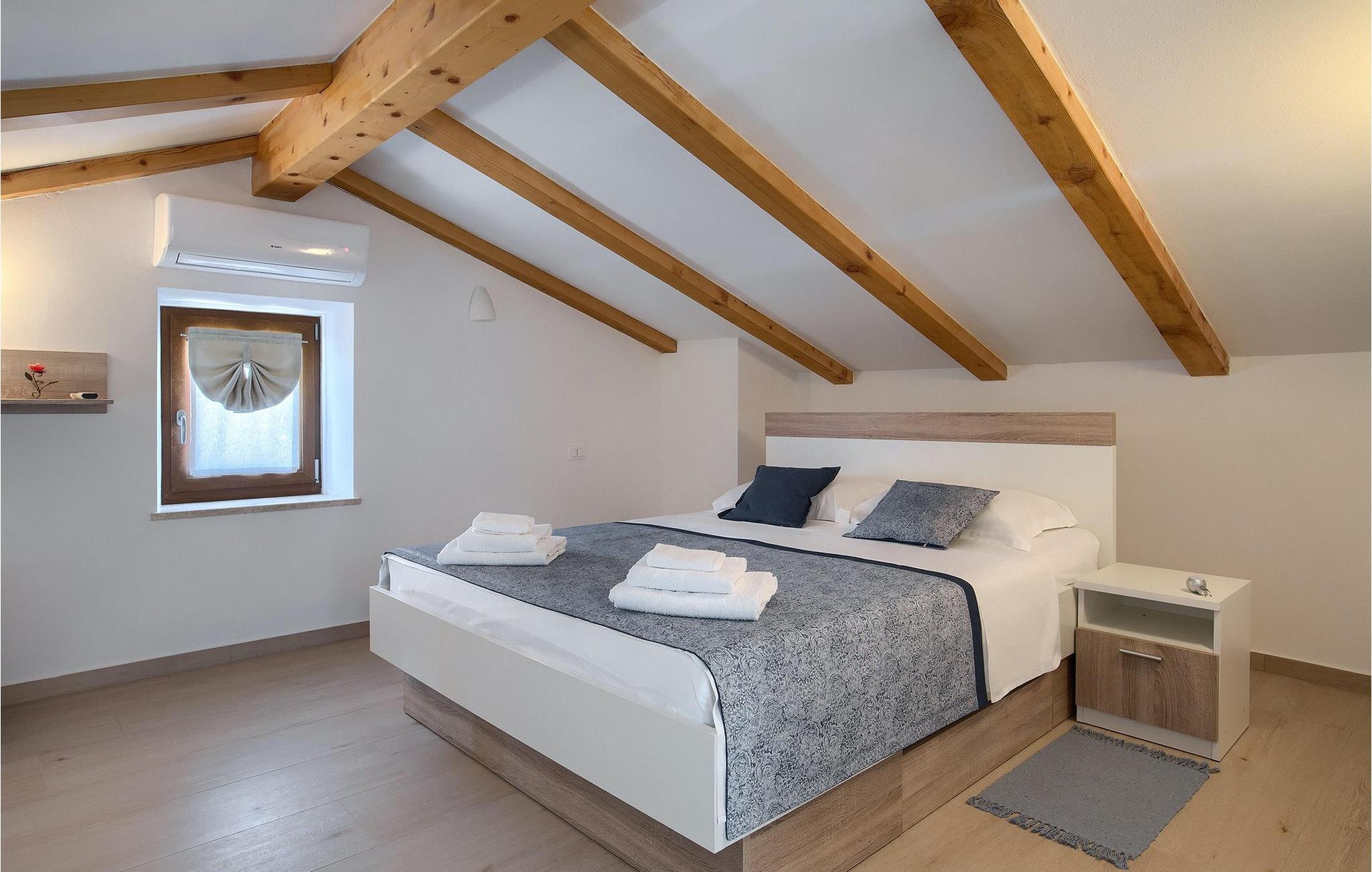 Villa Masi ist eine wunderschöne alte restaurierte Villa, die ideal für einen erholsamen Urlaub in Istrien für eine Gruppe mit 6 Gästen ist. Das Äußere und das Innere der Villa tragen mit ihren Steinwänden zum antiken Flair bei und bringen Nostalgie aus den alten Zeiten. Im Erdgeschoss der Villa Masi erwartet Sie ein offenes Wohnzimmer mit einem Esstisch für 6 Personen und einer voll ausgestatteten Küche. Im Wohnzimmer befindet sich ein bequemes Ecksofa mit Fernseher. Vom Wohnzimmer führt die Treppe in den ersten Stock, wo Sie weitere 2 Schlafzimmer mit eigenem Bad finden. Eines der Schlafzimmer verfügt über ein Doppelbett und das andere über 2 Einzelbetten, die auf Anfrage zu einem Doppelbett zusammengestellt werden können. Wenn Sie die Treppe hinaufsteigen, gelangen Sie schließlich auf den Dachboden, in dem sich das geräumige Schlafzimmer mit Doppelbett und zusätzlicher Schlafcouch, sowie ein ensuite- Badezimmer befindet. Das Äußere der Villa ist sehr geräumig und verfügt über einen schönen Pool zum erfrischen und Liegestühle. Die mediterranen Pflanzen rund um den Hof runden den Gesamteindruck der Villa ab.Diese Villa befindet sich in dem kleinen Dorf Kurili in der Gemeinde Kanfanar im Inneren Istriens. Hier finden Sie mittelalterliche Ruinen von Dvigrad und unberührte Natur der Bucht von Lim sowie zahlreiche archäologische Stätten. Diese Region gilt als Heimat des istrischen Ochsen, der einst fast vom Aussterben bedroht war und Fuzi - die Königin der istrischen Nudeln. Istrischer Ochse und Fuzi sind ein zentraler Bestandteil von Kanfanars größter Veranstaltung - Jakovlje, bei der Sie Istrien so erleben können, wie es einmal war.