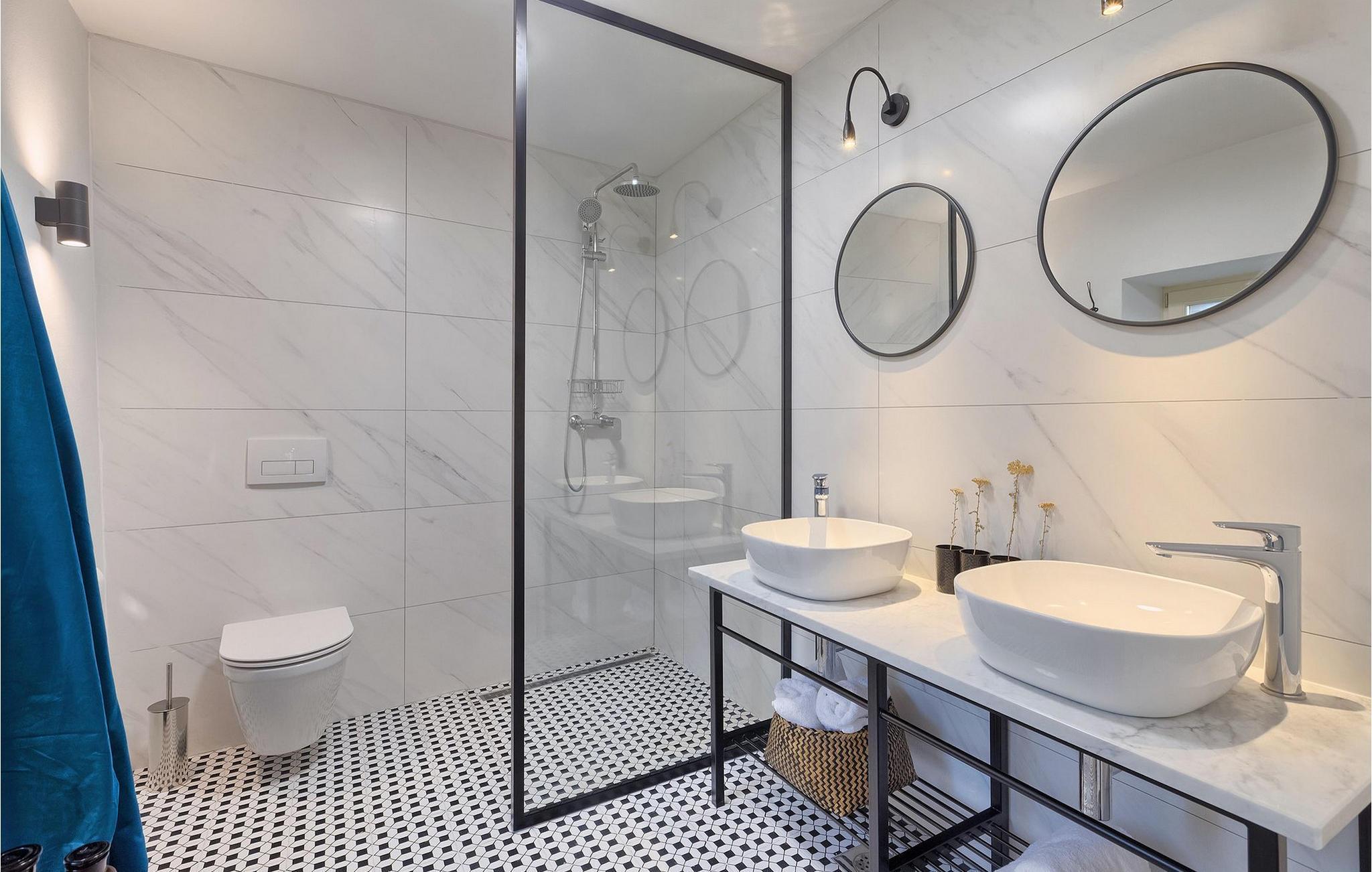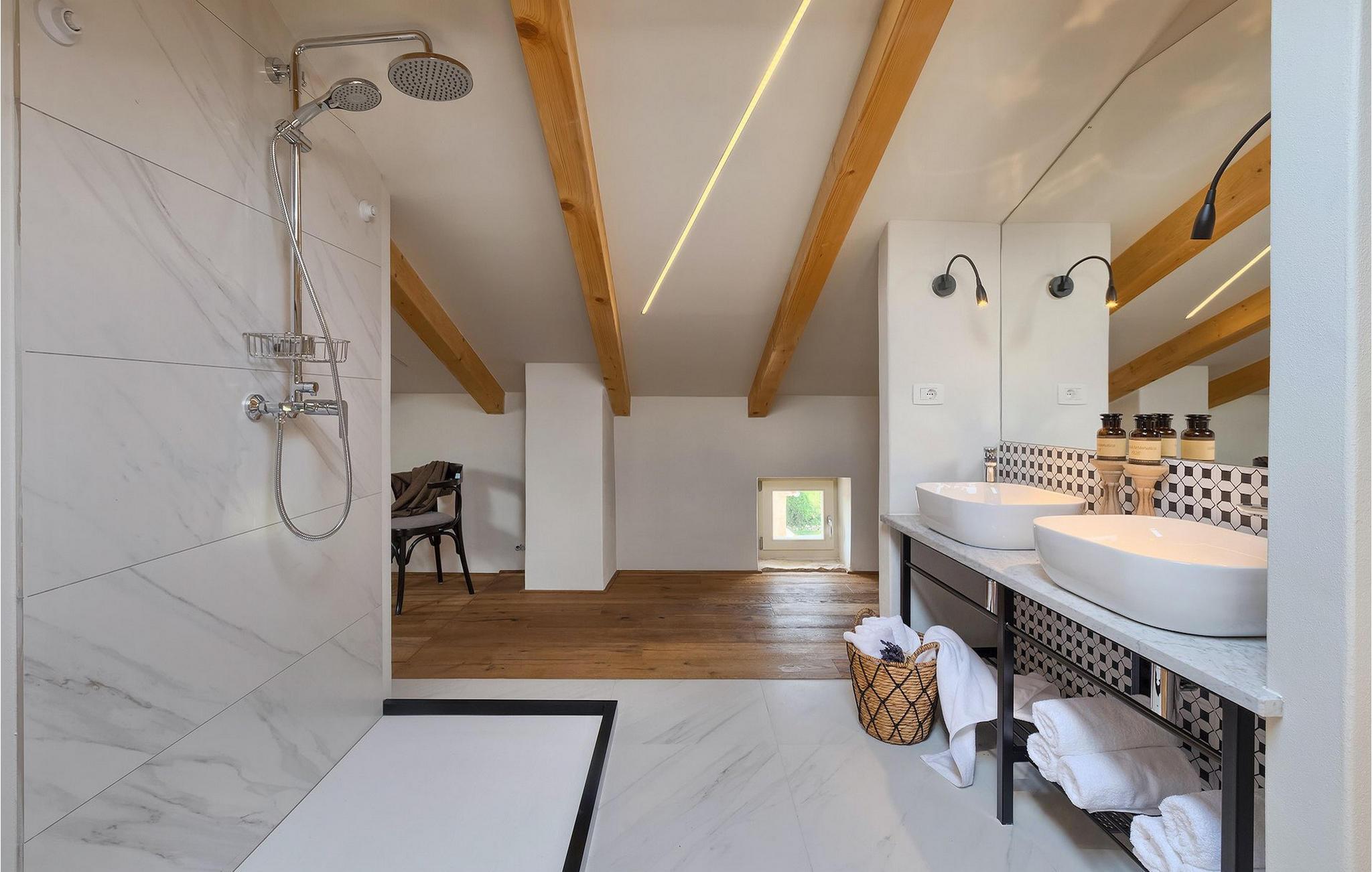 Im Erdgeschoss befinden sich zwei Schlafzimmer, ein Badezimmer und ein Abstellraum. Der erste Stock ist das Herz der Villa - mit einem großen, modernen und sonnigen Wohn- und Esszimmer mit voll ausgestatteter Küche und einer zusätzlichen Gästetoilette. Die 2. Etage (Loft) beherbergt das charmante und moderne Ensuite-Hauptschlafzimmer mit Doppelbett, in dem sich auch ein zusätzliches Einzelbett befindet.