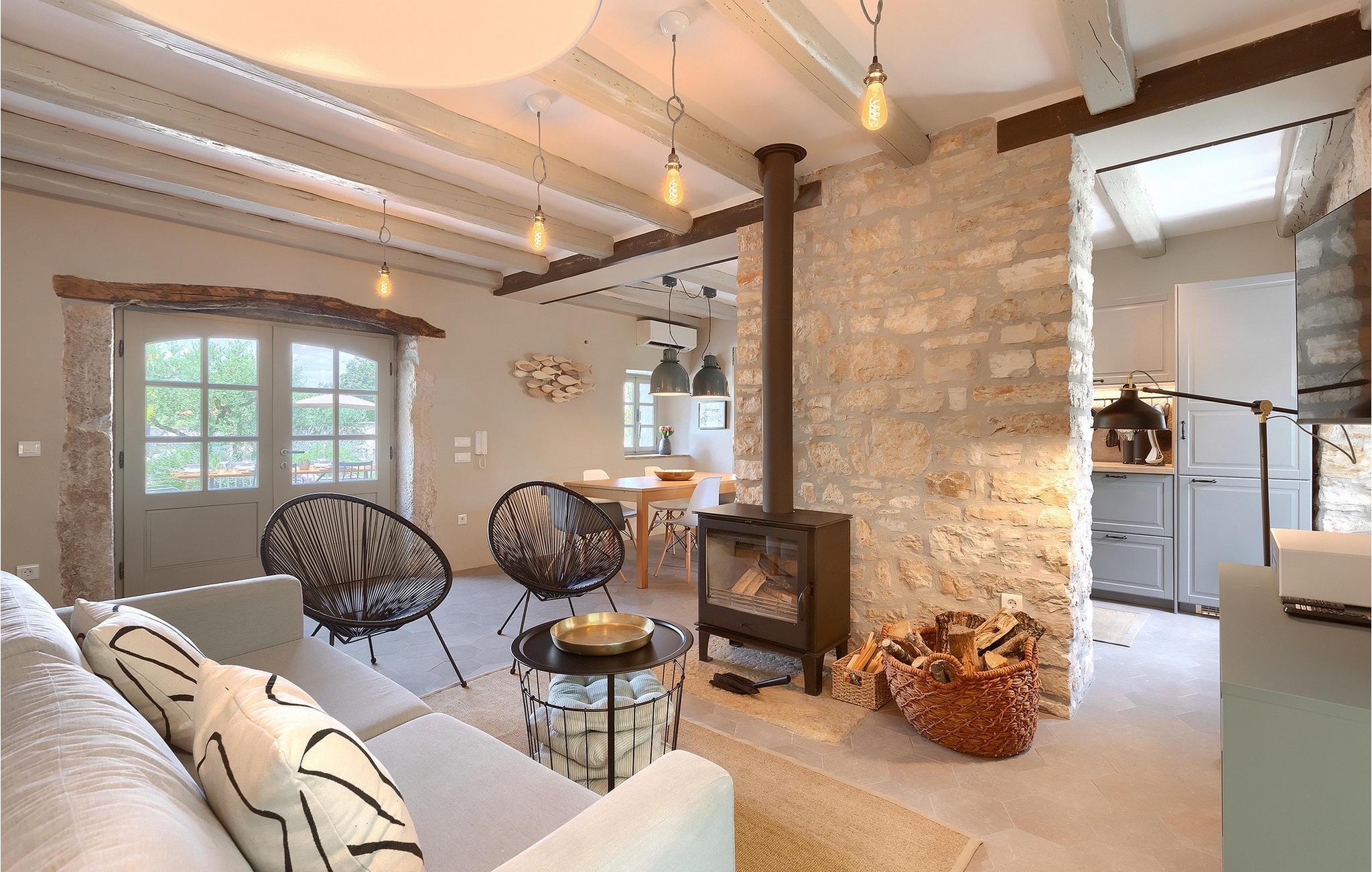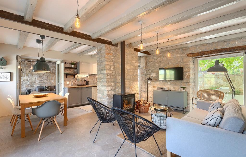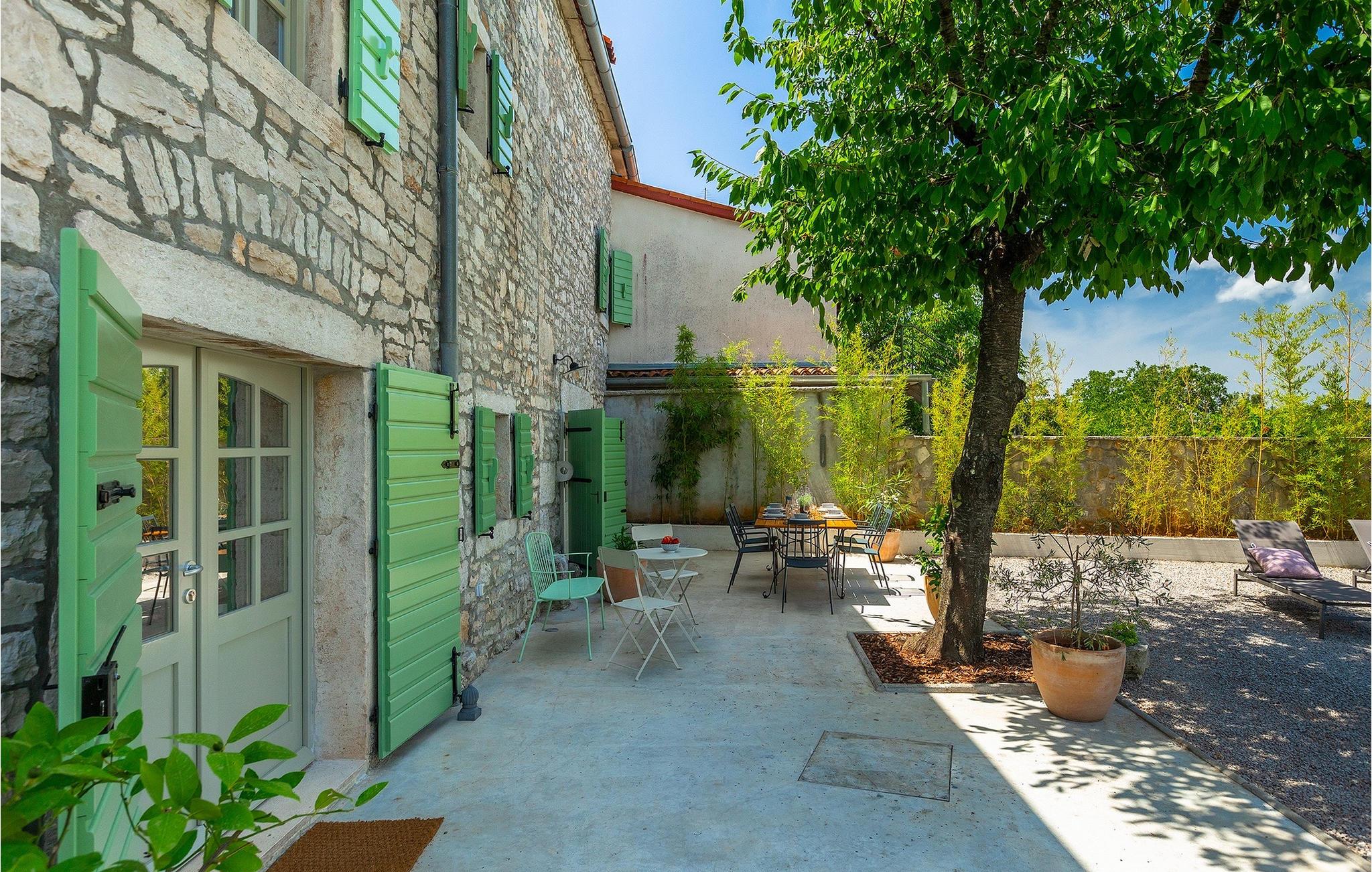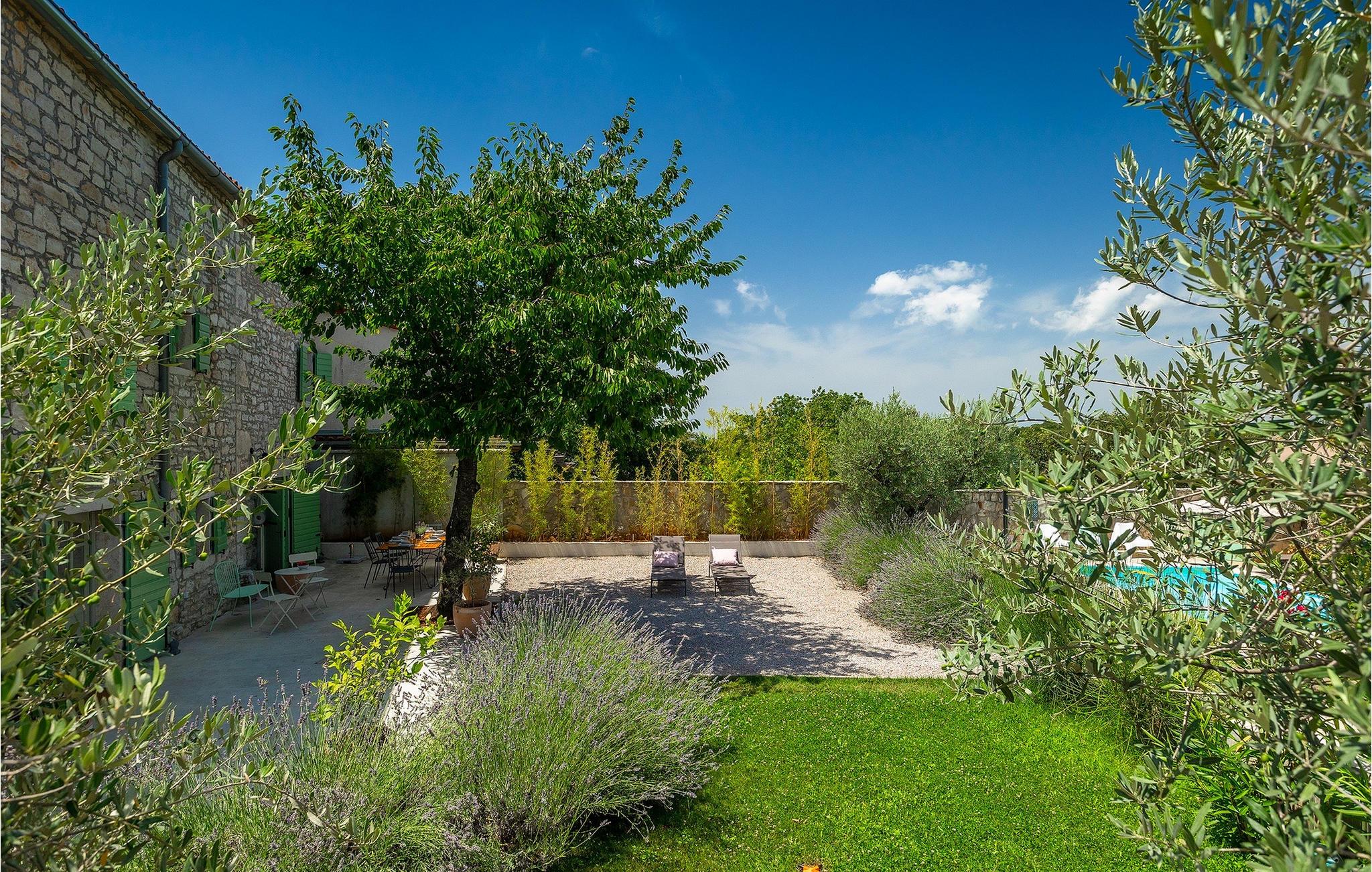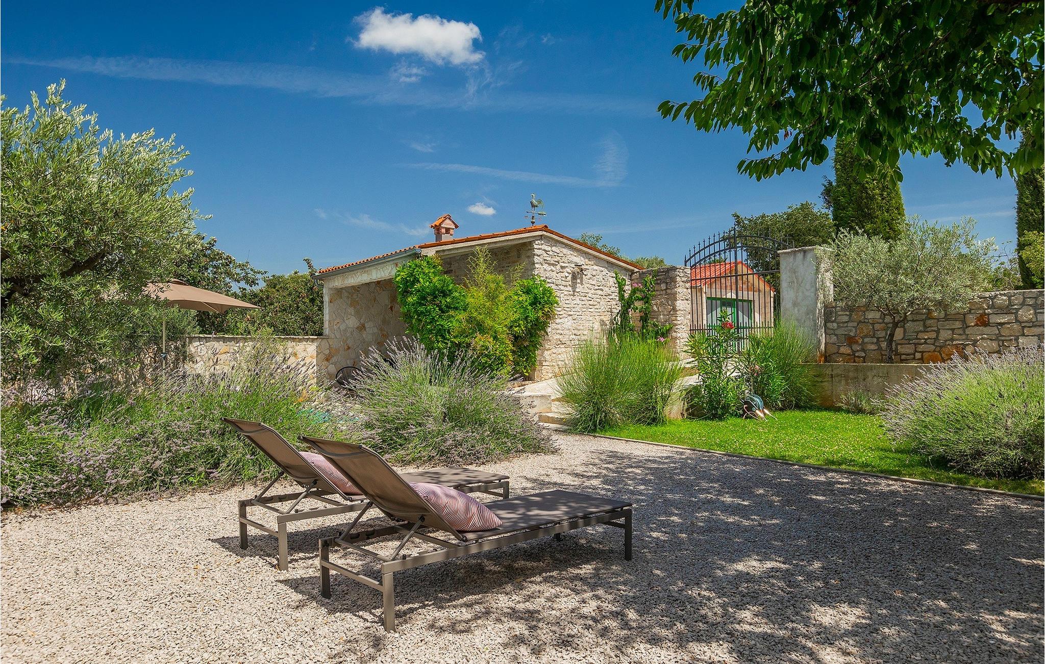 Der Außenbereich ist ebenso atemberaubend - zur Verfügung stehen Ihnen der private Pool, mehrere Sitzecken im Garten und der Außen-Essbereich, damit Sie Ihre Mahlzeiten im Freien genießen können.Die Ferienvilla befindet sich in der Nähe der Kleinstadt Kanfanar, aber sie ist auch nur eine kurze Fahrt von der schönen Küstenstadt Rovinj entfernt. Die alte Architektur der Stadt und der umliegenden Dörfer ist gut erhalten, Weingärten und Olivenbäume dominieren diesen Bereich mit seinem warmen, mediterranen Klima. Kanfanar und die umliegende Landschaft sind sehr bekannt, nicht nur wegen des historischen und kulturellen Erbes, sondern auch aufgrund der hervorragenden und authentischen istrischen Küche. Rovinj, die nächste größere Stadt, wird Sie durch seine mittelalterlichen Gassen und warmes mediterranes Ambiente verzaubern. Die Hauptkirche der heiligen Euphemia, wo sich Reliquien der Heiligen befinden, ist eine der schönsten barocken Bauten in ganz Istrien. Von der Kirche aus hat man einen wunderbaren Blick auf das offene Meer und zahlreiche kleine Inseln in der Ferne.