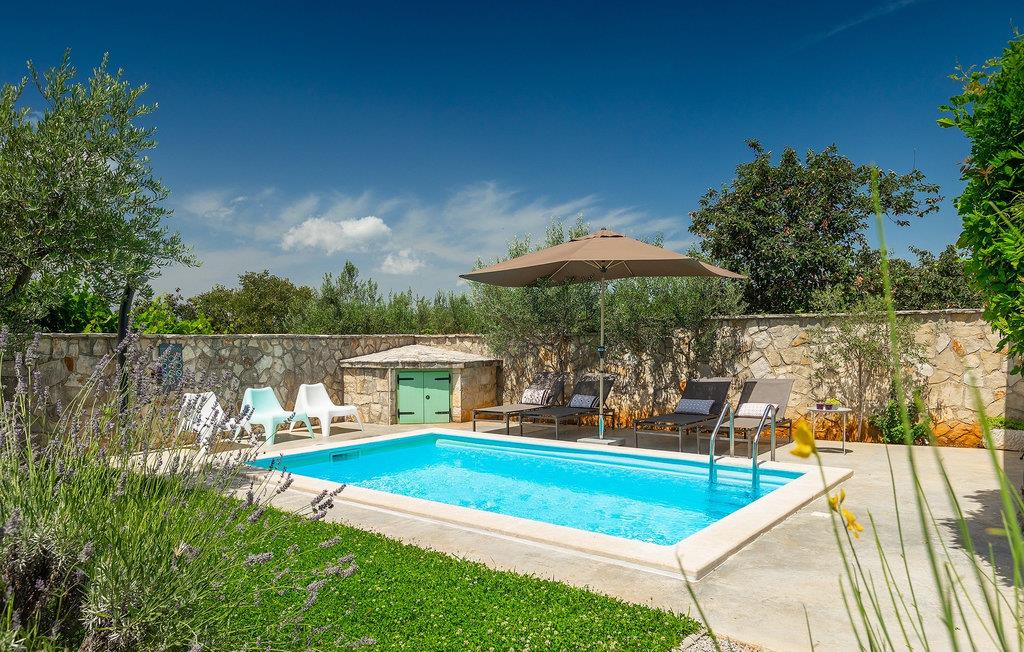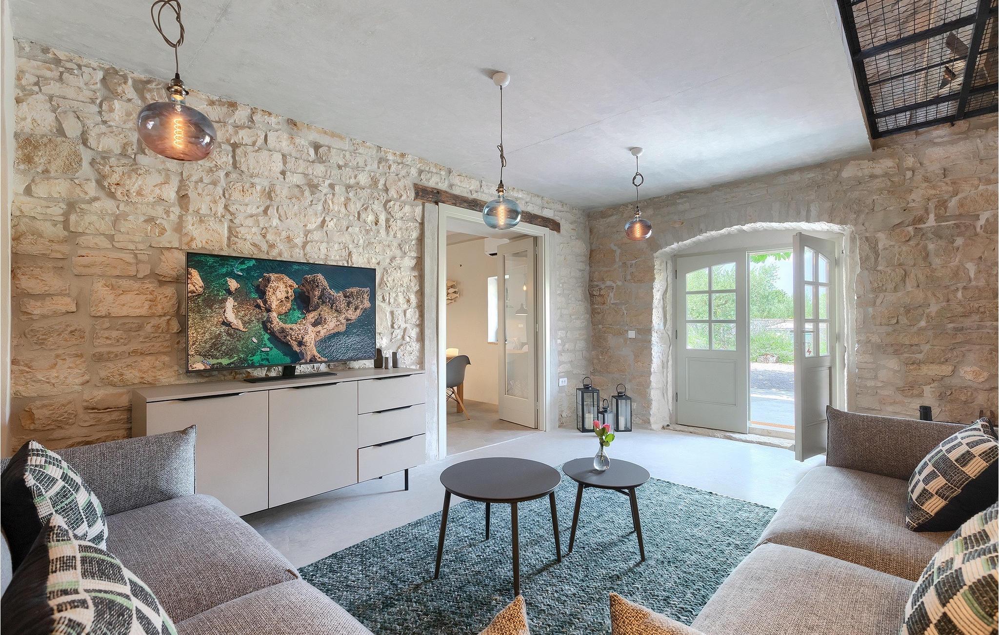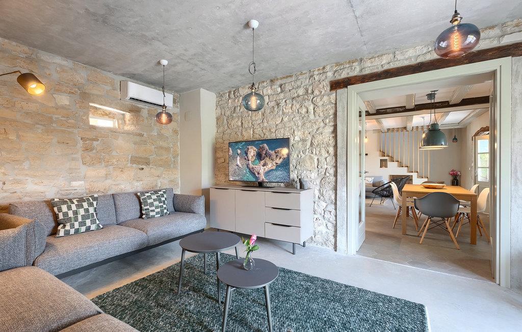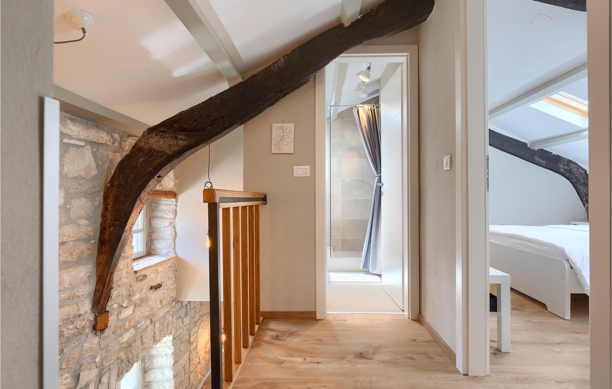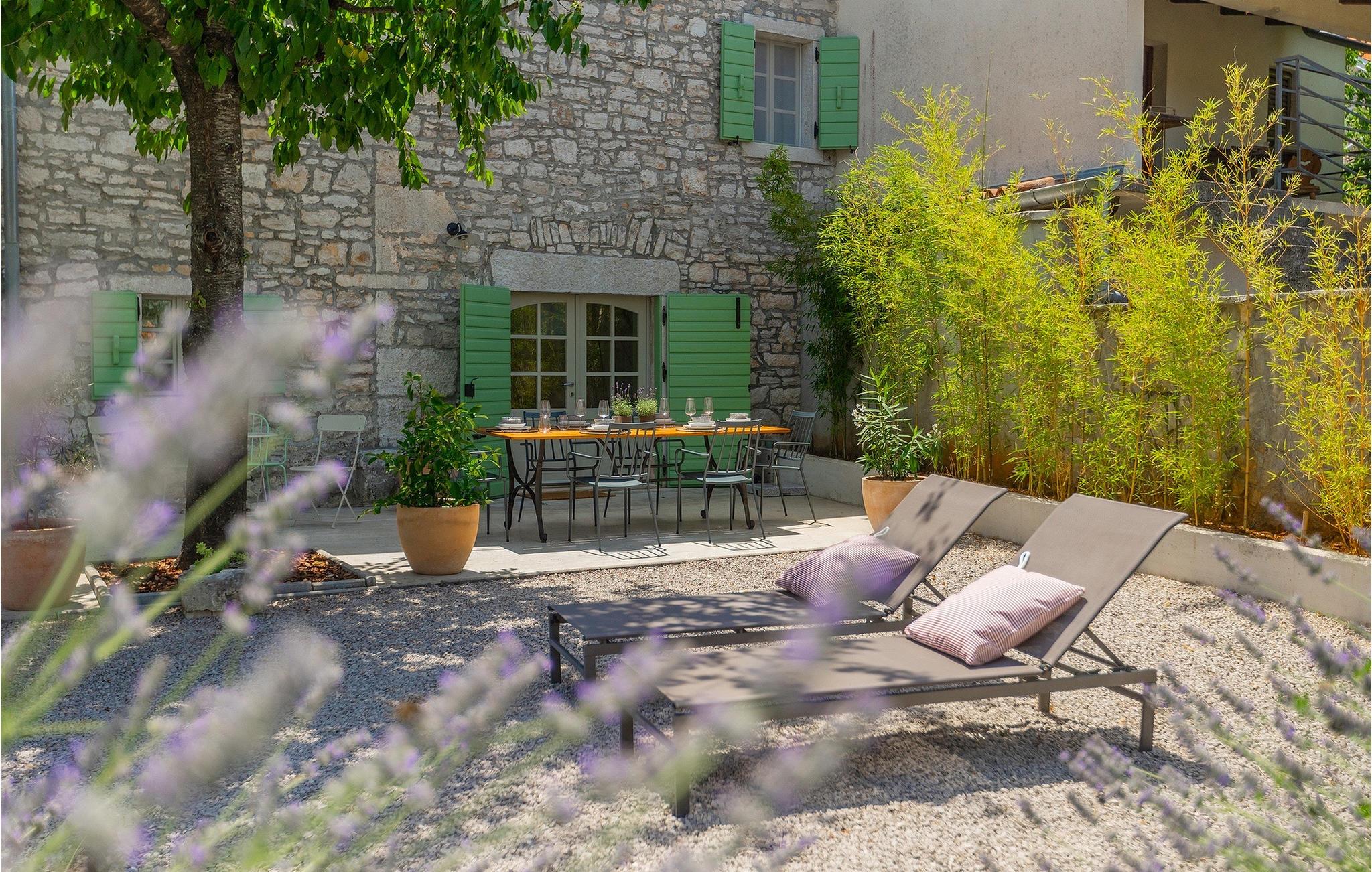 Der Außenbereich ist ebenso atemberaubend - zur Verfügung stehen Ihnen der private Pool, mehrere Sitzecken im Garten und der Außen-Essbereich, damit Sie Ihre Mahlzeiten im Freien genießen können.Die Ferienvilla befindet sich in der Nähe der Kleinstadt Kanfanar, aber sie ist auch nur eine kurze Fahrt von der schönen Küstenstadt Rovinj entfernt. Die alte Architektur der Stadt und der umliegenden Dörfer ist gut erhalten, Weingärten und Olivenbäume dominieren diesen Bereich mit seinem warmen, mediterranen Klima. Kanfanar und die umliegende Landschaft sind sehr bekannt, nicht nur wegen des historischen und kulturellen Erbes, sondern auch aufgrund der hervorragenden und authentischen istrischen Küche. Rovinj, die nächste größere Stadt, wird Sie durch seine mittelalterlichen Gassen und warmes mediterranes Ambiente verzaubern. Die Hauptkirche der heiligen Euphemia, wo sich Reliquien der Heiligen befinden, ist eine der schönsten barocken Bauten in ganz Istrien. Von der Kirche aus hat man einen wunderbaren Blick auf das offene Meer und zahlreiche kleine Inseln in der Ferne.