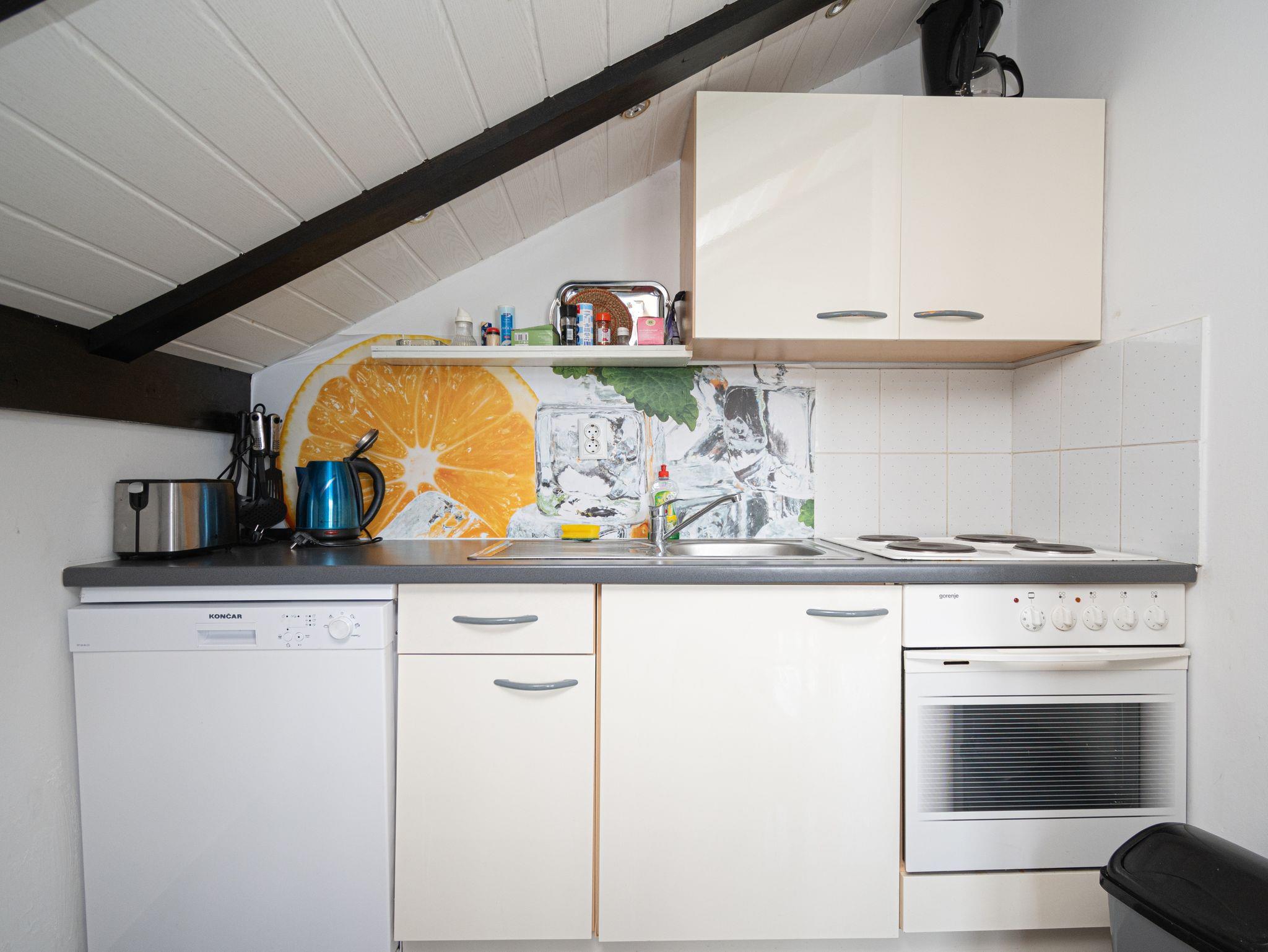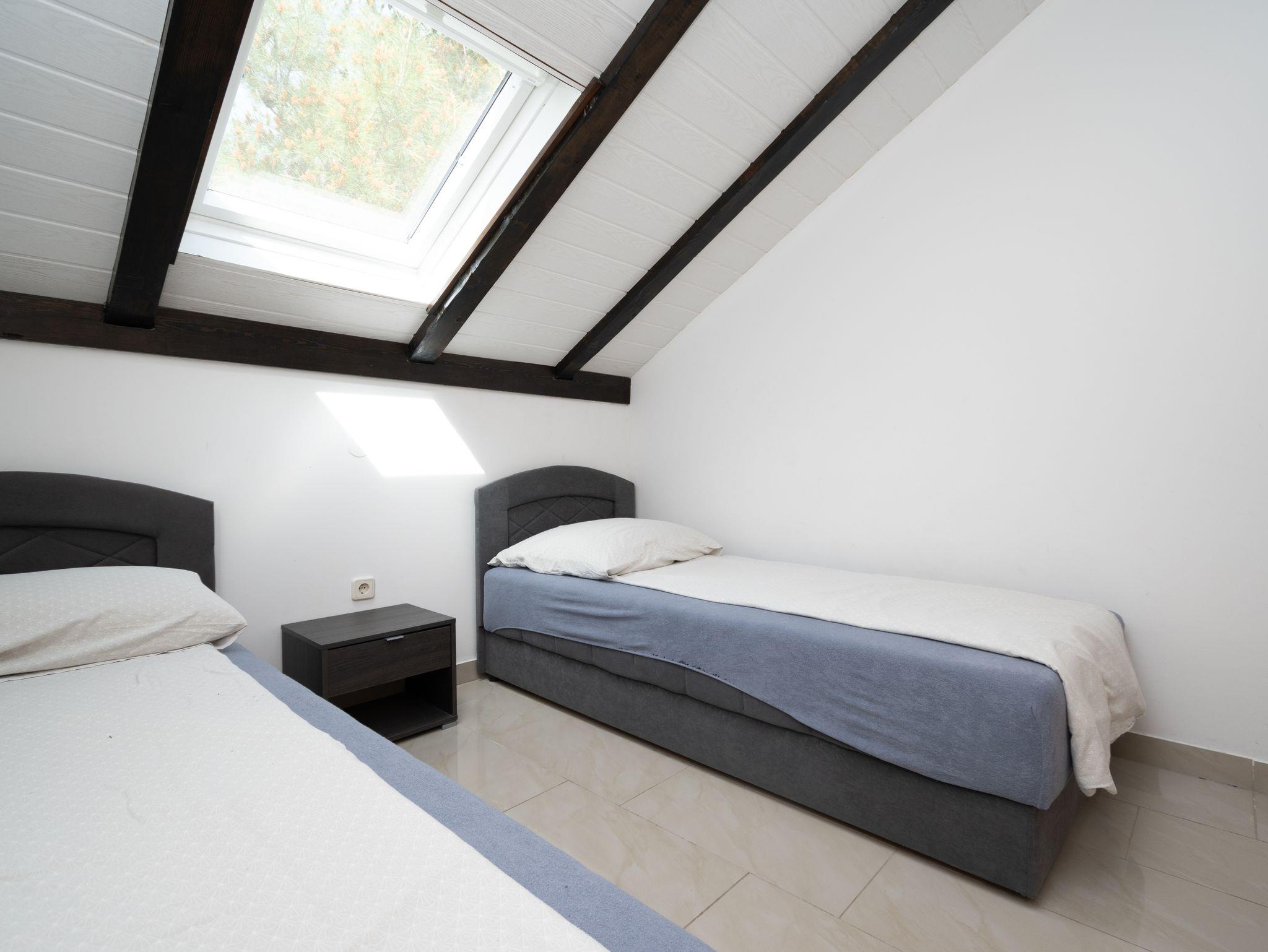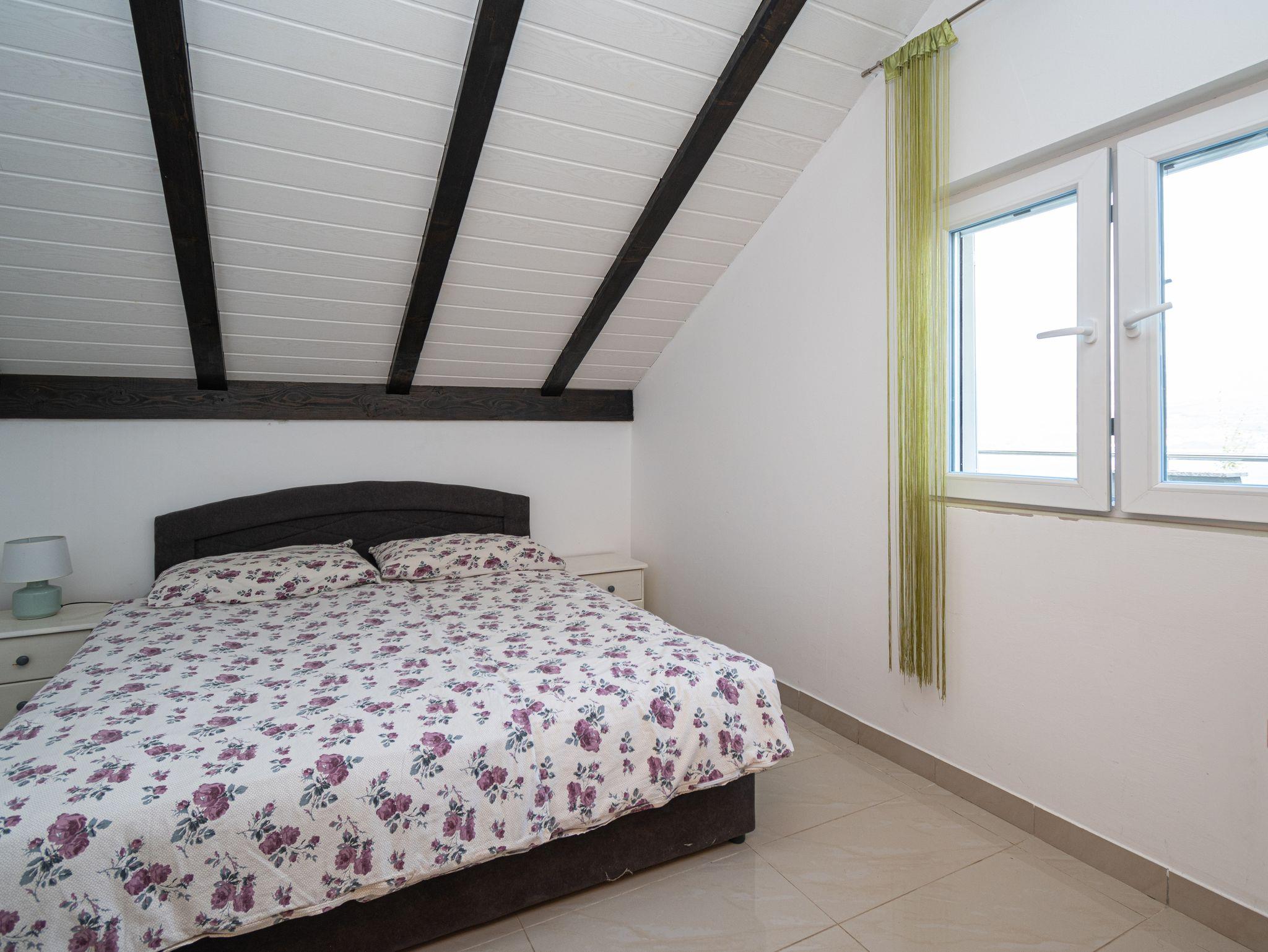 Ferienwohnung bietet Platz für 5 Gäste. Die Betten sind in Schlafzimmern, die es 2 gibt, und in Esszimmer, innerhalb einer Gesamtfläche von 42m2, angeordnet. Die Gäste haben eine eigene Terrasse zur Verfügung, auf der sie in warmen Sommernächten genießen können. Das Apartment bietet Meerblick. Für vollen Genuss und Entspannung gibt es einen privaten Grill für Gäste dieser Unterkunft. In der Unterkunftseinheit besteht die Möglichkeit des Mitbringens von Haustieren gegen Aufpreis. IM PREIS INBEGRIFFEN: Kurtaxe, Endreinigung, Klimatisierung, Parkplatz, Internet, Kinderbett, Bügeleisen, Bügelbrett, Föhn. UNVERBINDLICHE ZUSÄTZLICHE KOSTEN: Haustiere (5,00 € pro Nacht). Die Verfügbarkeit zusätzlicher Dienstleistungen in Ihrem reservierten Termin und die Preise derselben (falls nicht aufgeführt) müssen im Voraus überprüft werden. Zusätzliche Dienstleistungen die in der Zahlungsaufforderung nicht aufgeführt sind werden direkt beim Vermieter bezahlt, angenommen der Gast nutzt auch diese. Ermäßigung auf den Grundpreis: Gratistag 14=13 (bei einem Aufenthalt von 14 Tagen oder mehr erhalten Sie einen Gratistag für den Aufenthalt bis 31.12.26).