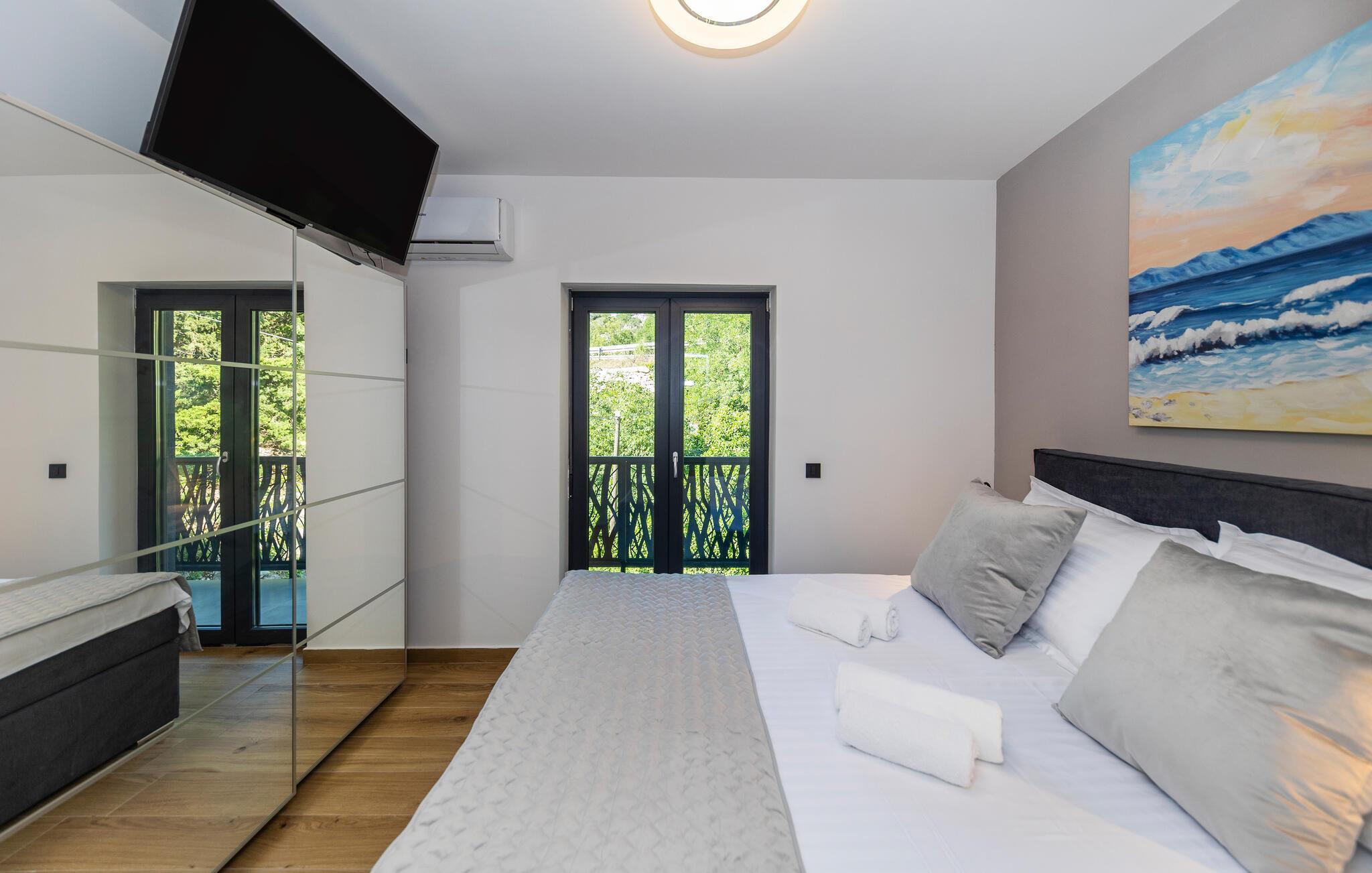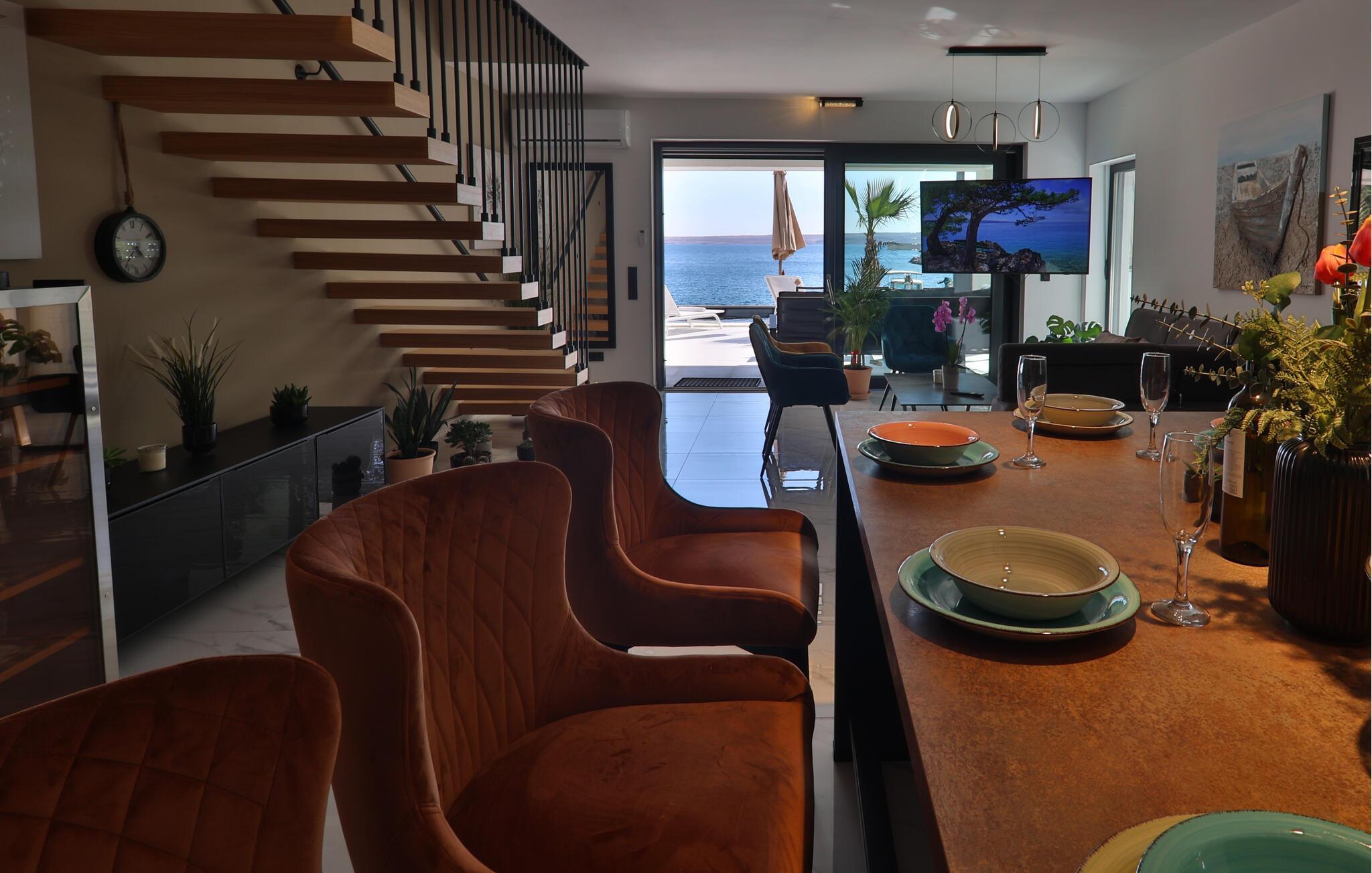 Willkommen in dem komfortablen und geräumigen Haus, das mit seiner stilvollen Einrichtung und einer fantastischen Aussicht auf das Meer begeistert. Modern und geschmackvoll möblierte Räume machen das Haus zum angenehmen Aufenthaltsort, genießen Sie schon beim Aufwachen schöne Ausblicke. Freuen Sie sich auf schöne Abende beim gemeinsamen Essen, entspannen Sie mit Ihren Lieben in ansprechendem Rahmen und lassen Sie den Blick über das Meer schweifen.