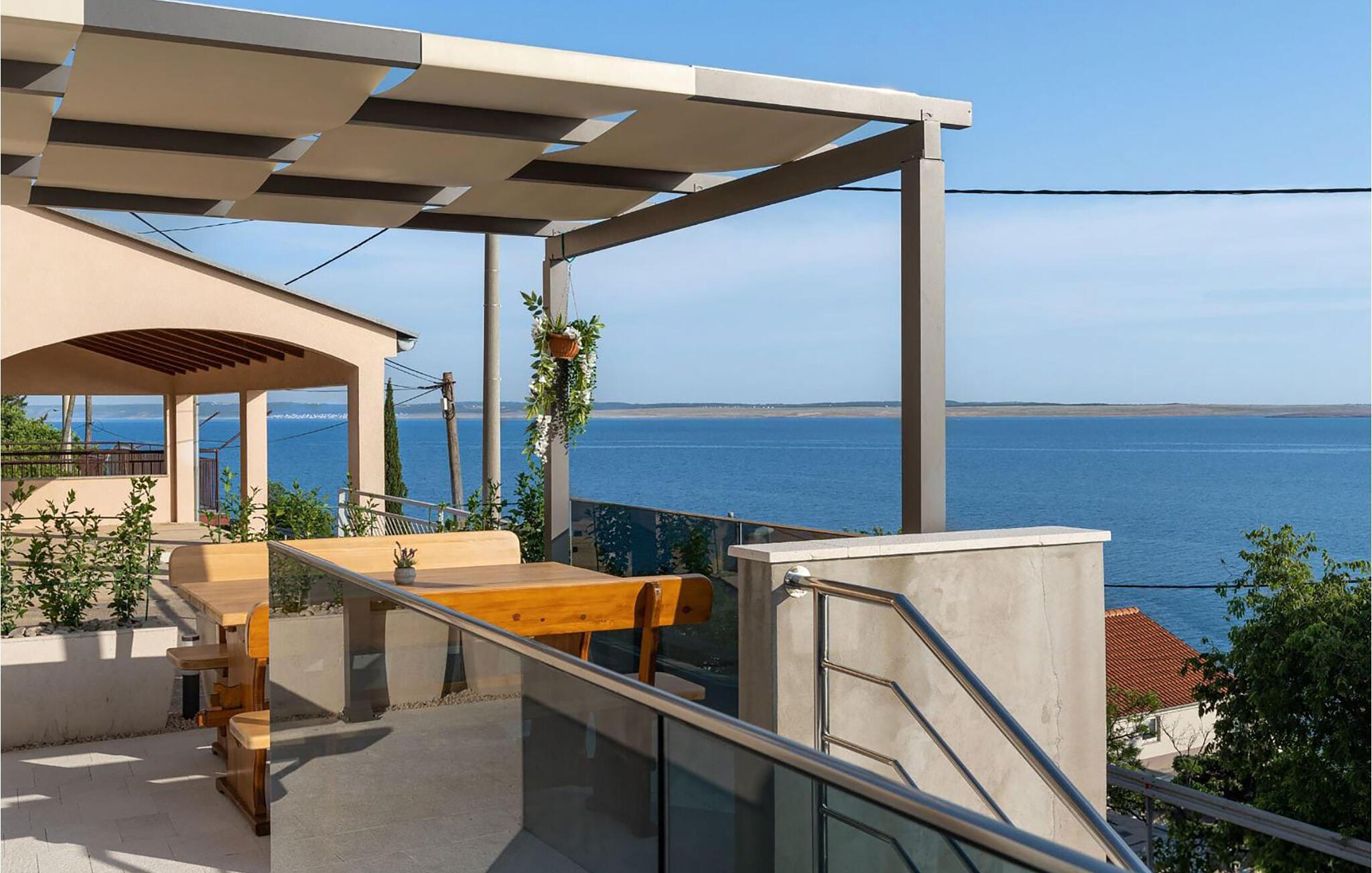 Ihre elegant beschattete Terrasse bietet einen wunderschönen Blick aufs Meer und ist wie geschaffen für ein herrliches Frühstück in der Morgensonne sowie lange Sommernächte bei Wein und Kerzenschein. Genießen Sie hier das mediterrane Klima in vollen Zügen.